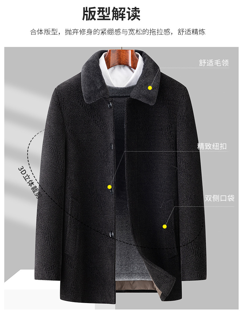 남자 비즈니스 Chenille 모직 코트 하이 엔드 뽕나무 실크 누빔안감 아빠 겨울 코트스토어 가기