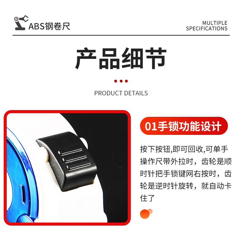 공장 도매 표준 테이프 측정 3 미터 5 미터 7.5 미터 10 미터 자체 잠금 테이프 측정 소매 다기능 정밀스토어 가기