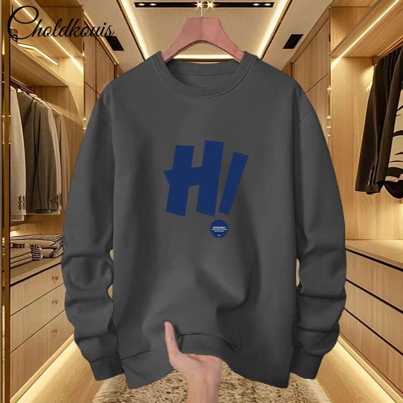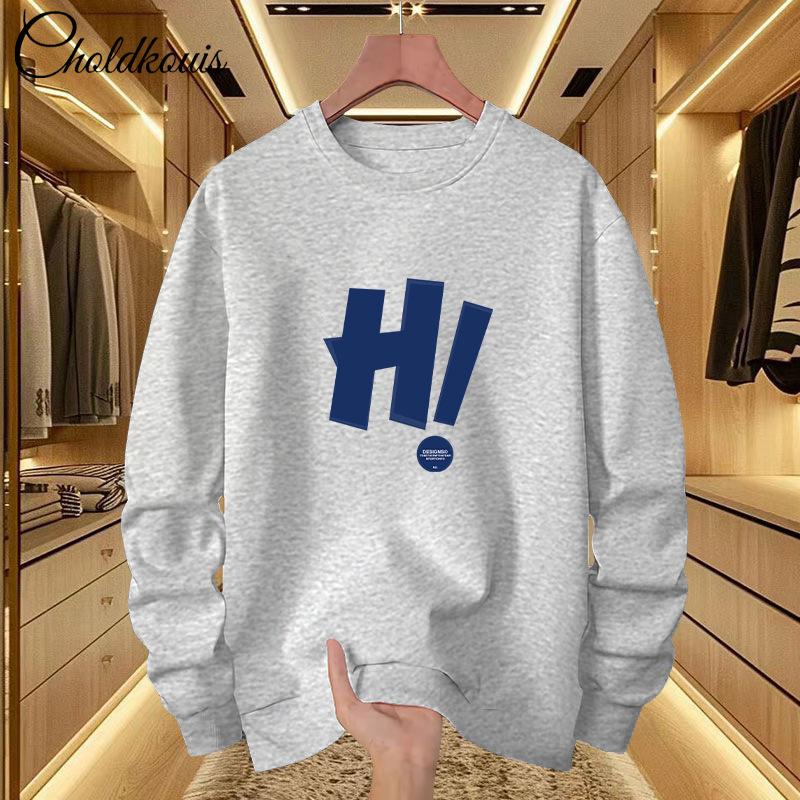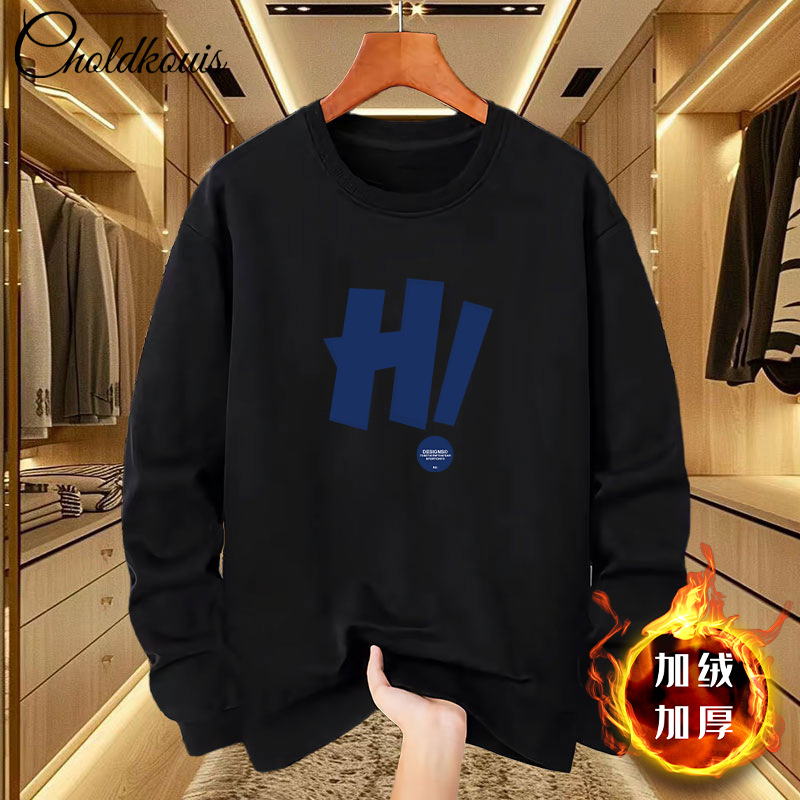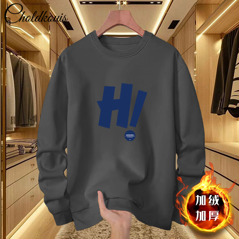 • 오트밀 그레이 라운드넥 스웨트셔츠 플러스 벨벳 스타일-417 [GL]