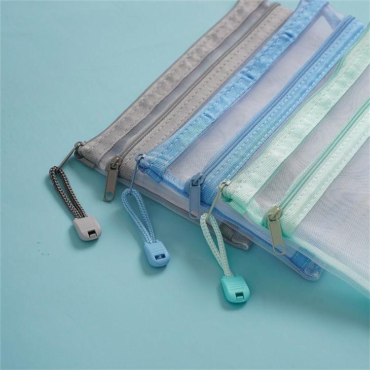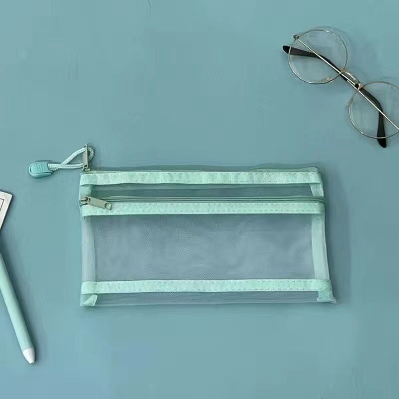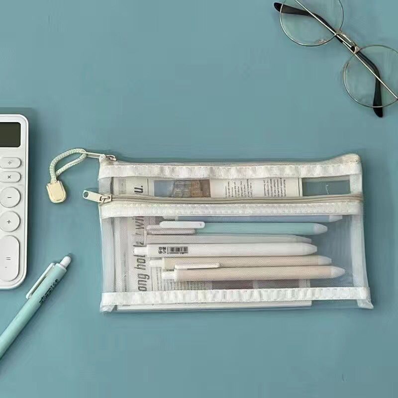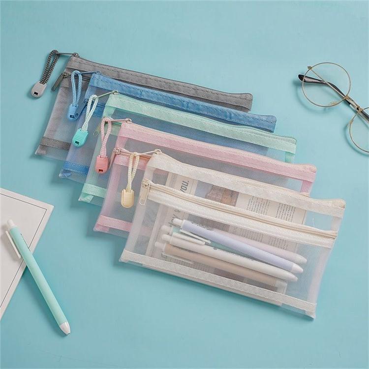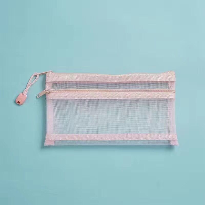 한국어 투명 더블 레이어 메쉬 연필 가방 보관 가방 학생 시험 휴대용 연필 가방 대용량 연필 가방 화장품 가방