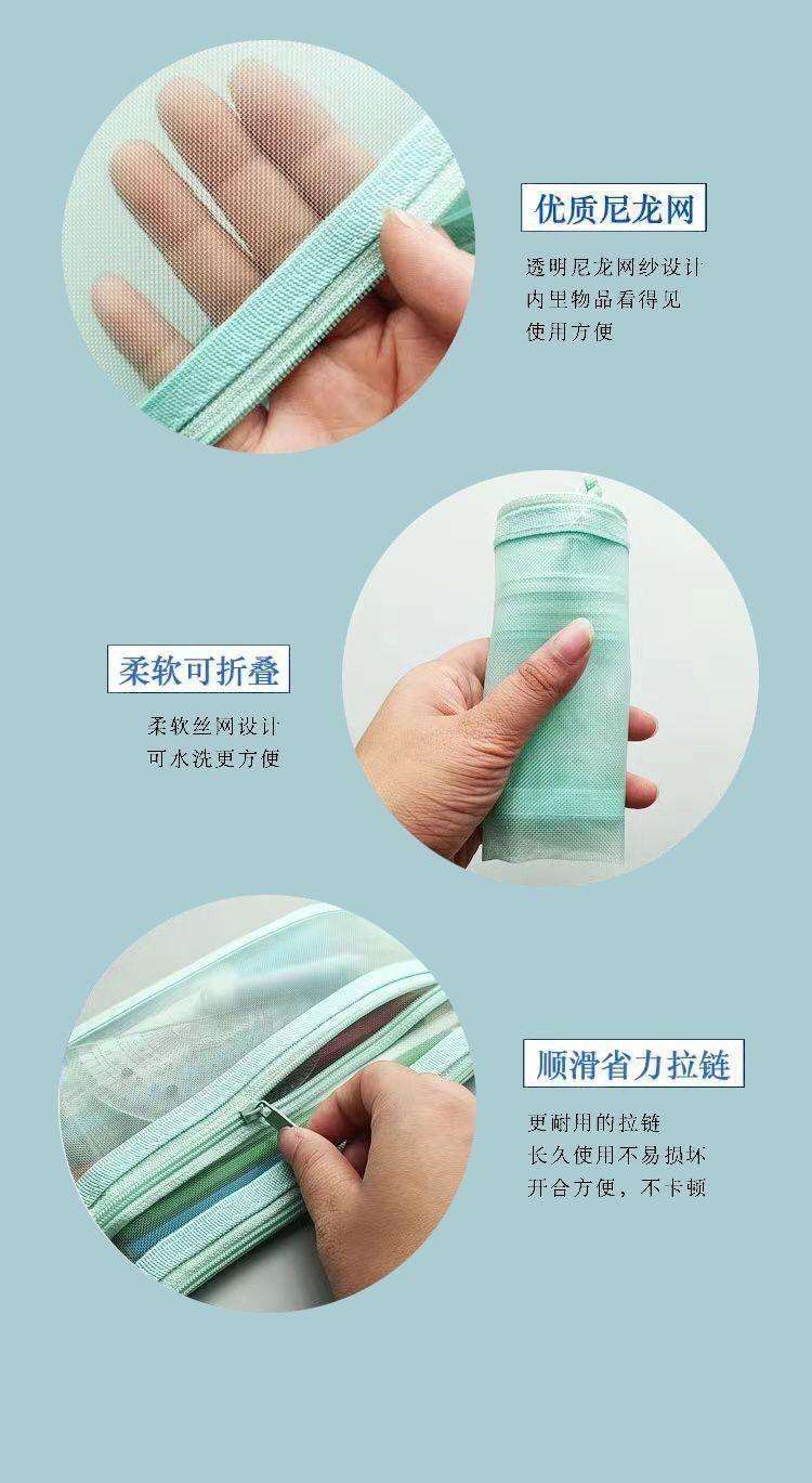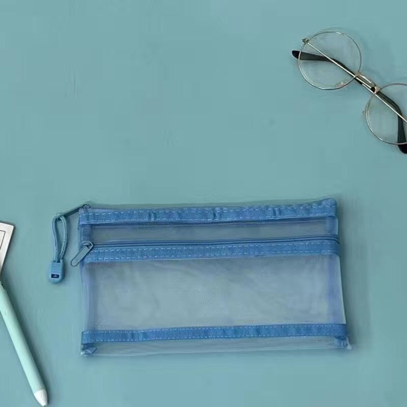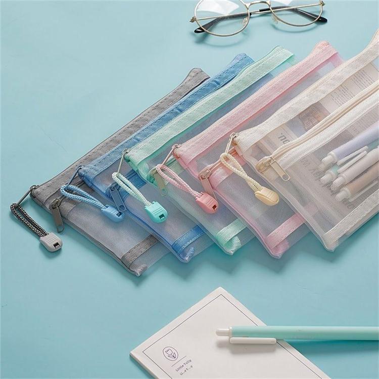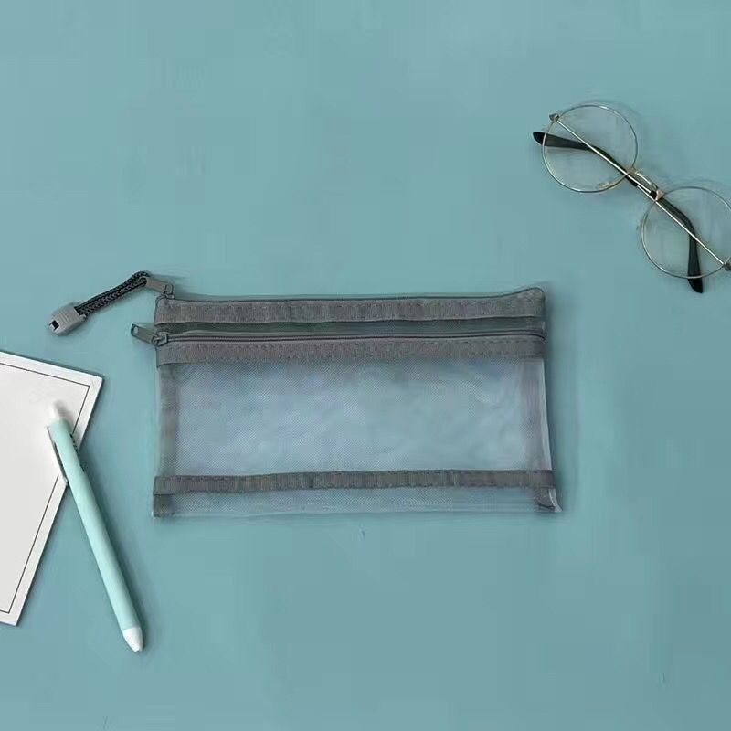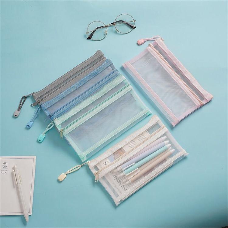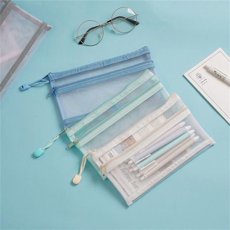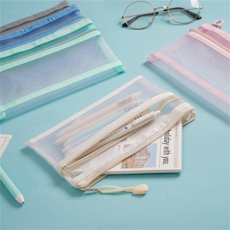 한국어 투명 더블 레이어 메쉬 연필 가방 보관 가방 학생 시험 휴대용 연필 가방 대용량 연필 가방 화장품 가방스토어 가기
