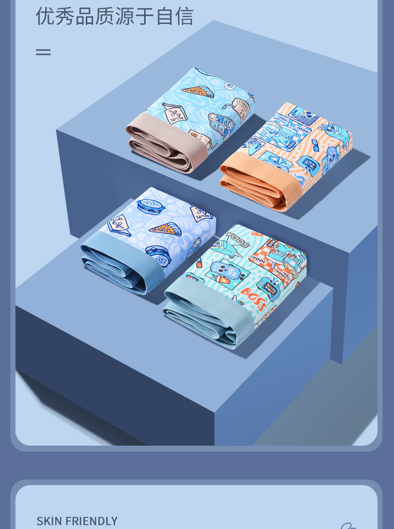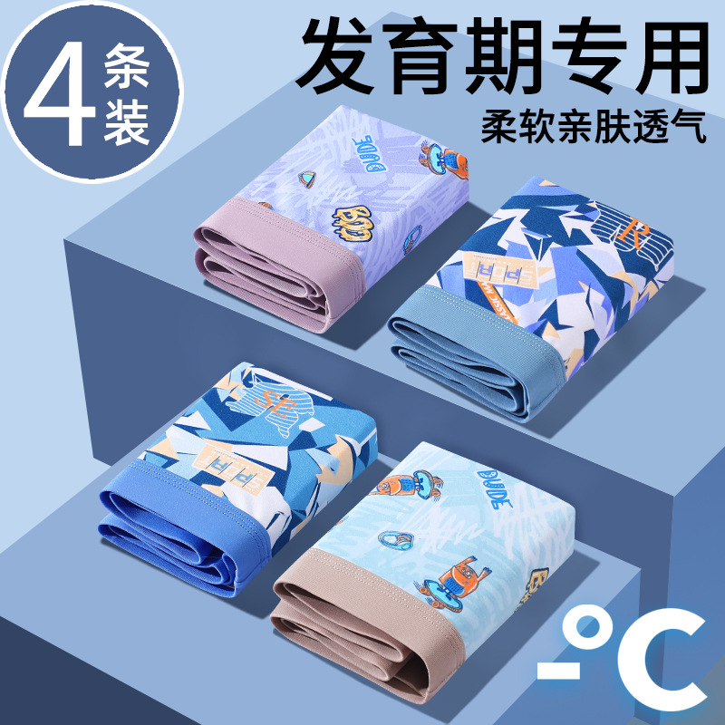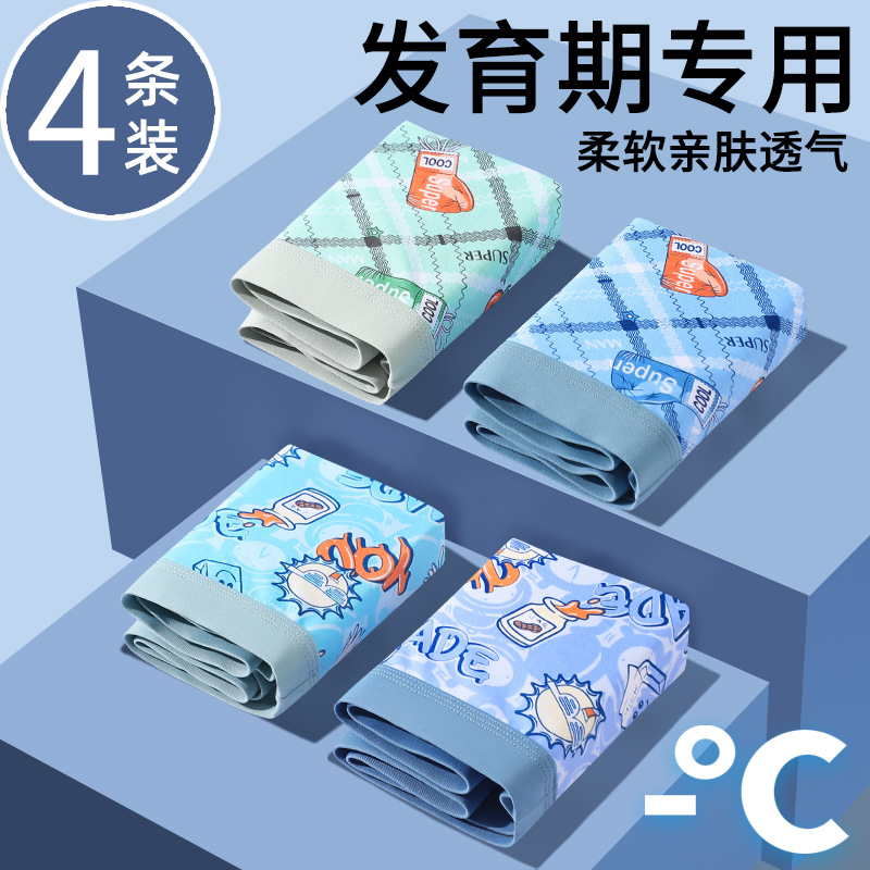 소년 발달 청소년 속옷 4팩, 느슨한 여름 얇은 통기성 소년 중학생 복서 팬티스토어 가기