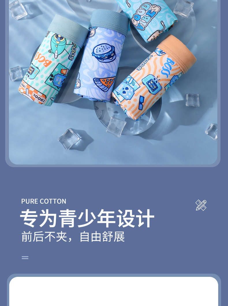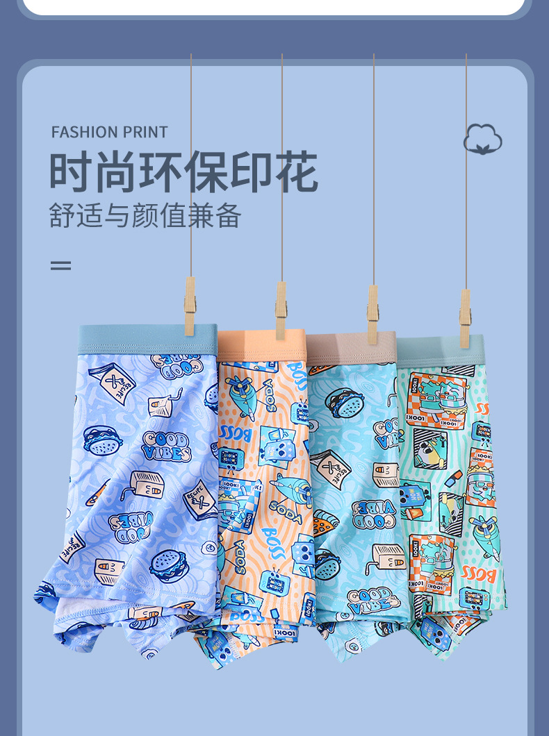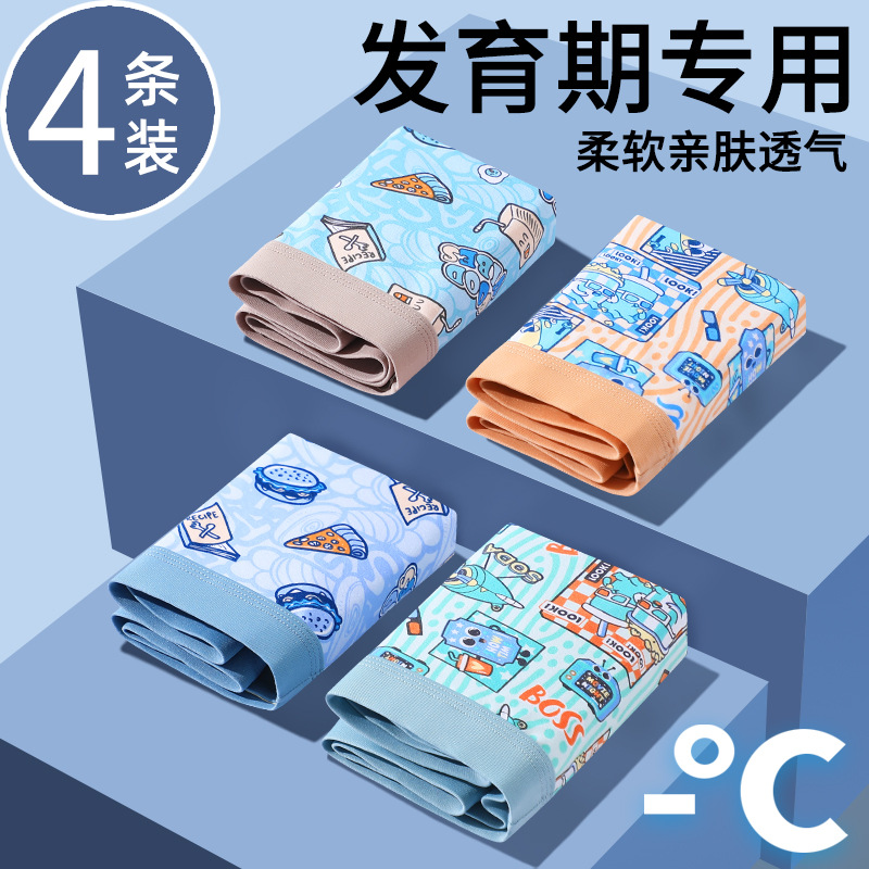 소년 발달 청소년 속옷 4팩, 느슨한 여름 얇은 통기성 소년 중학생 복서 팬티