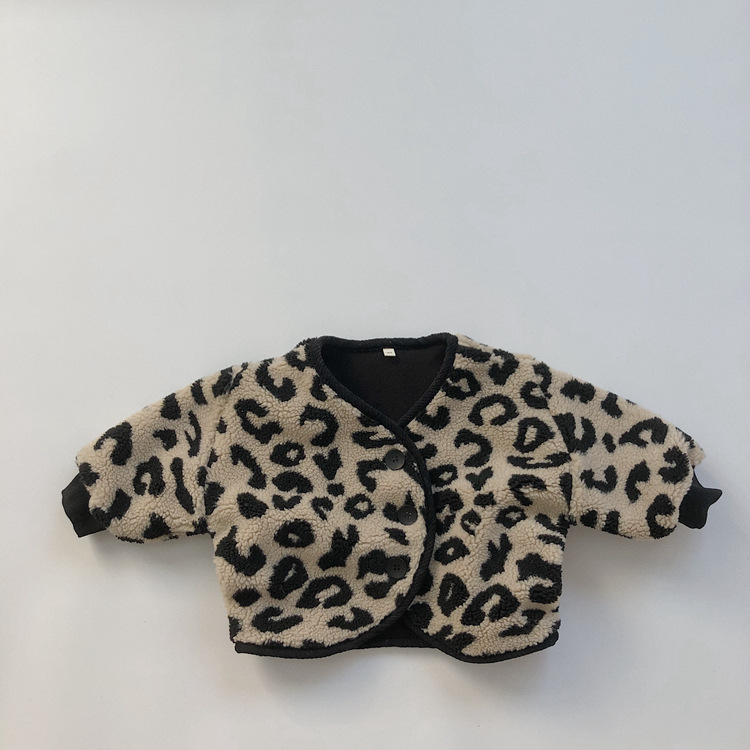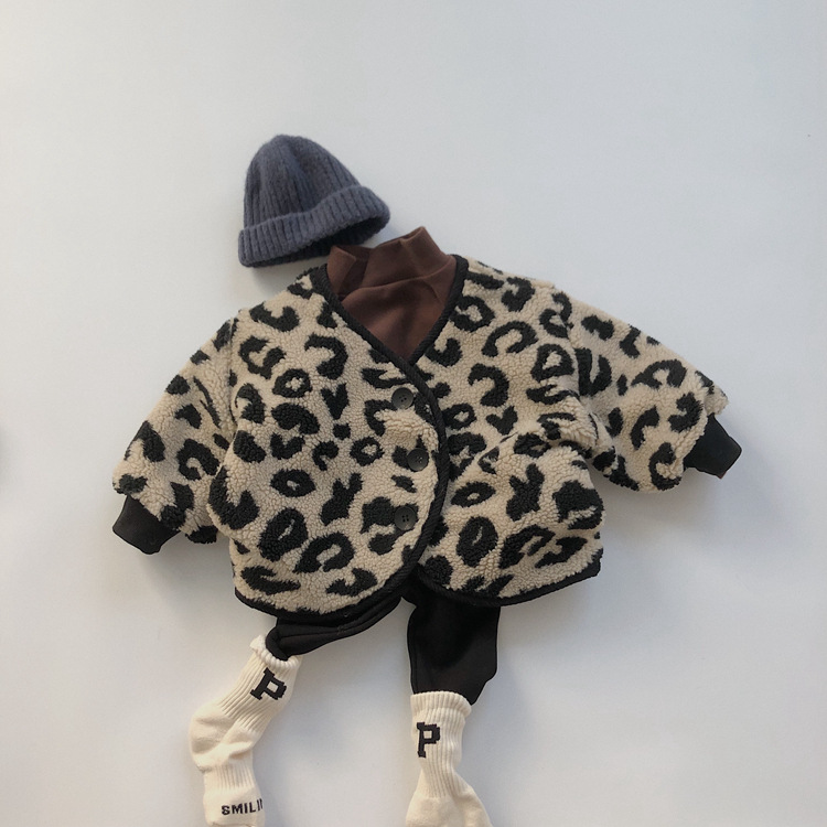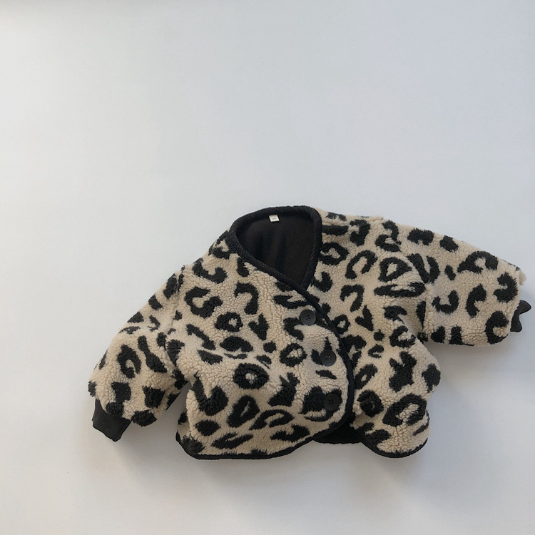 어린 양 양모 한국 어린이 의류 레오파드 무늬 면화 패딩 재킷 두꺼운 따뜻한 벨벳 코튼 패딩 재킷
