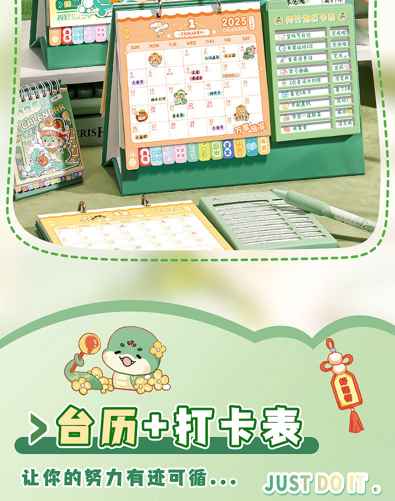 달력 2025 달력 계획이 학생 쌍 매일 이번 달 달력 만화 데스크탑 장식품 뱀 달력의 해스토어 가기