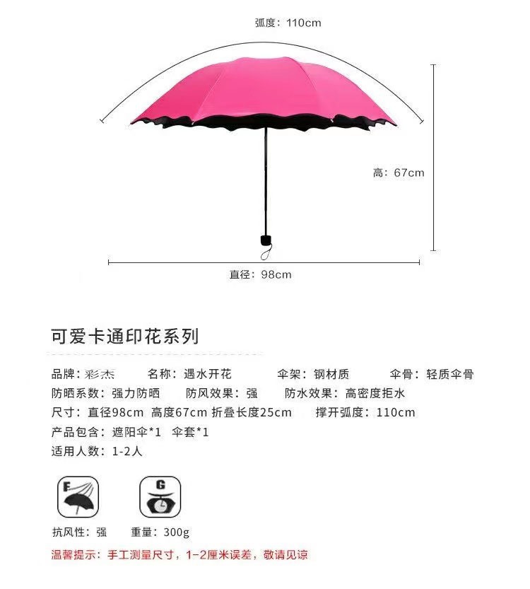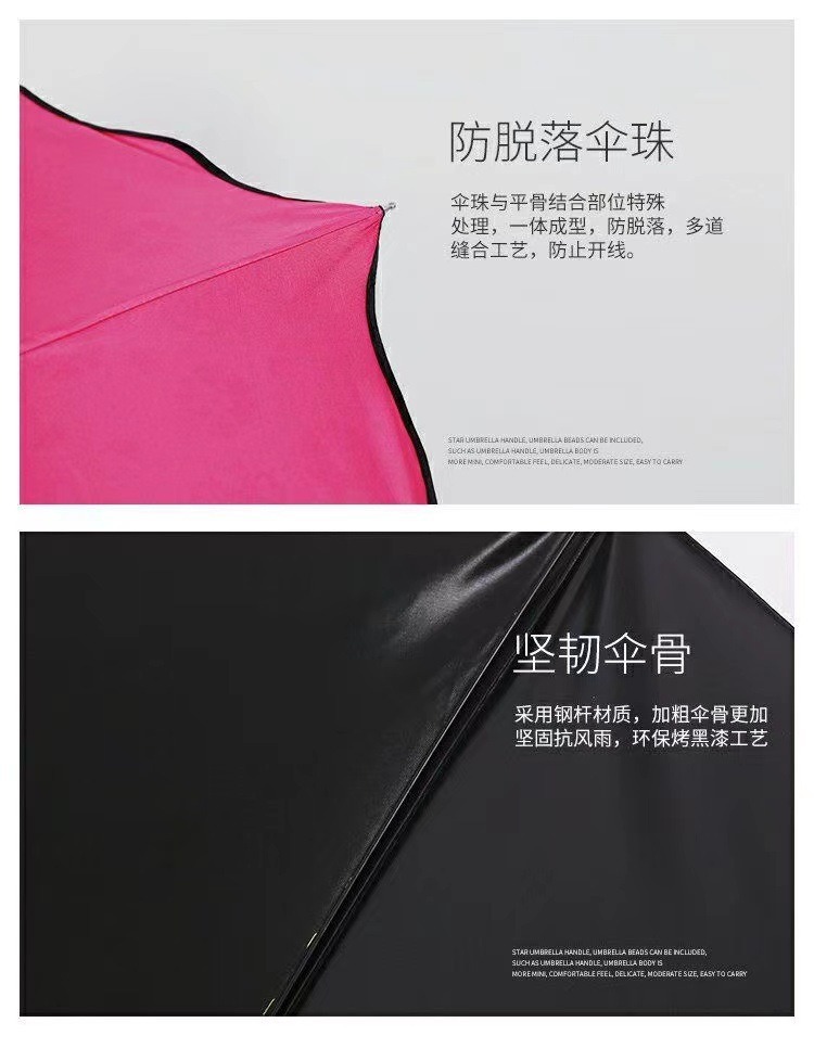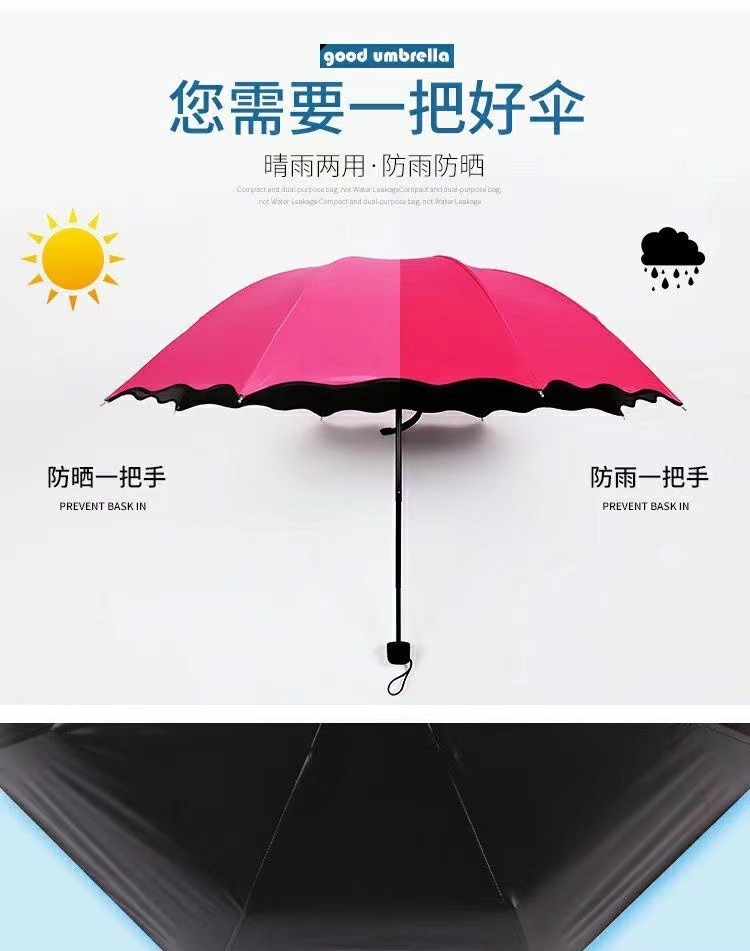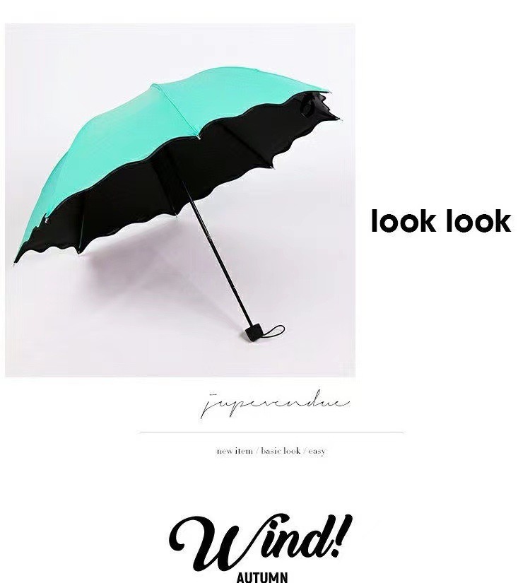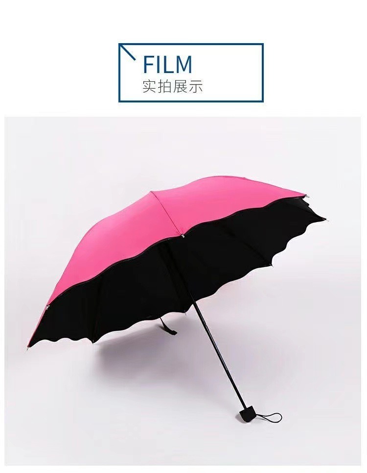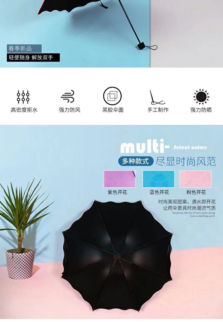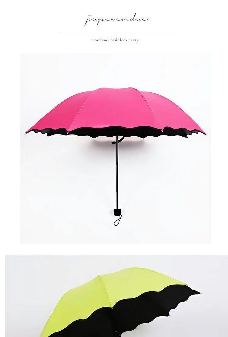 비 햇살 우산에 꽃 햇살 우산 자외선 차단 여성의 검은 고무 우산 접히는 맑고 비 이중 사용