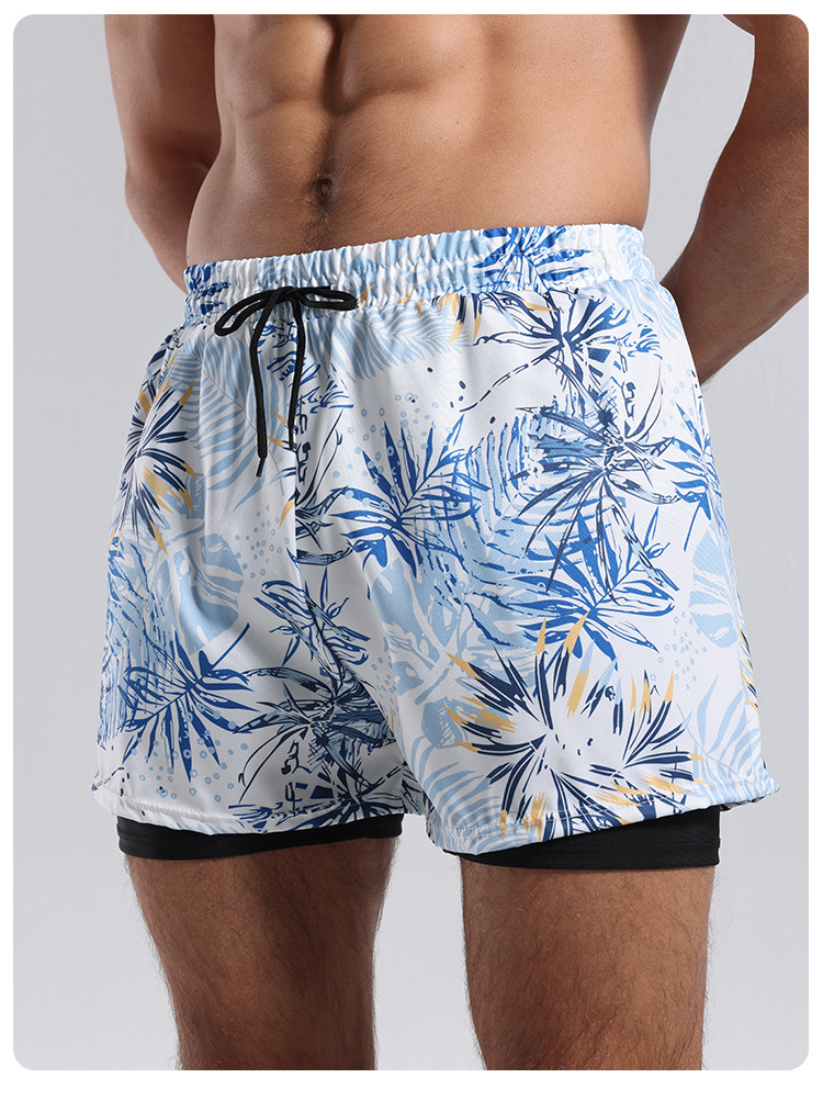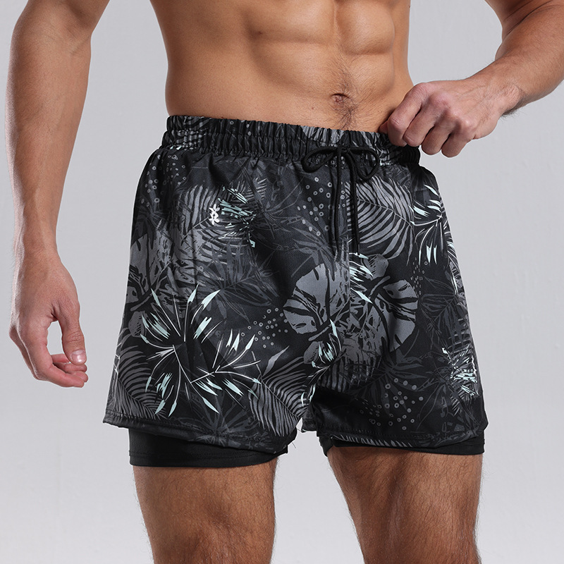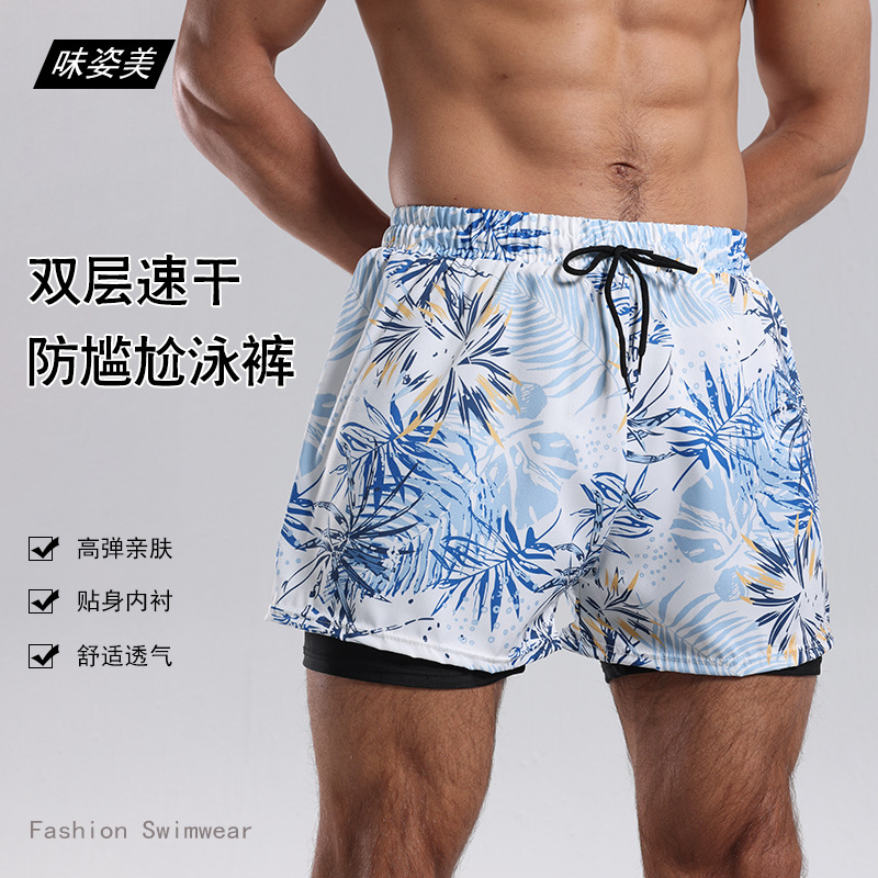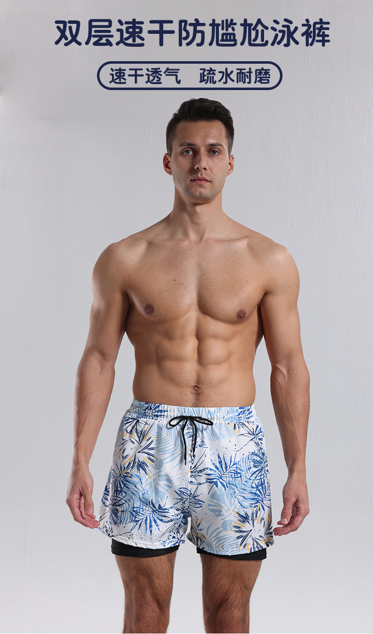 2025 새로운 수영 trunks 남자 5 점 더블 레이어 수영 trunks 성인 대형 안티 당황 전문 해변 수영 trunks 크로스 보더스토어 가기