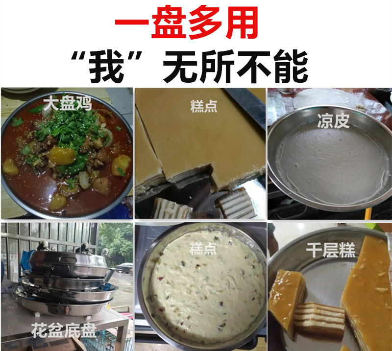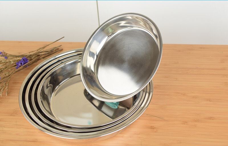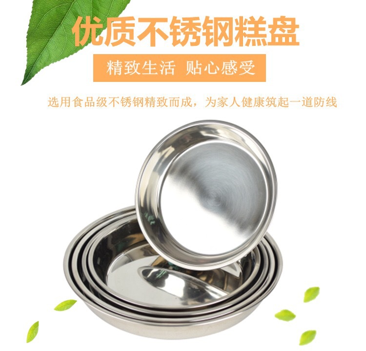 두꺼운 원형 디스크 냉면 접시 초대형 304 스테인레스 스틸 케이크 접시 냉면 거문고 죽 찜 접시 플랫 접시스토어 가기