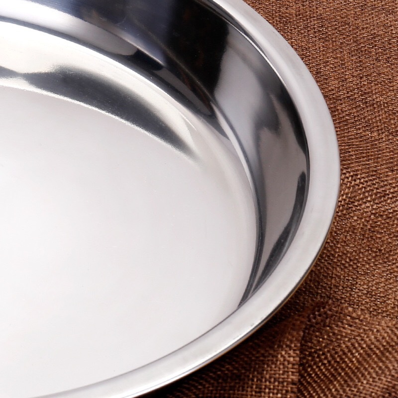 두꺼운 원형 디스크 냉면 접시 초대형 304 스테인레스 스틸 케이크 접시 냉면 거문고 죽 찜 접시 플랫 접시