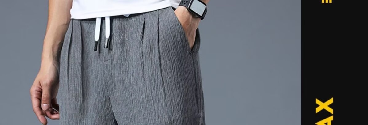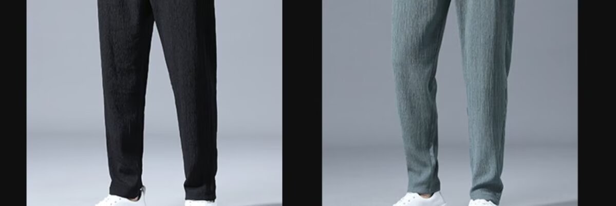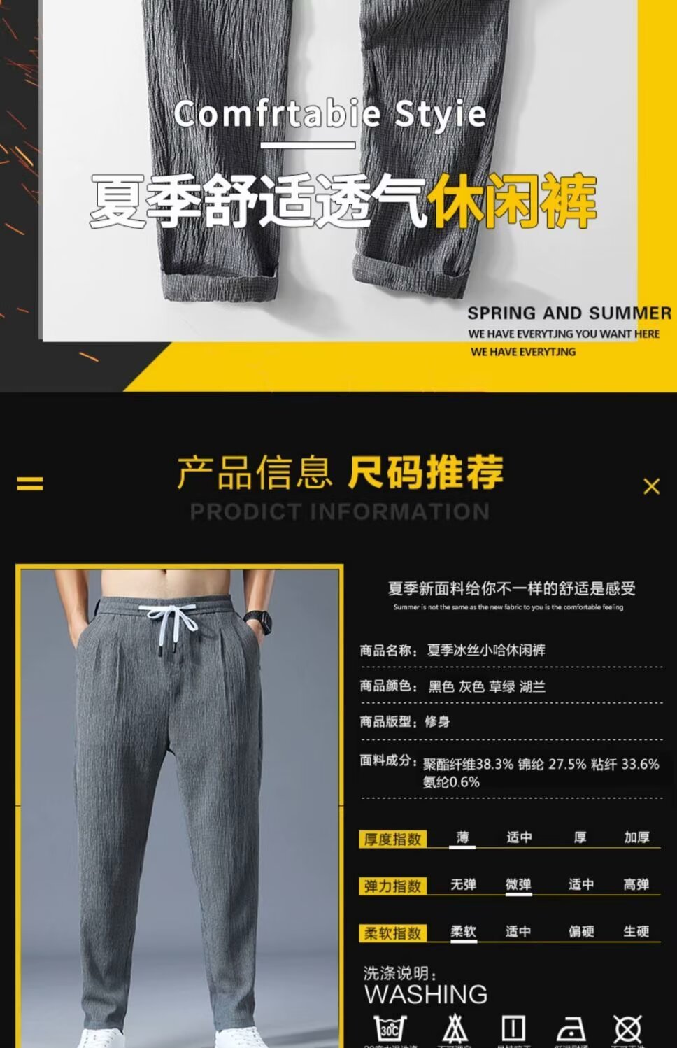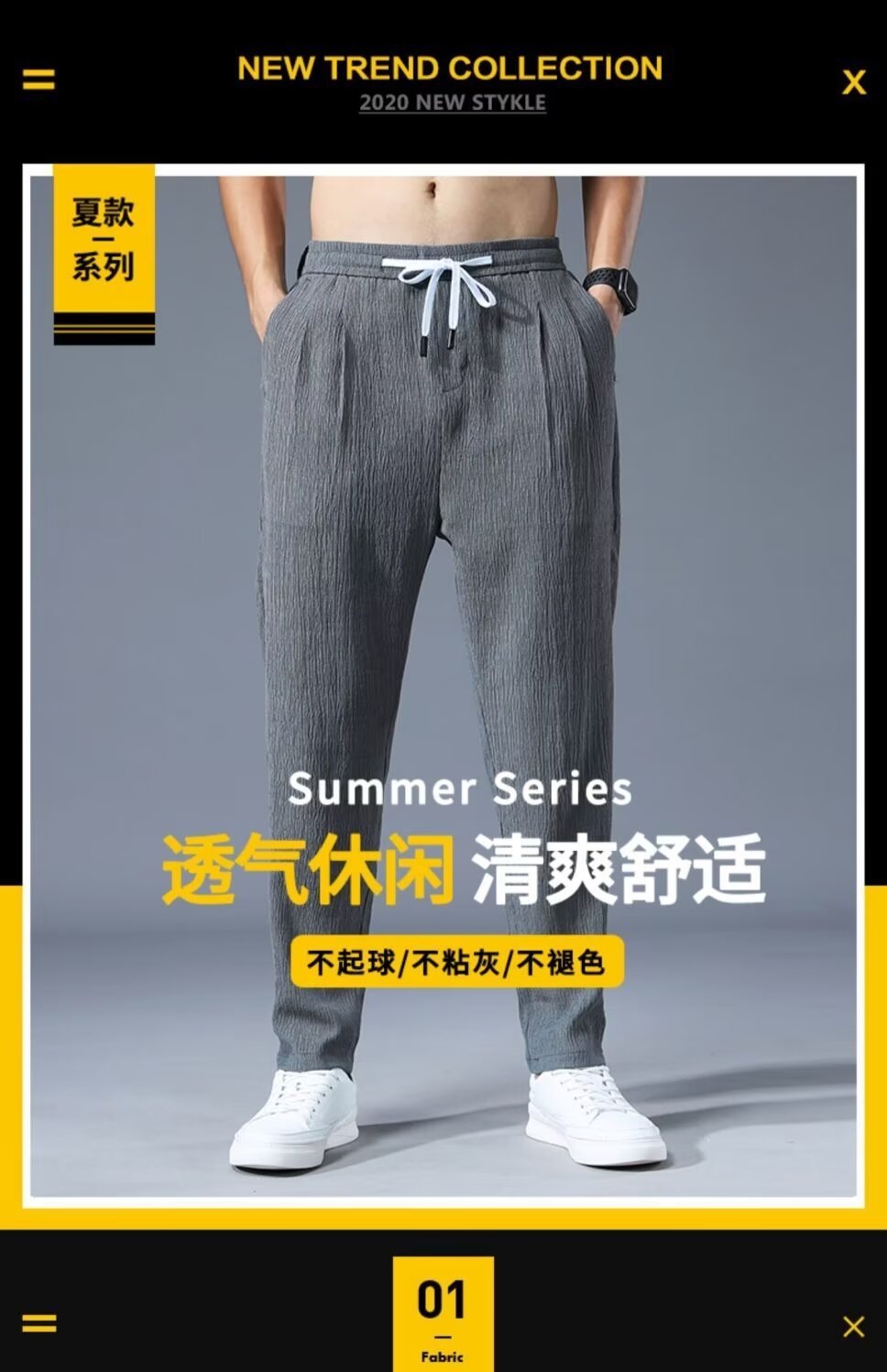 남성용 바지 여름 초박형 코튼 리넨 느슨한 통기성 남성용 아이스 실크 캐주얼 바지 스트레이트 여름 에어컨 바지스토어 가기