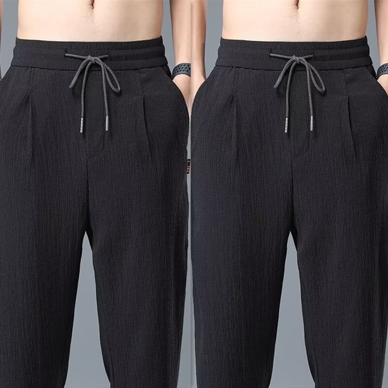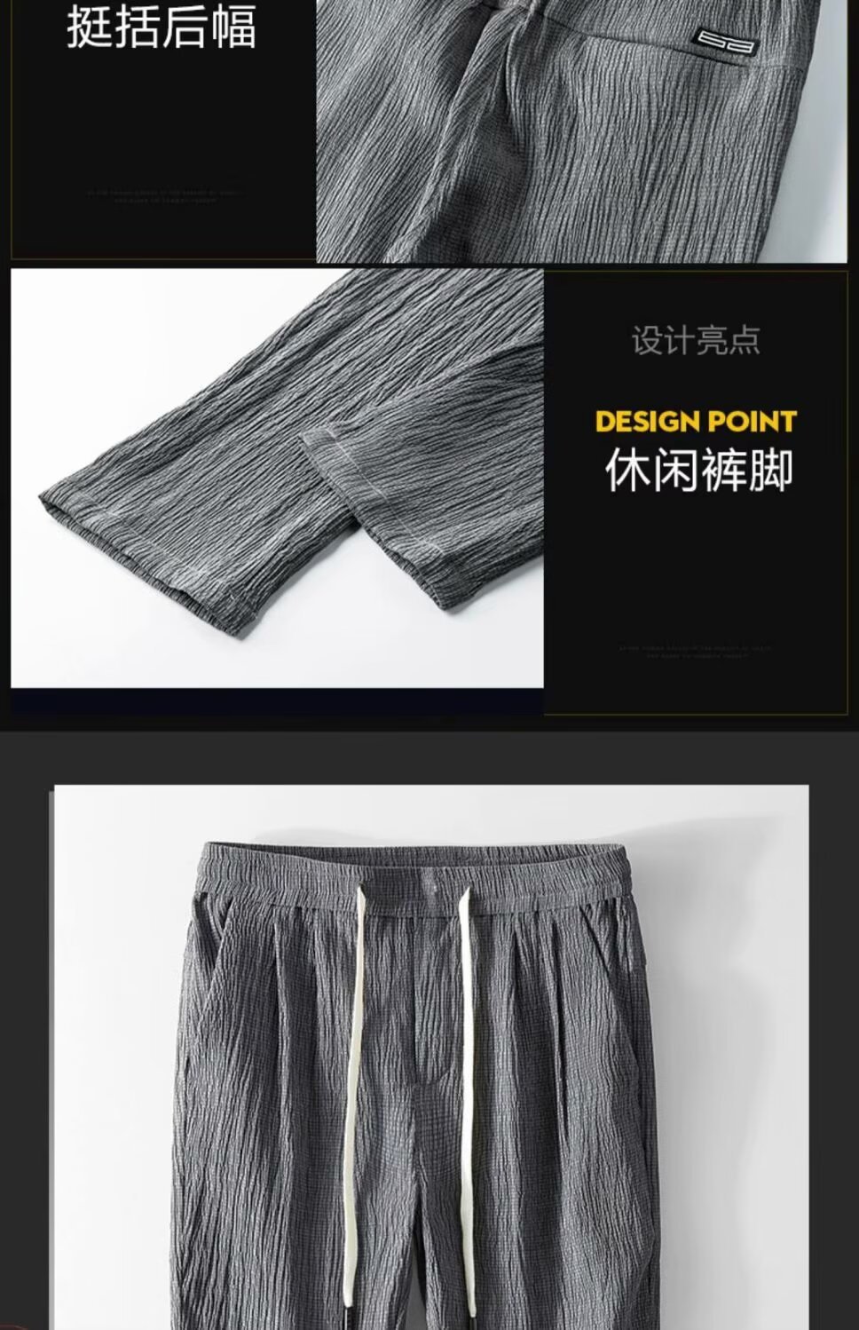 남성용 바지 여름 초박형 코튼 리넨 느슨한 통기성 남성용 아이스 실크 캐주얼 바지 스트레이트 여름 에어컨 바지