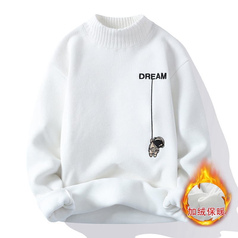 NASA 새로운 반 높이 칼라베이스 셔츠 남자의 가을과 겨울 화이트 스웨터 기모 두꺼운 따뜻한 학생 니트 셔츠