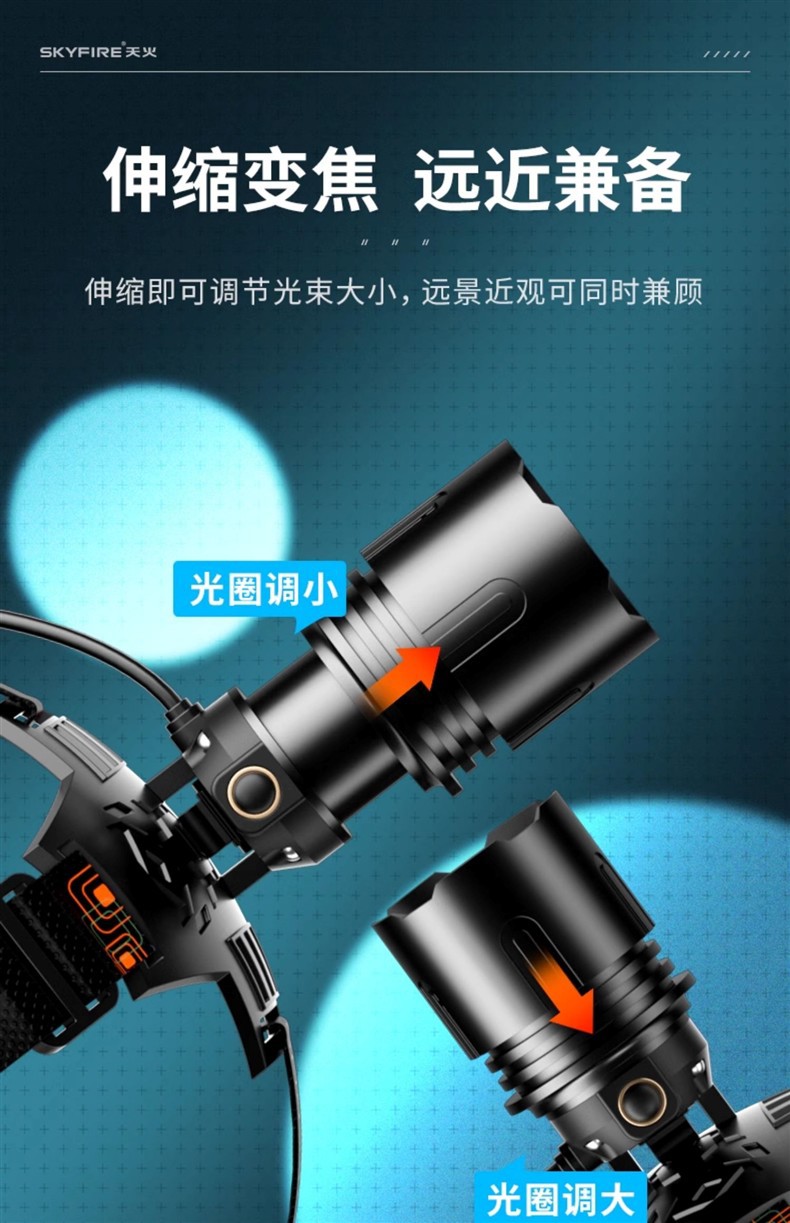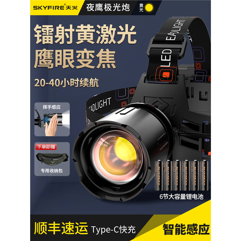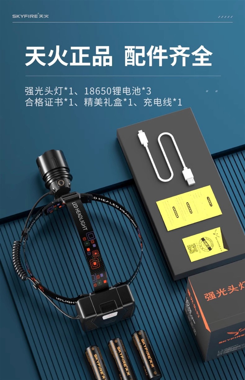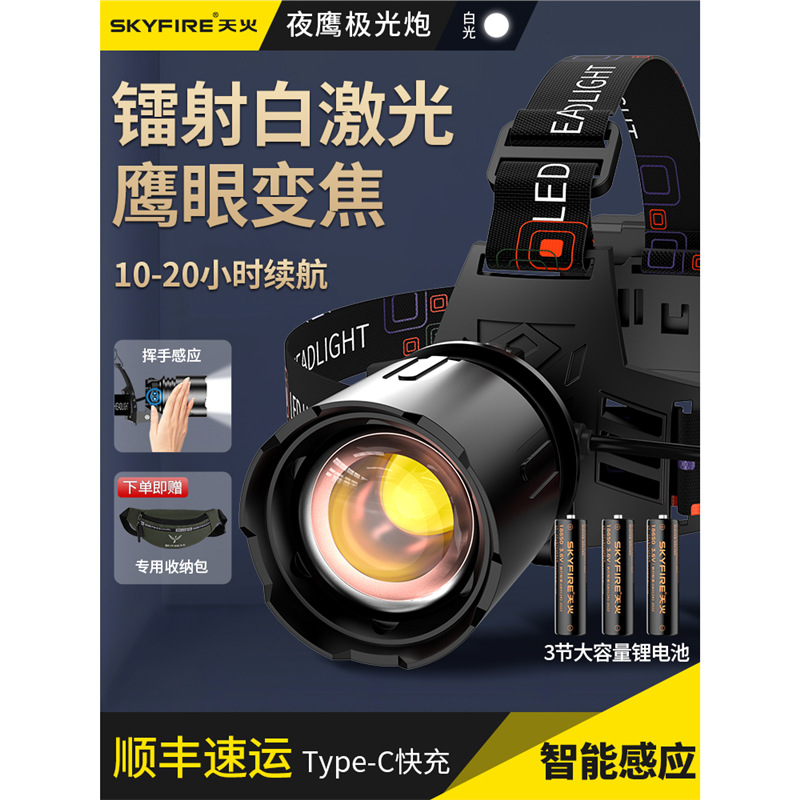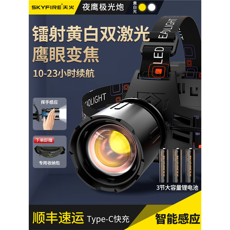 Skyfire 손전등 강한 빛 충전식 헤드 장착형 조명 휴대용 헤드 라이트 2025 새로운 슈퍼 밝은 유도 야외 장거리스토어 가기