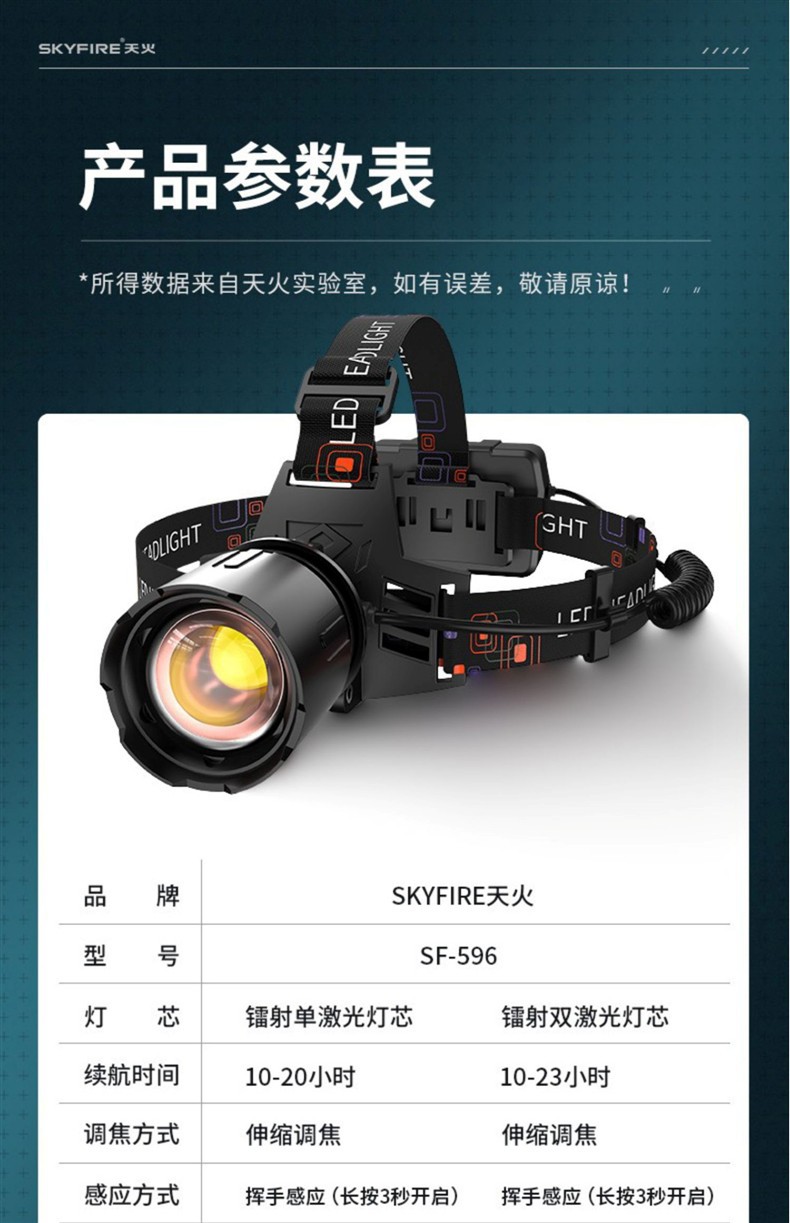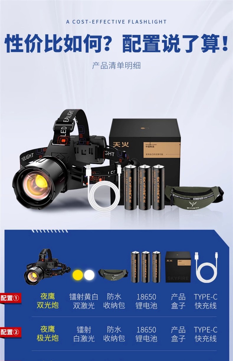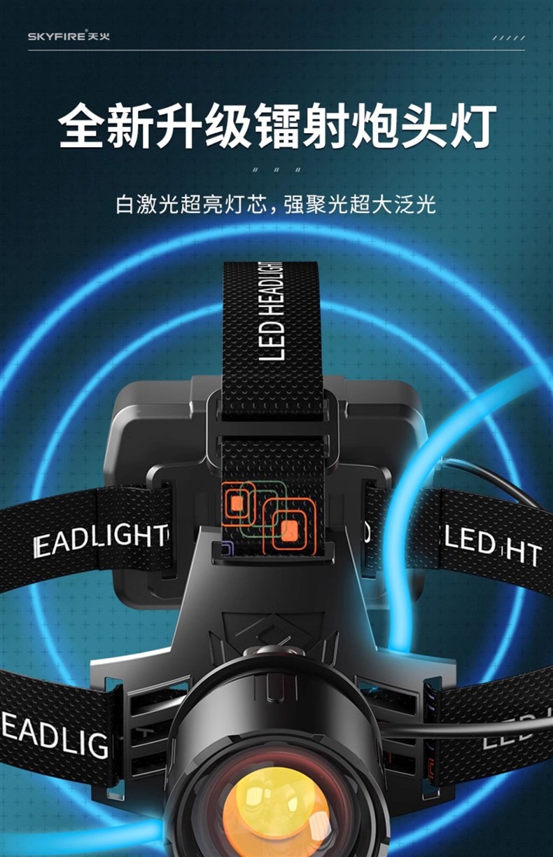 Skyfire 손전등 강한 빛 충전식 헤드 장착형 조명 휴대용 헤드 라이트 2025 새로운 슈퍼 밝은 유도 야외 장거리스토어 가기