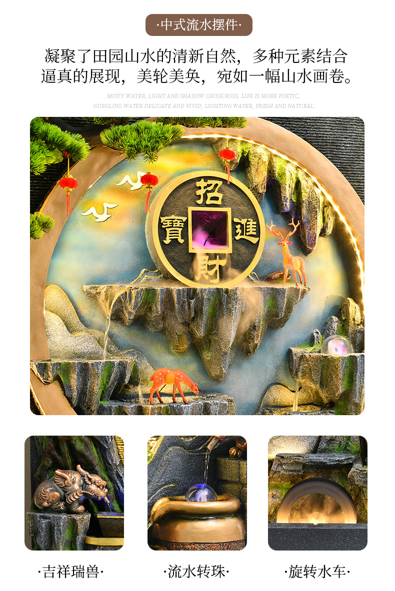 물 벽, 석가, 흐르는 물 분수, 안뜰 사무실, 산 장식, 거실 순환 물, 부를 끌어들이는 대형 바닥 장식품