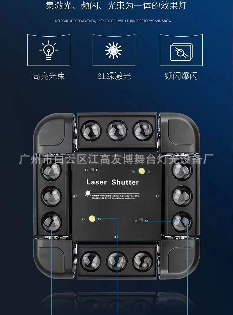 국경 간 바 흔들림 헤드 led12 폭풍 레이저 스트로브 3 대 1 레이저 회전 블리자드 레이저 빛스토어 가기