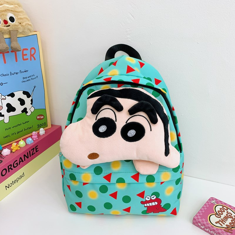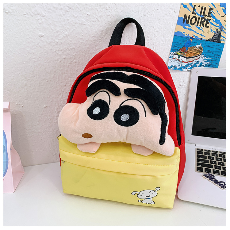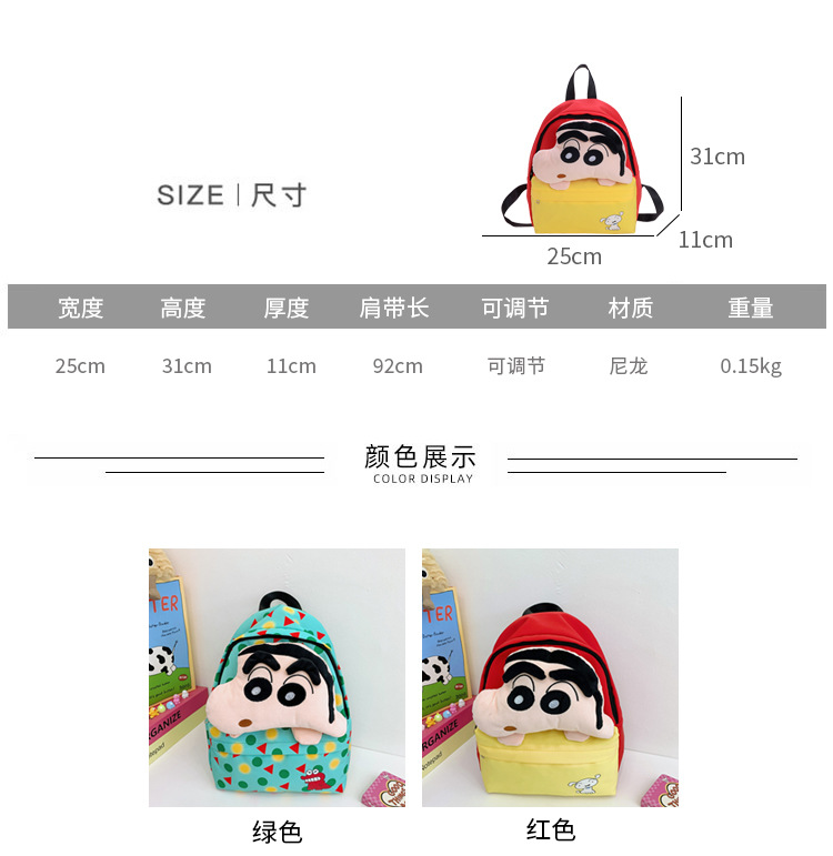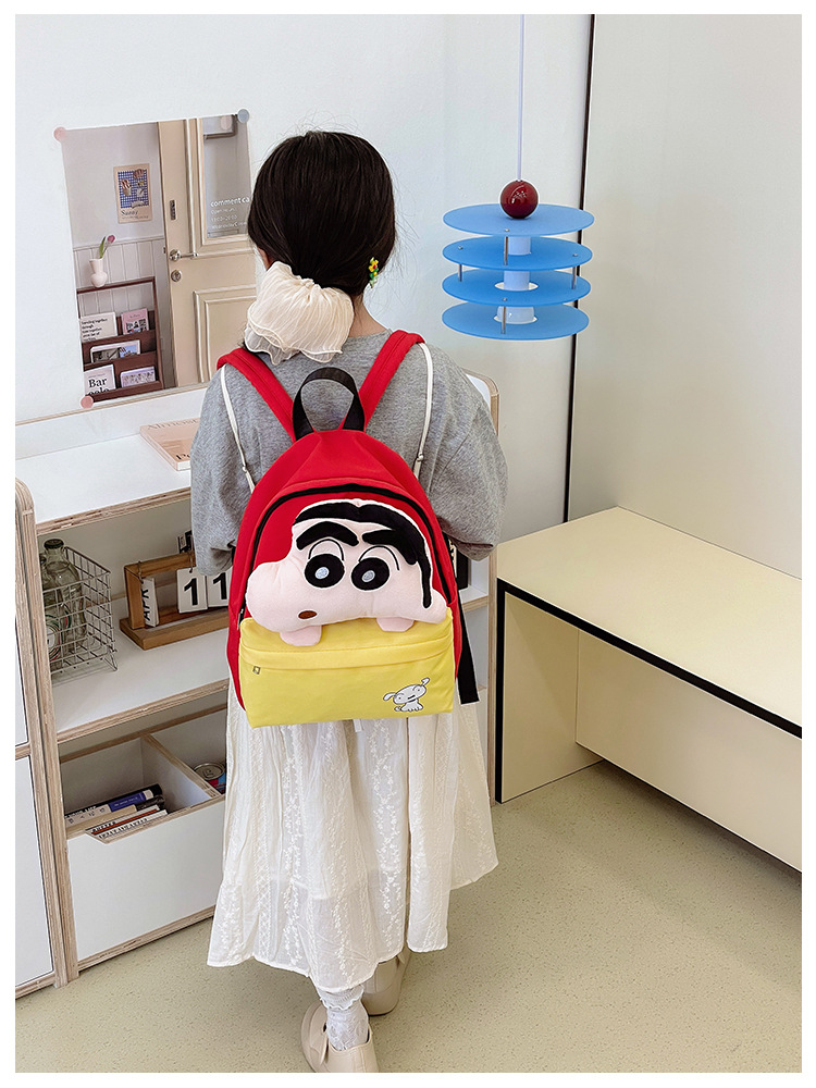 새로운 귀여운 크레용 신짱 인형 가방 귀여운 배낭 큰 머리 만화 초등학생 다용도 어린이 학교 가방