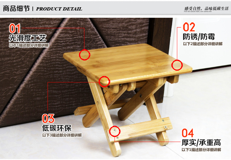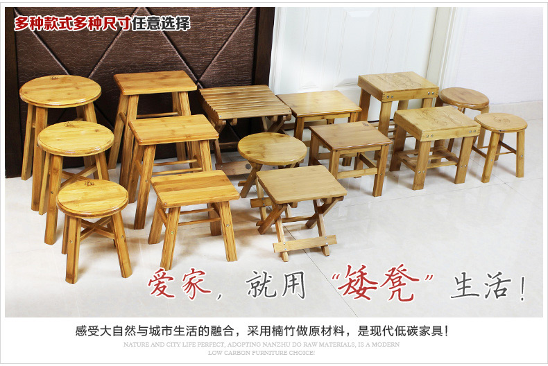 Aipinnan 대나무 작은 벤치 어린이 접이식 의자 휴대용 야외 마하 낚시 의자 성인 가정용 사각형 의자스토어 가기