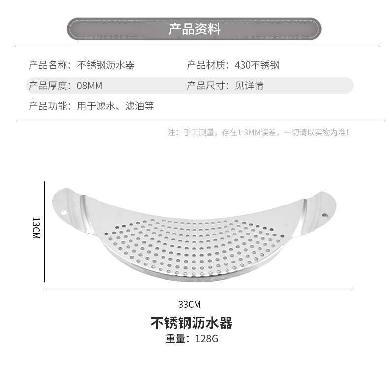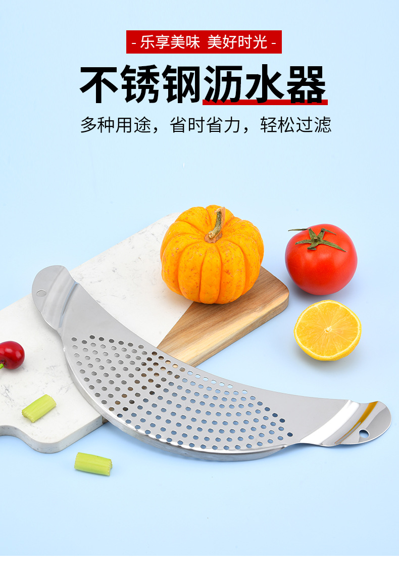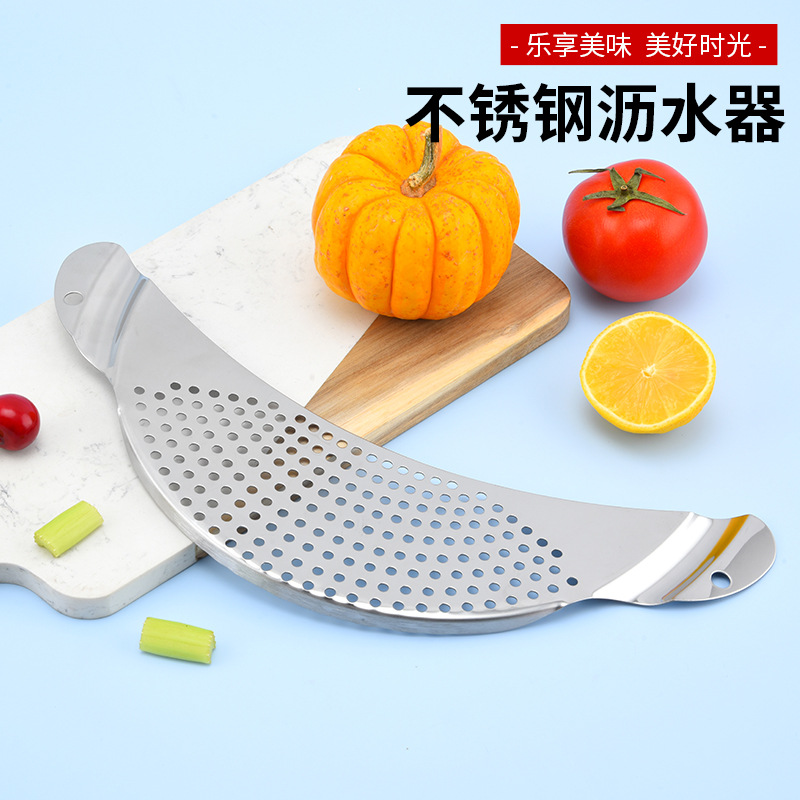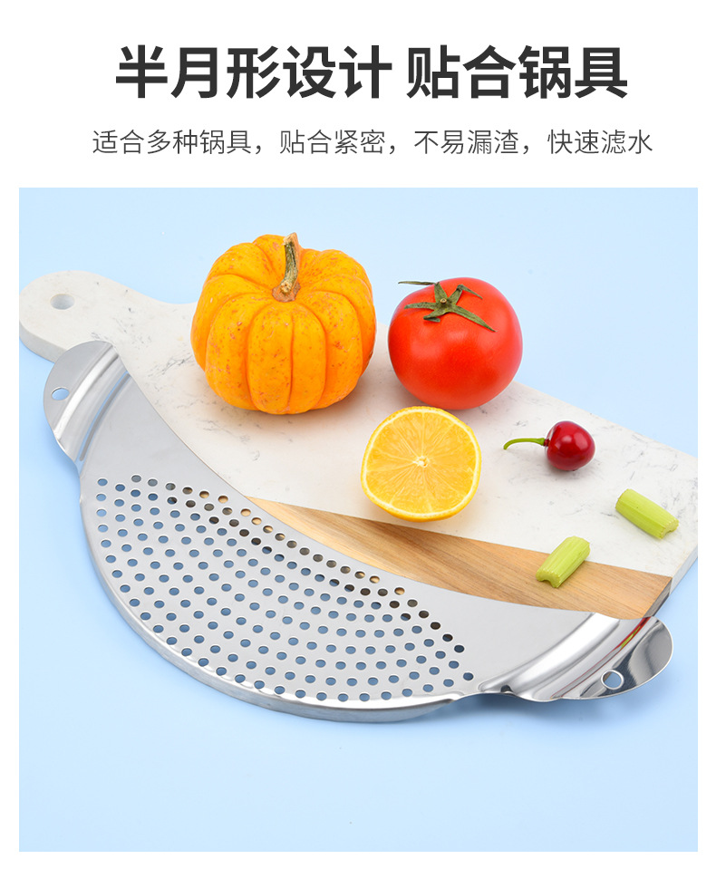 스테인리스 달 모양의 물 필터, 반원형 걸이형 냄비 필터, 수프 스트레이너, 냄비 패드, 고운 야채 및 과일 배수구