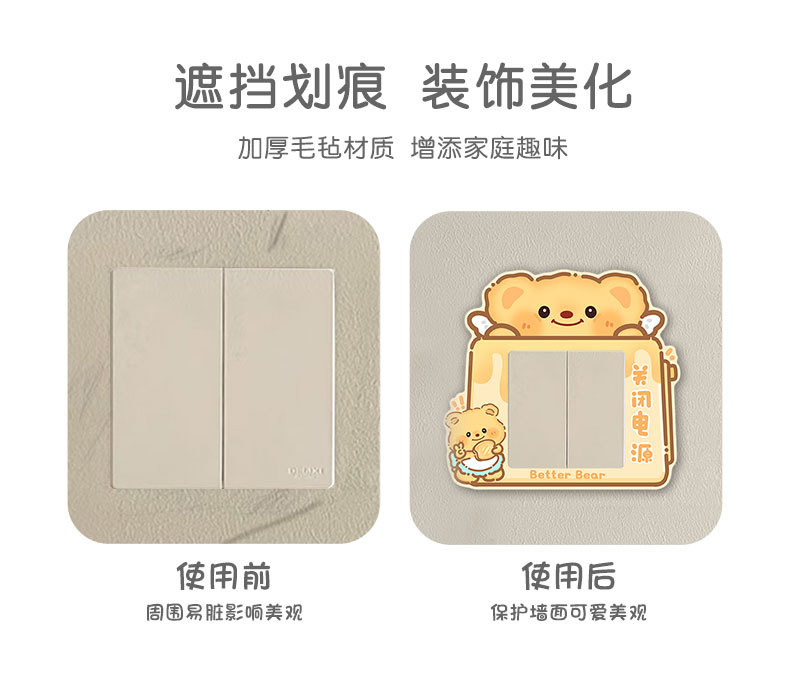 만화 귀여운 스위치 스티커 홈 소켓 테두리 커버 크리 에이 티브 스위치 보호 커버 펠트 장식 벽 스티커 자체 접착스토어 가기