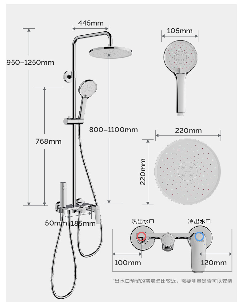 • 기본세트 1.5m (샤워+샤워파이프+믹싱밸브)
