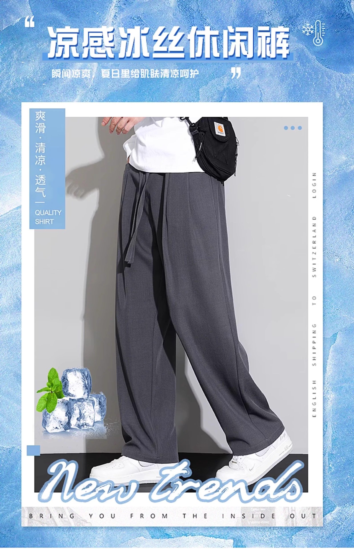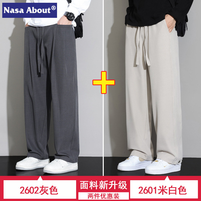 NASA 여름 얇은 느슨한 스트레이트 드레이퍼 캐주얼 남성 마체테 바지 십대 초박형 빠른 건조 캐주얼 바지