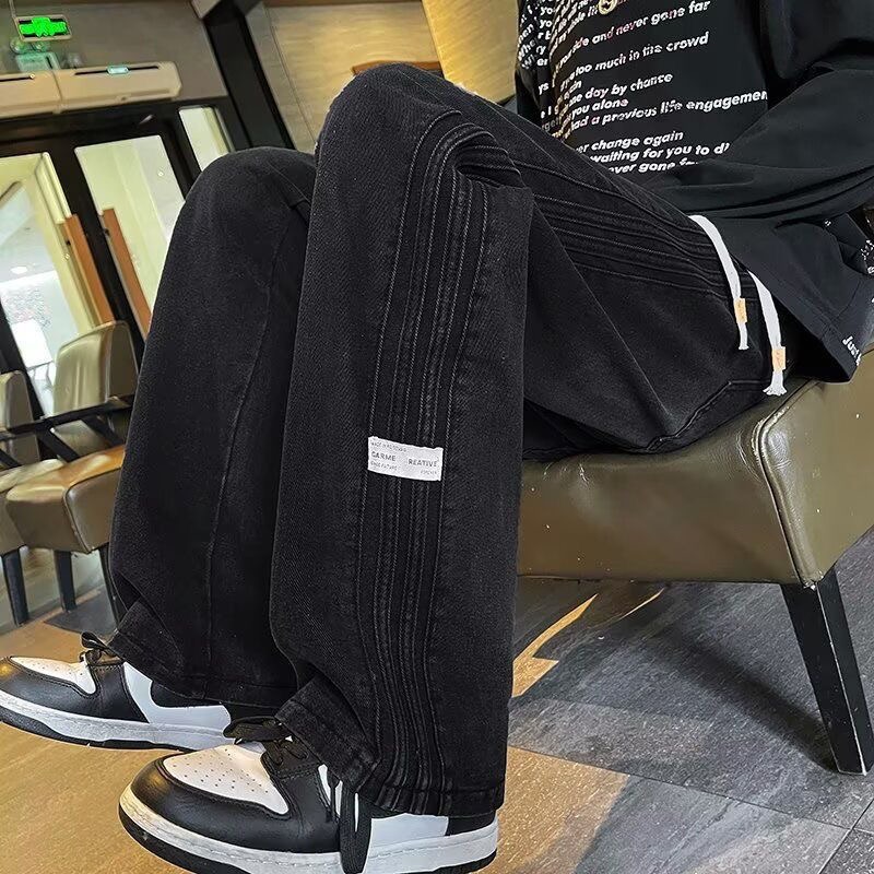 아메리칸 스타일 사이드 스트라이프 데님 바지 남자 봄과 가을 새로운 하이 엔드 센스 루즈 패셔너블 올 매치 캐주얼 스트레이트 바지스토어 가기