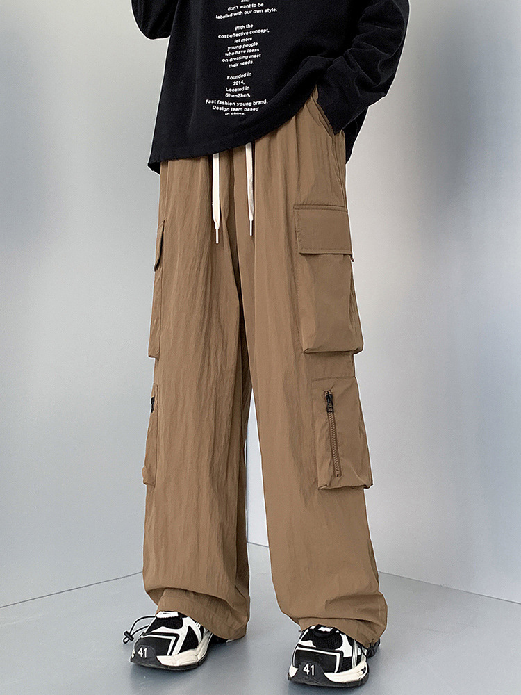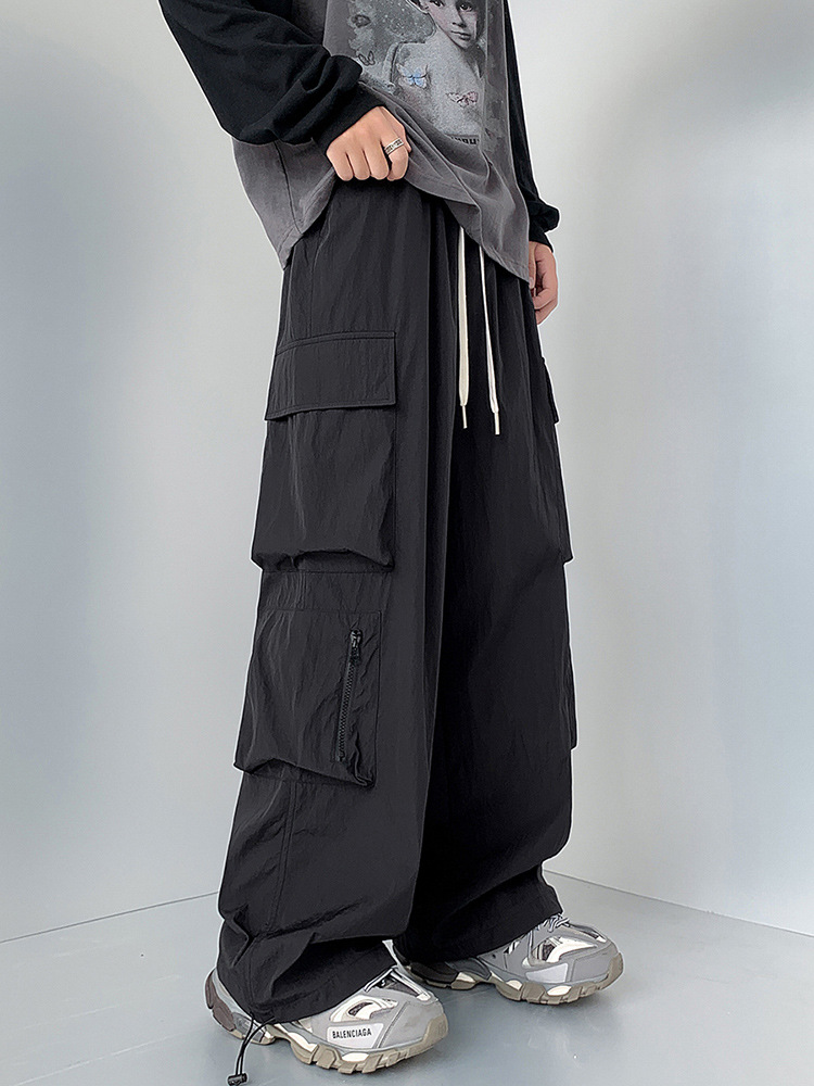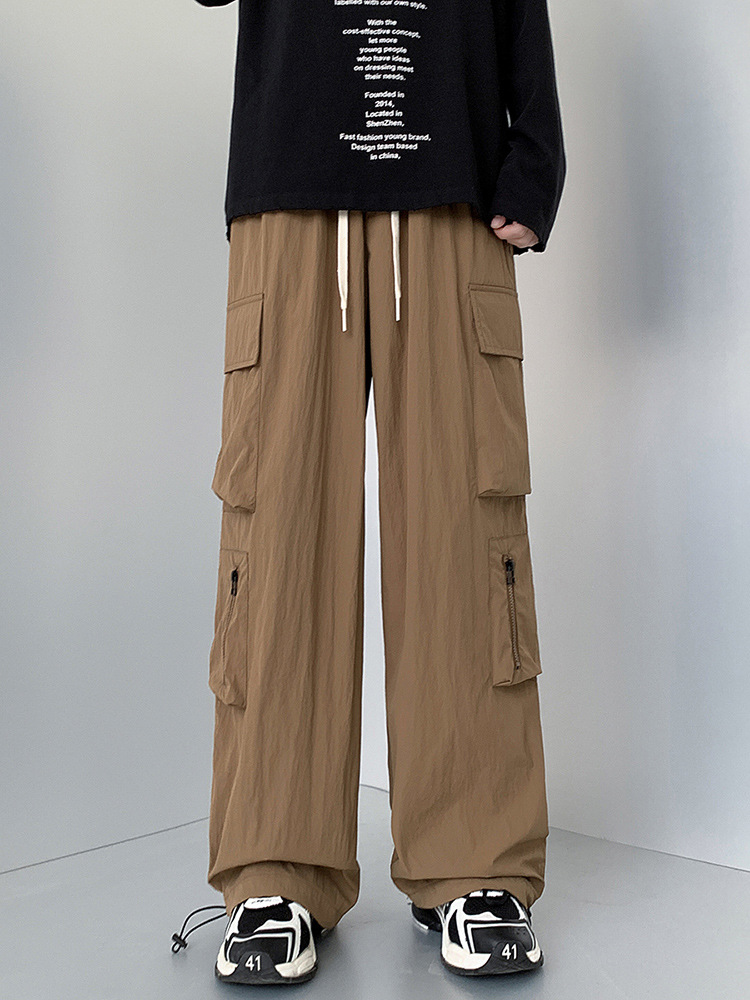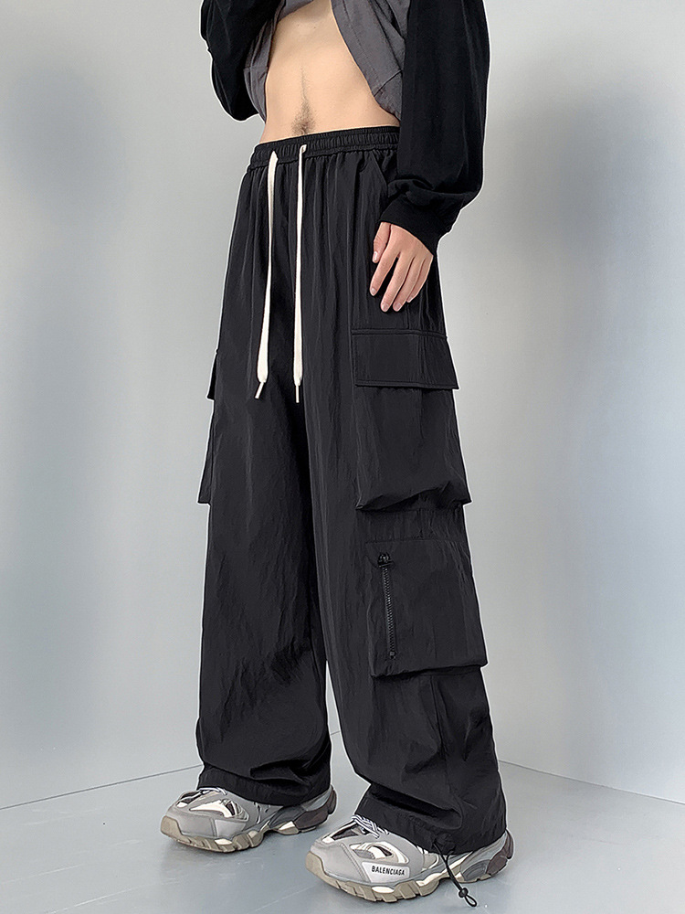 아메리칸 기능성 스타일 워크웨어 캐주얼 팬츠 남성 여름 스트레이트 와이드 레그 타이 트렌디 브랜드 핸섬 스트리트 패션 팬츠