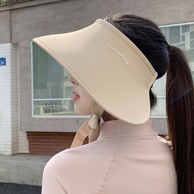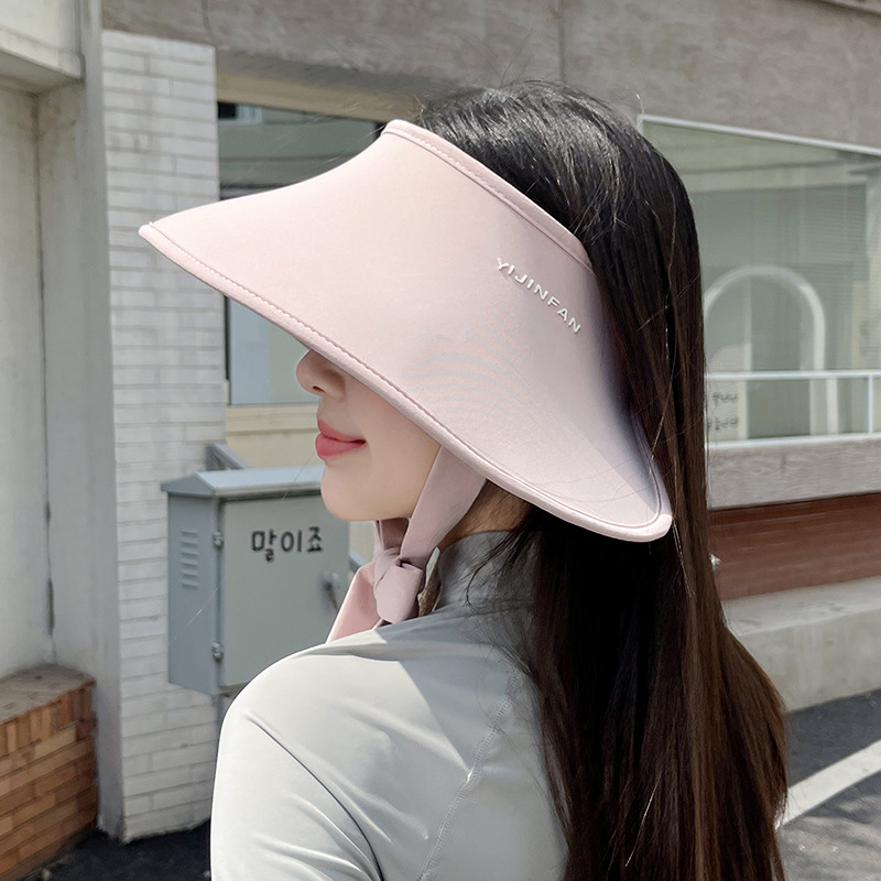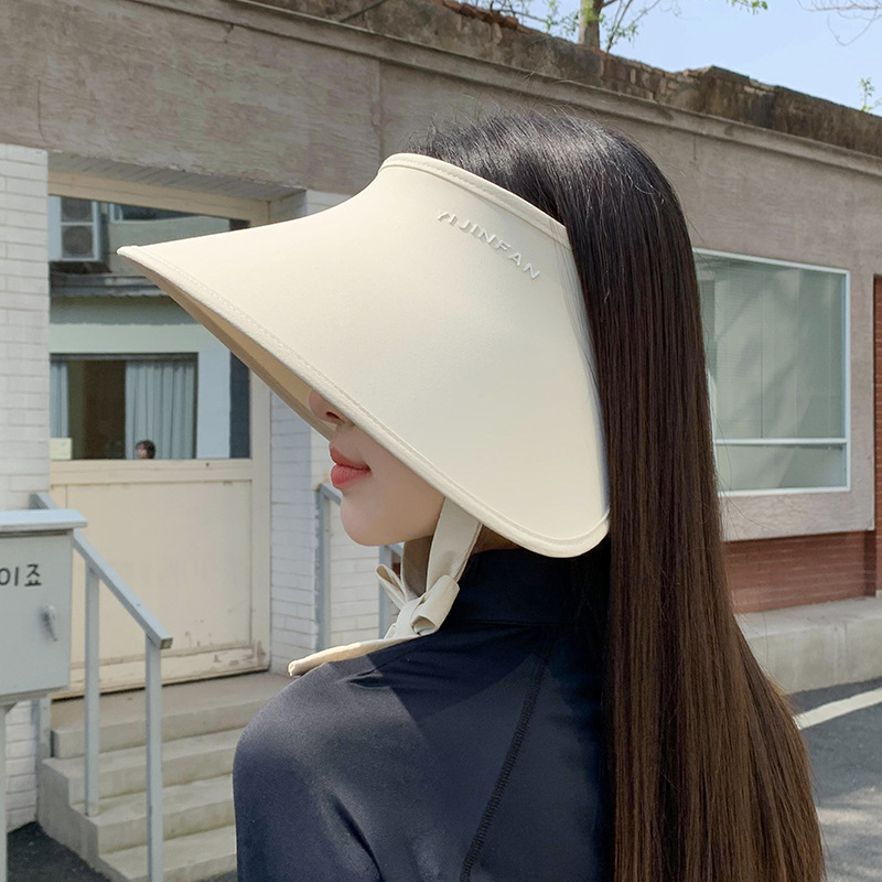 여름 야외 라이딩용 자외선 차단 숄, 자외선 차단 모자, 아이스 실크 프린팅 넓은 챙 얼굴 가리는 오픈탑 모자 (여성용)
