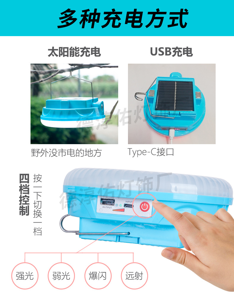태양 휴대용 캠핑 충전 텐트 램프 야외 조명 가정용 긴 내구성 비상 슈퍼 밝은 충전 전구