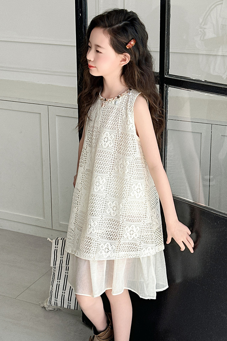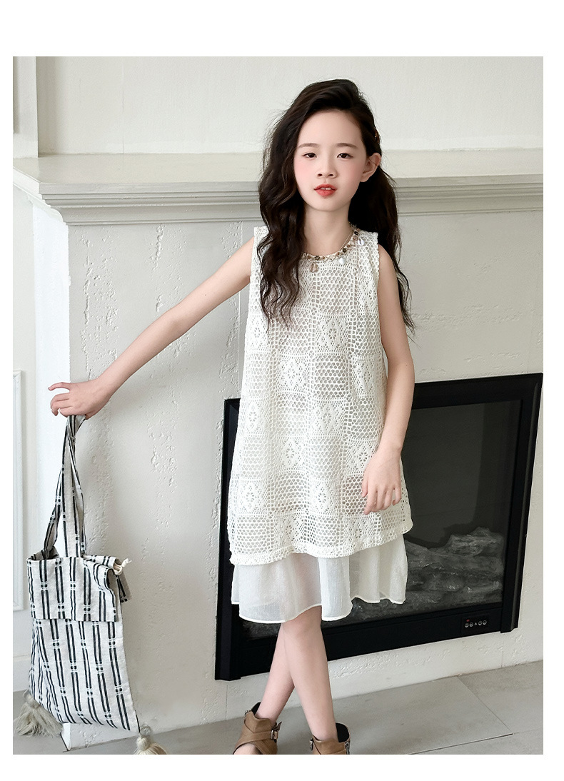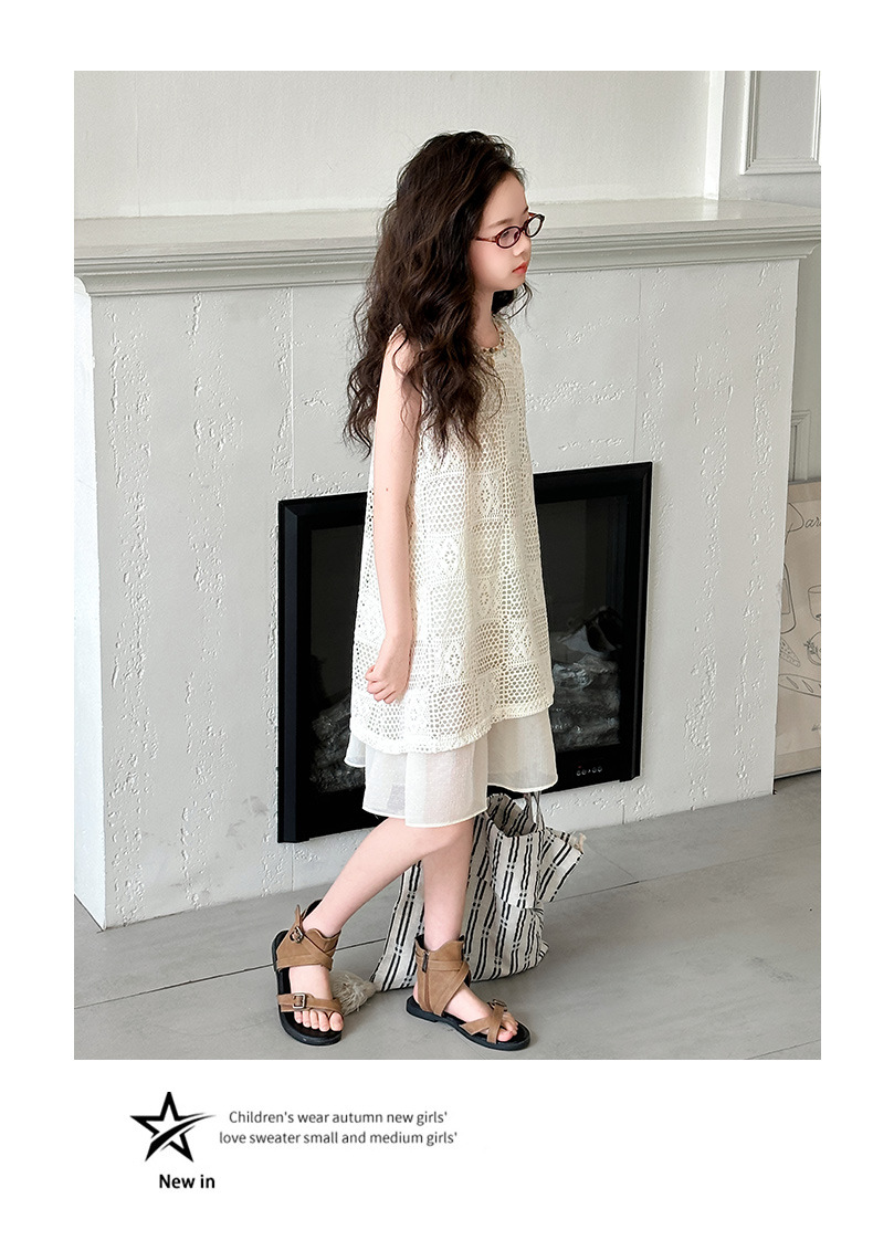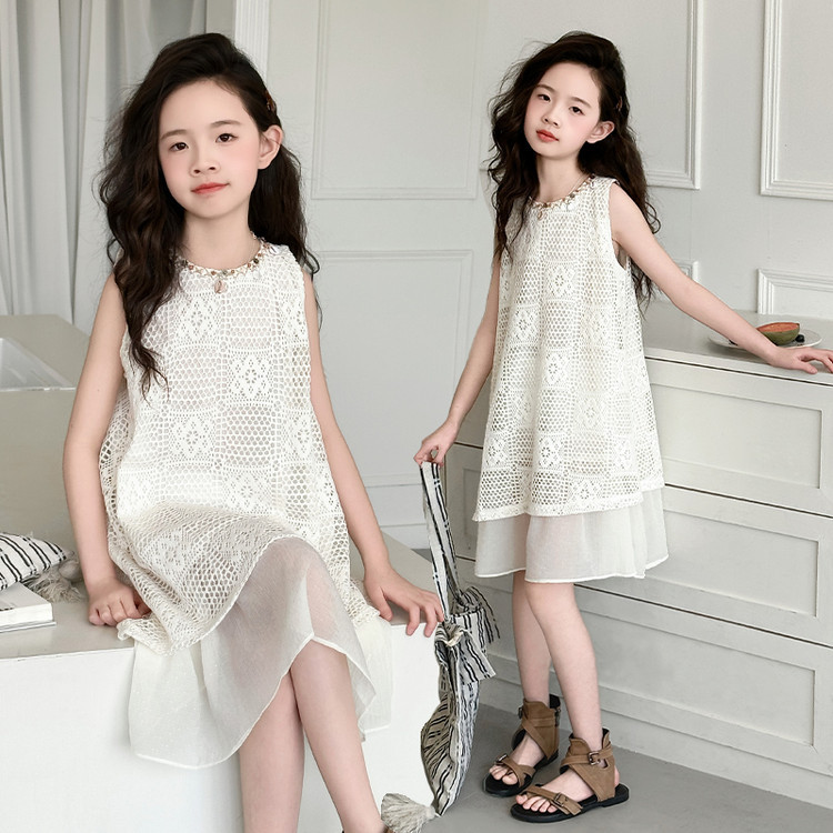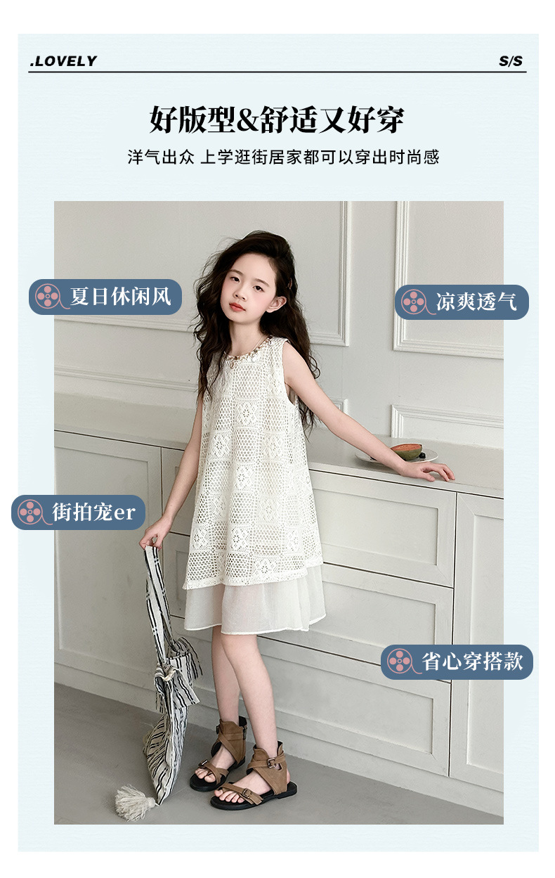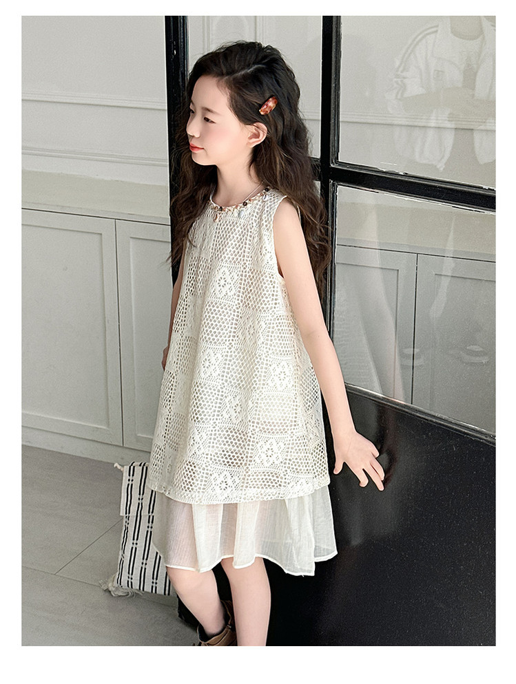 재고 어린이 한국 아동복 여자 민소매 원피스 2025 여름 어린이 유행 가짜 투피스 원피스 유행스토어 가기