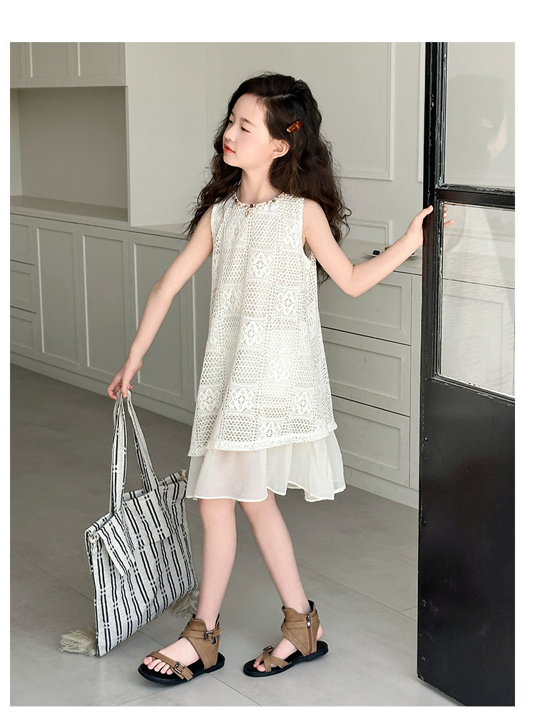 재고 어린이 한국 아동복 여자 민소매 원피스 2025 여름 어린이 유행 가짜 투피스 원피스 유행