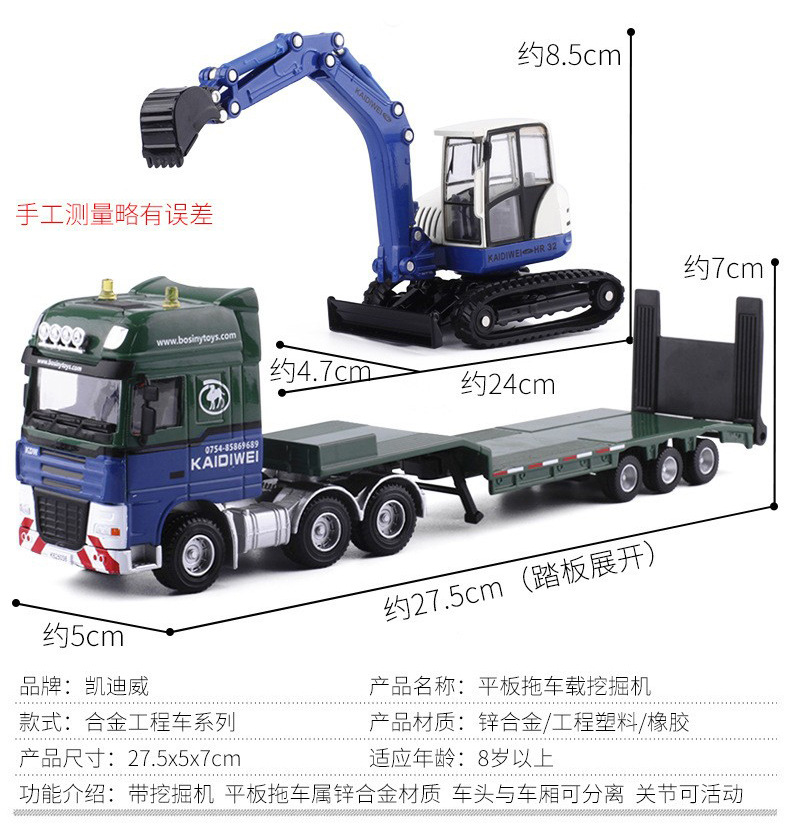 • Kaidiwei 625038 굴삭기가 장착된 플랫베드 트레일러