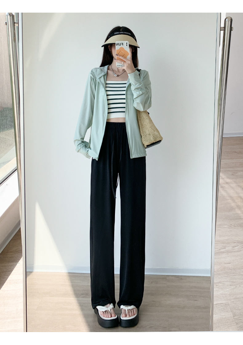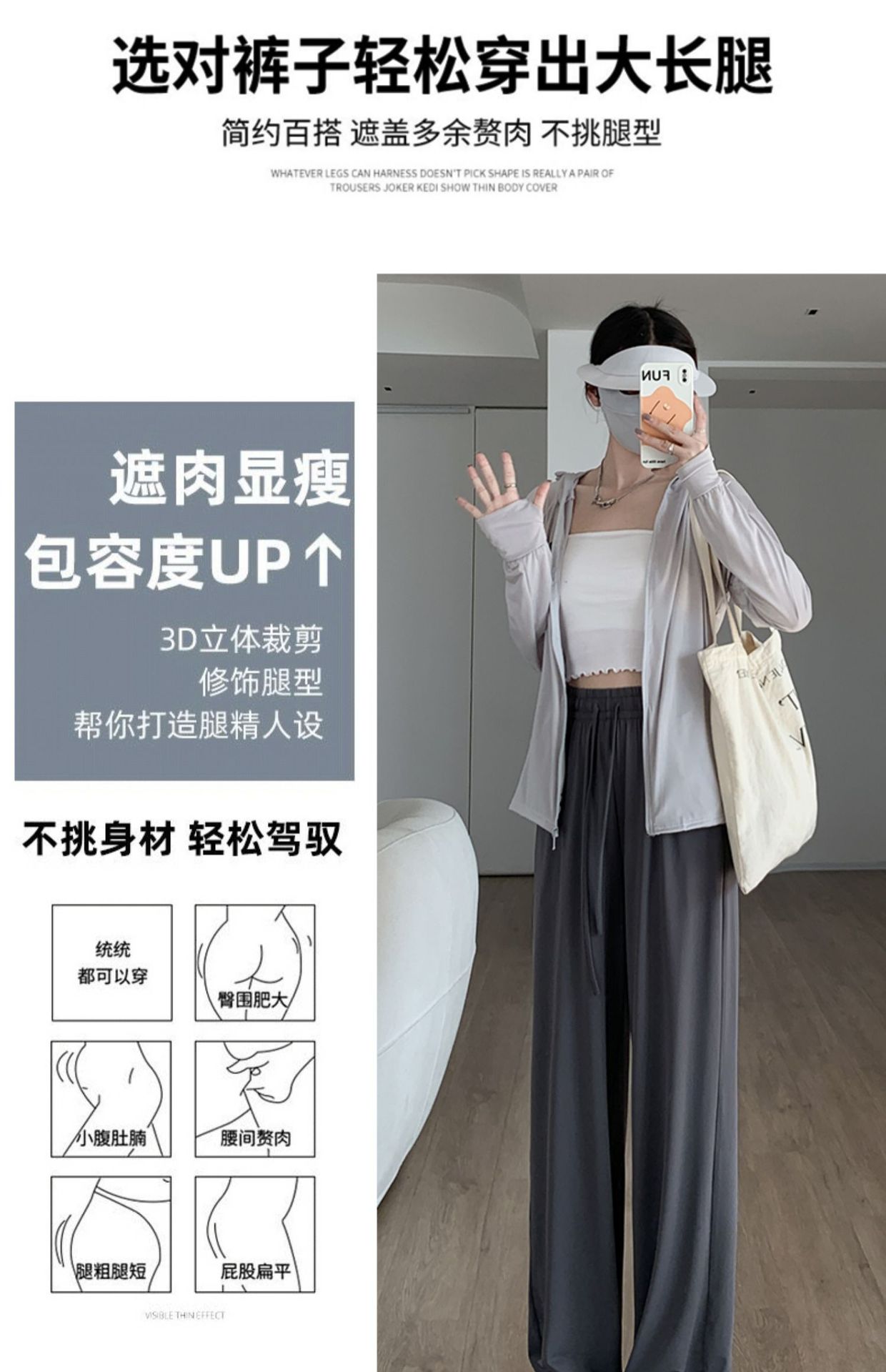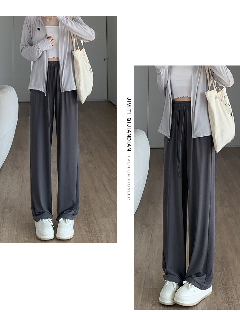 TikTok 품질 나일론 아이스 센스 와이드 레그 팬츠 여자 2025 여름 느슨한 슬리밍 캐주얼 데프 아이스 실크 스포츠 바지