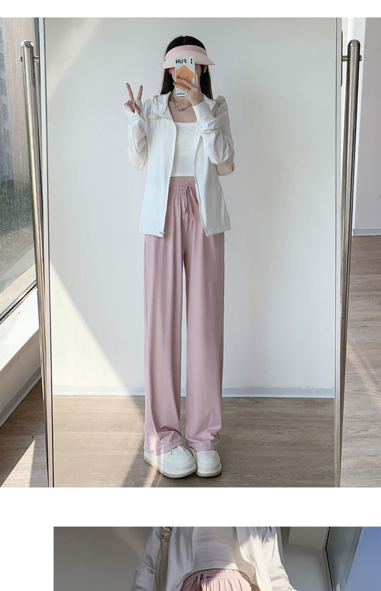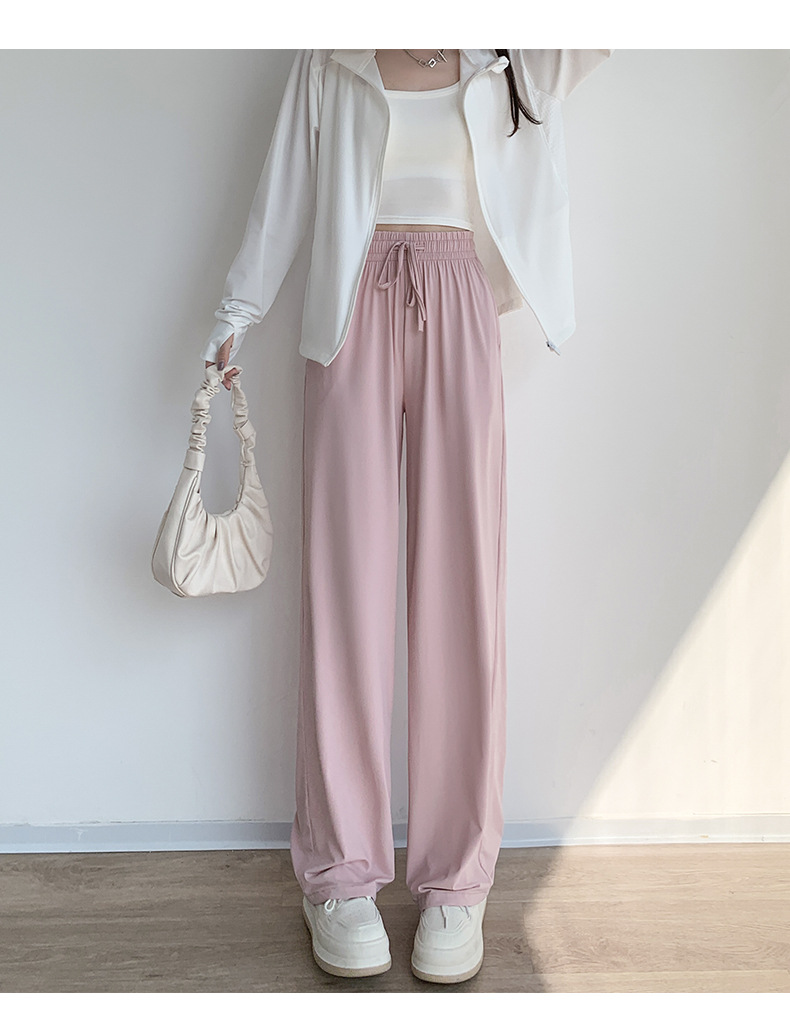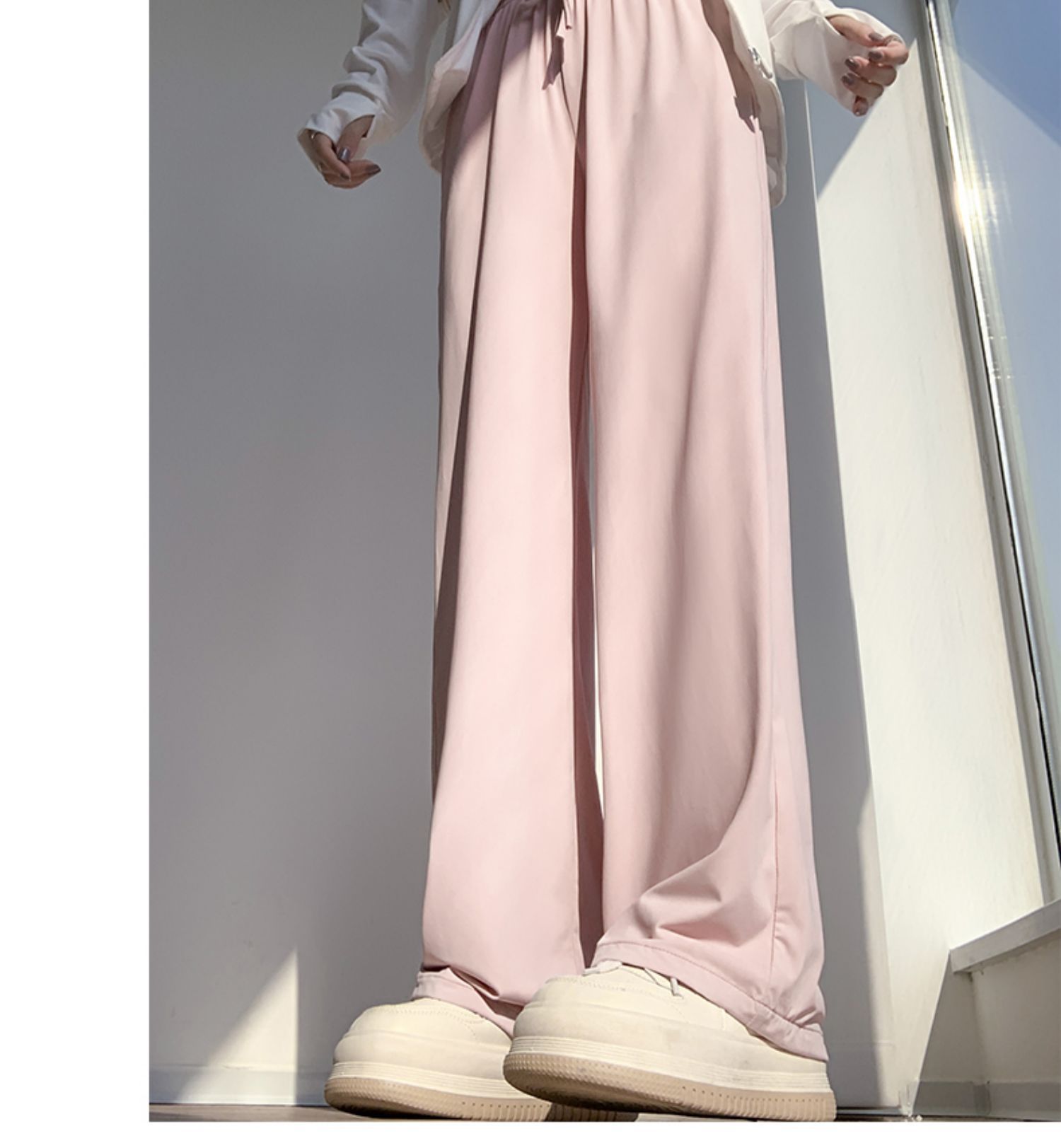 TikTok 품질 나일론 아이스 센스 와이드 레그 팬츠 여자 2025 여름 느슨한 슬리밍 캐주얼 데프 아이스 실크 스포츠 바지스토어 가기