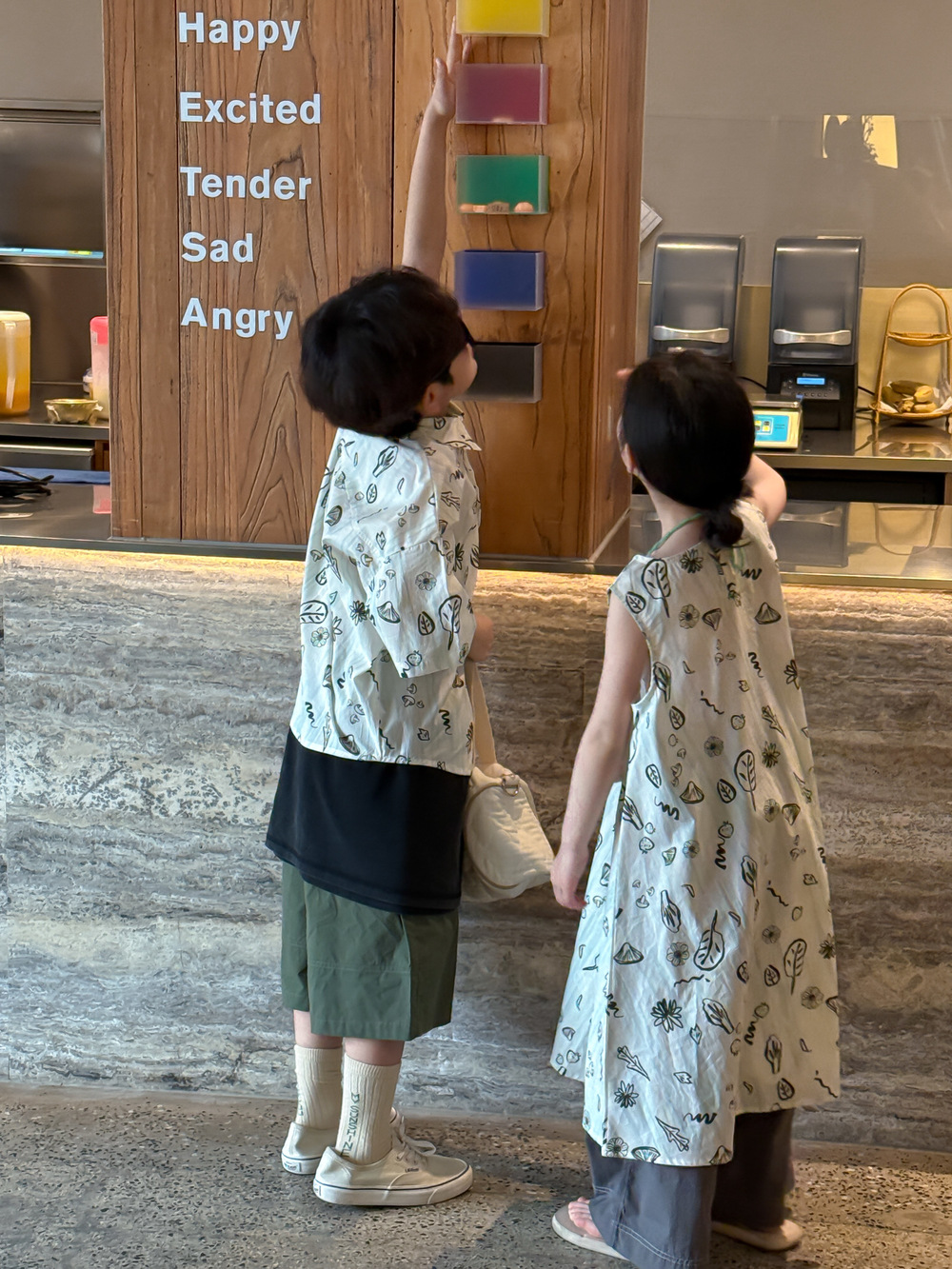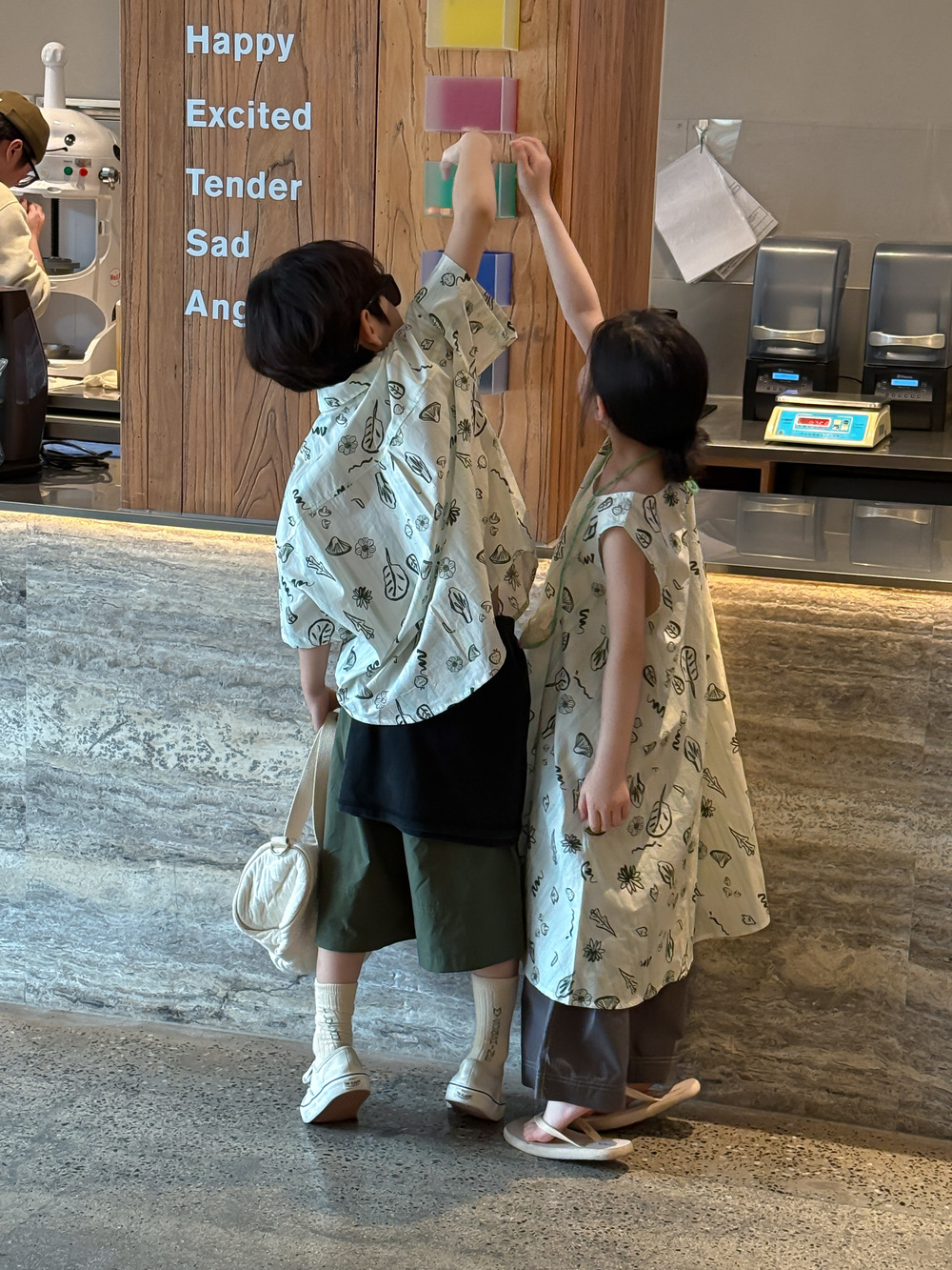 아동용 셔츠 2026 여름 한국 스타일 남아 여아용 풀 프린트 반팔 셔츠 아동용 루즈핏 캐주얼 조끼 스커트 형제자매룩스토어 가기
