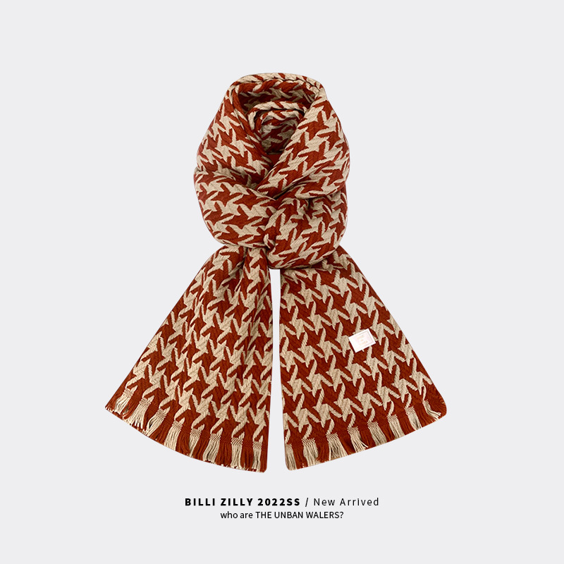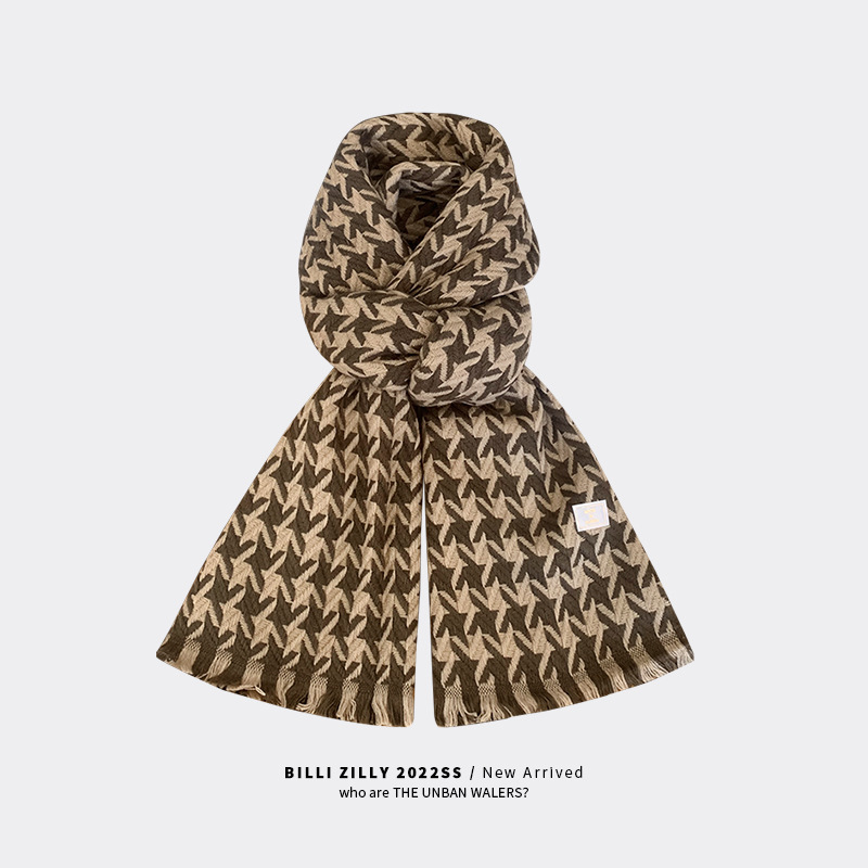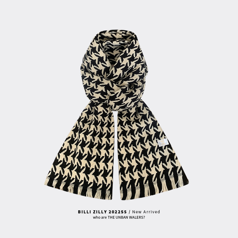 손으로 짠 All-Match Houndstooth 스카프 여성의 겨울 한국 스타일 외부 짠 대형 목도리 이중 사용 봄 및 가을 격자 무늬 스카프 남성용