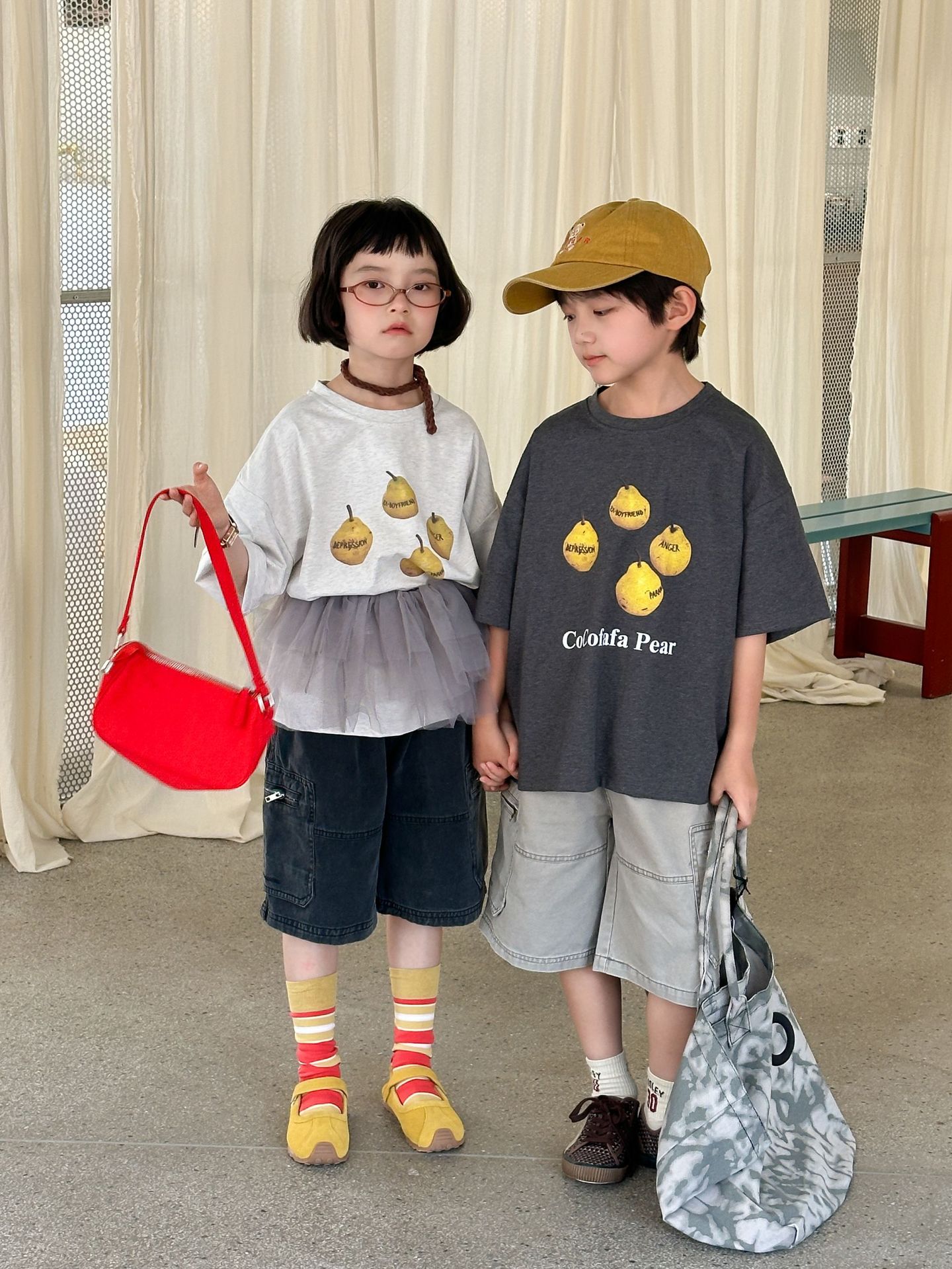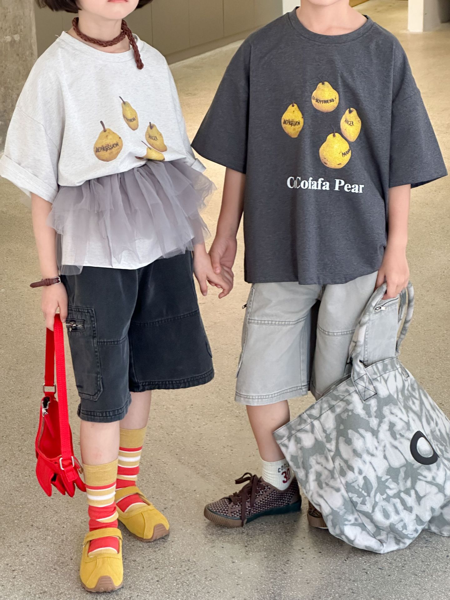 2025 년 여름 새로운 한국 스타일 어린이 중공업 오래된 캐주얼 바지 소년 소녀를위한 올매치 복고풍 유행 바지