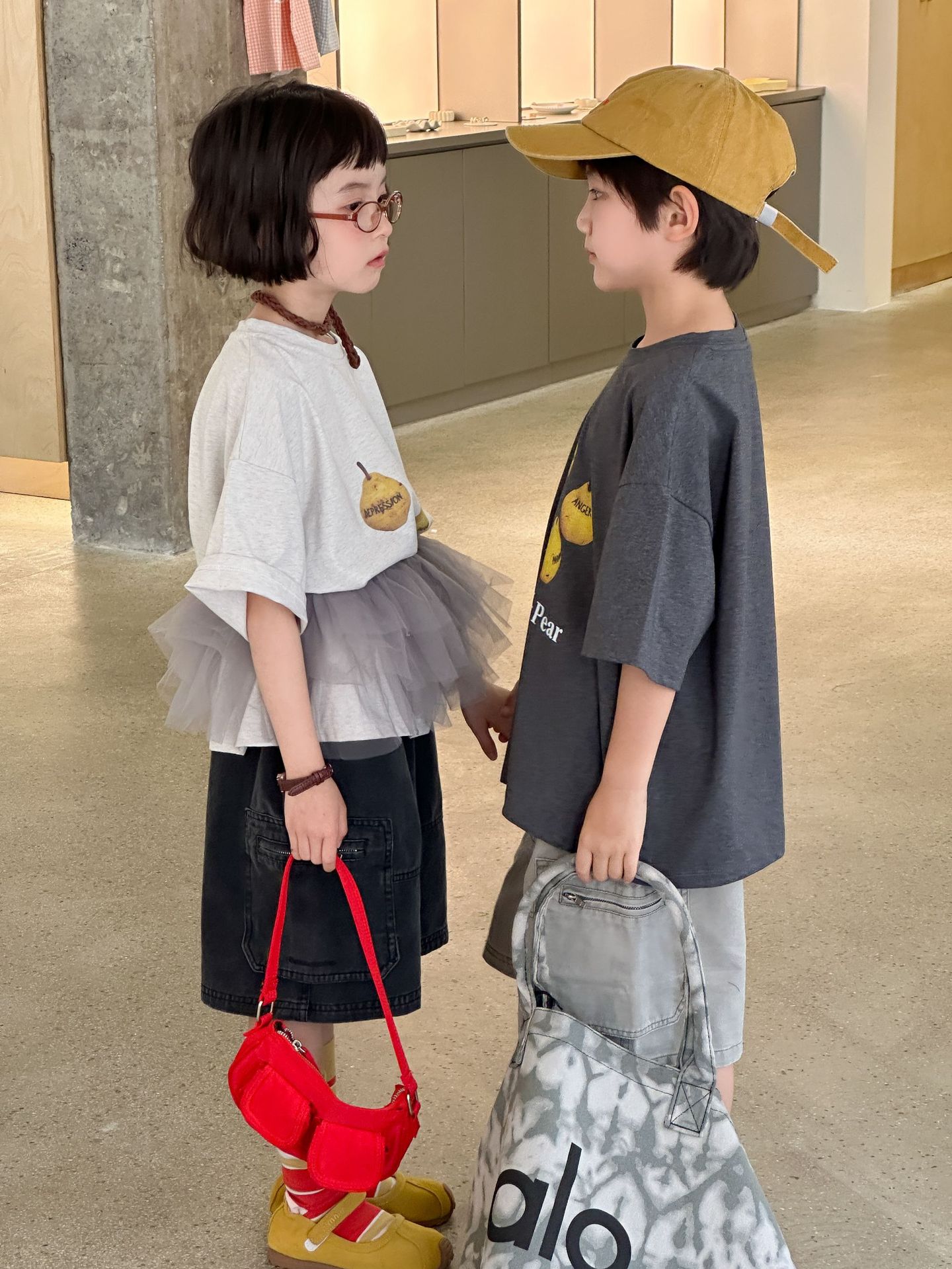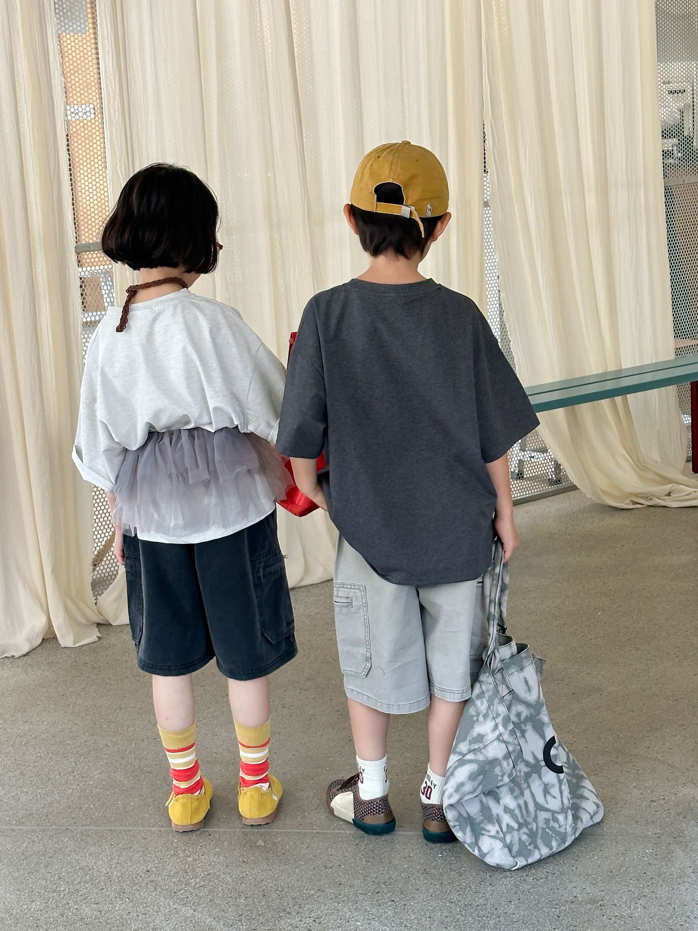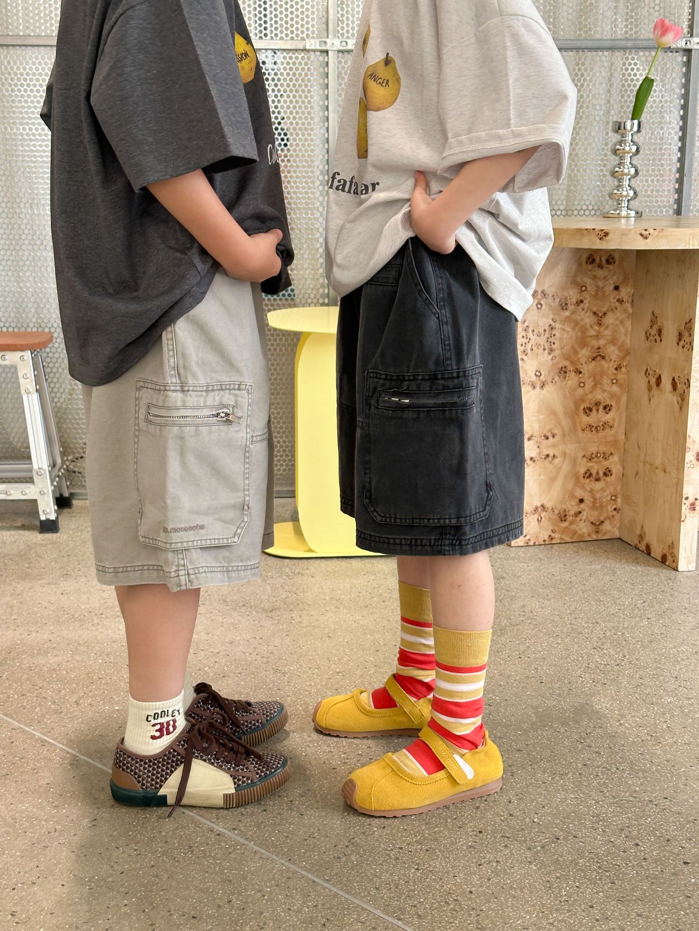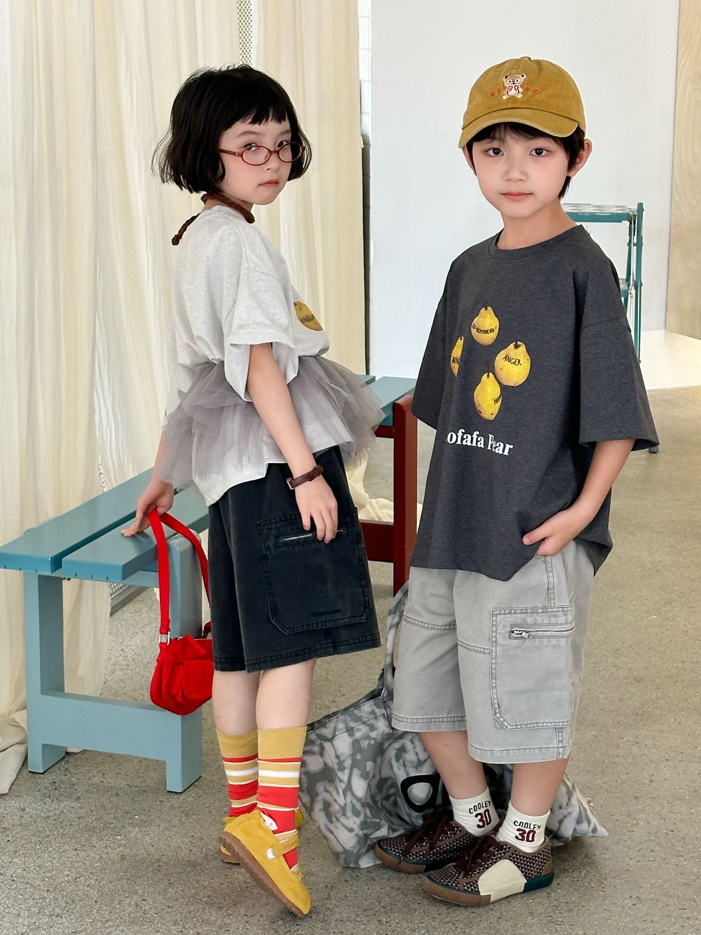 2025 년 여름 새로운 한국 스타일 어린이 중공업 오래된 캐주얼 바지 소년 소녀를위한 올매치 복고풍 유행 바지스토어 가기