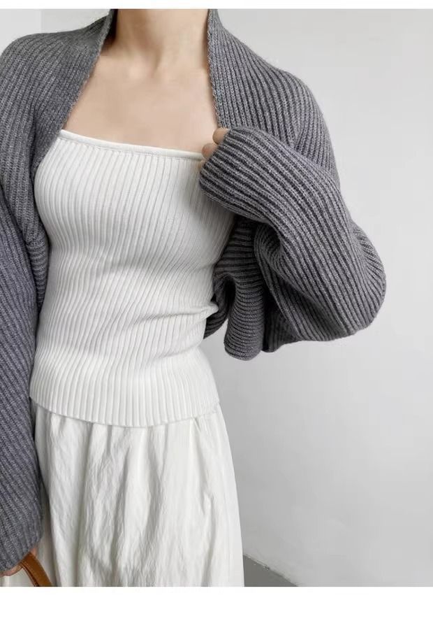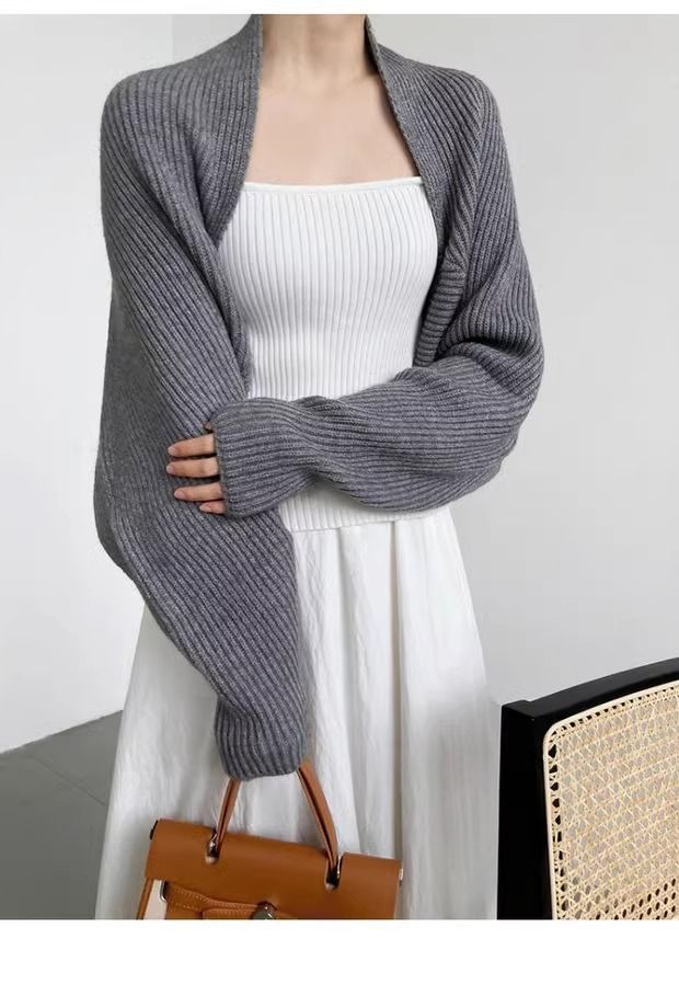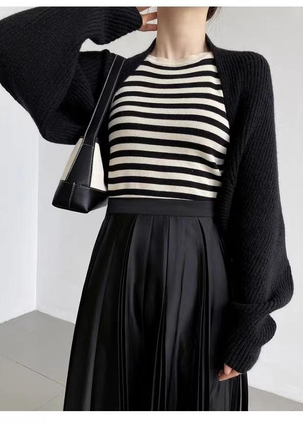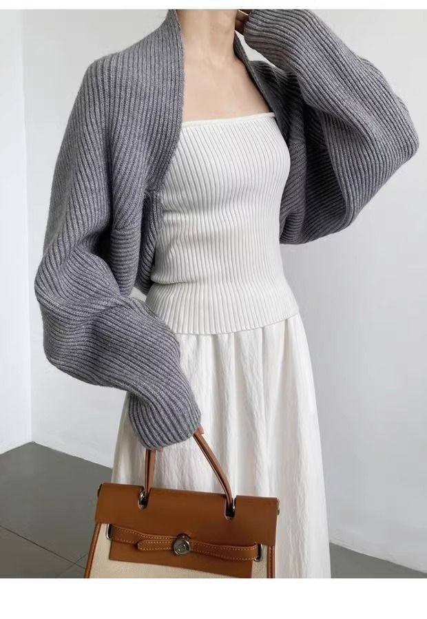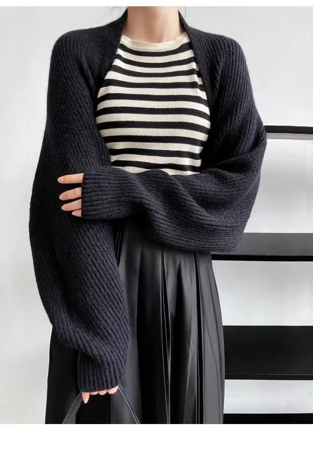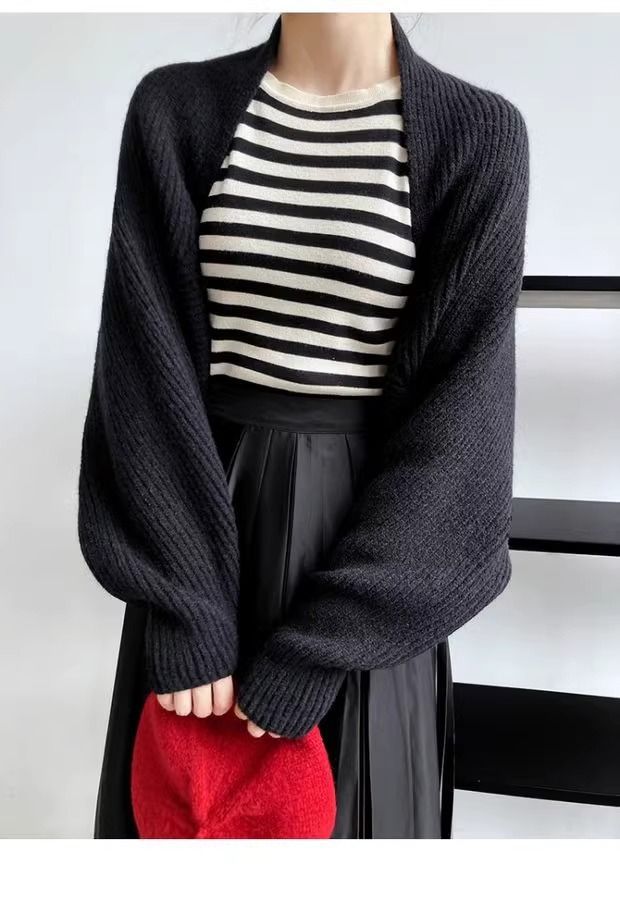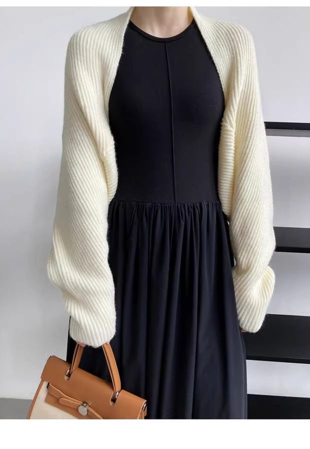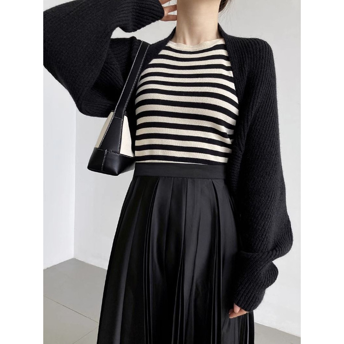 프렌치 스타일 조끼 서스펜더 스커트, 니트 가디건 재킷, 여성용 배트 슬리브 스웨터, 우아한 짧은 숄스토어 가기