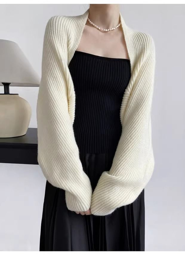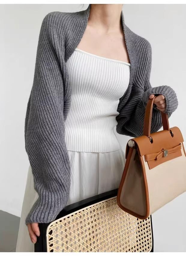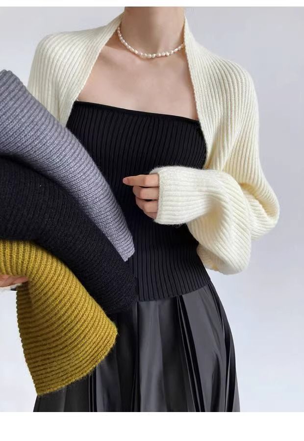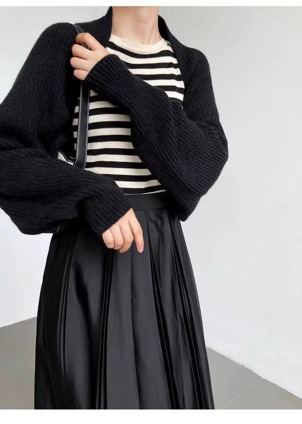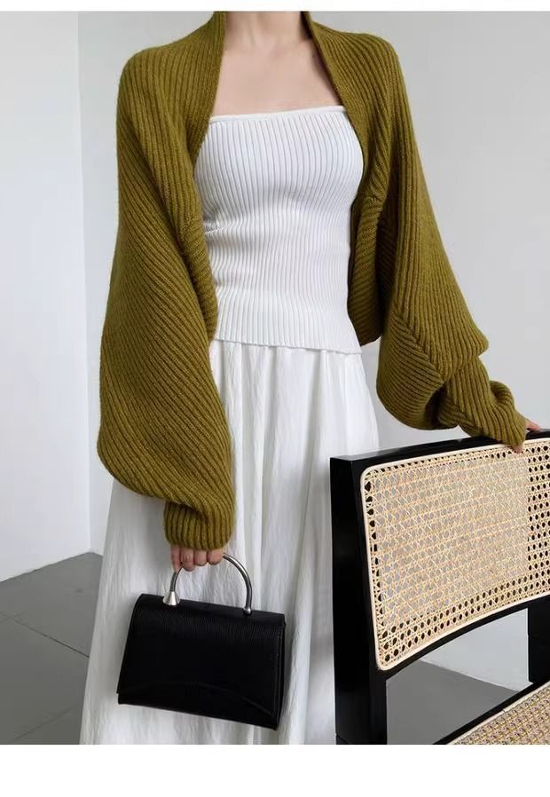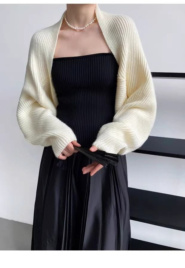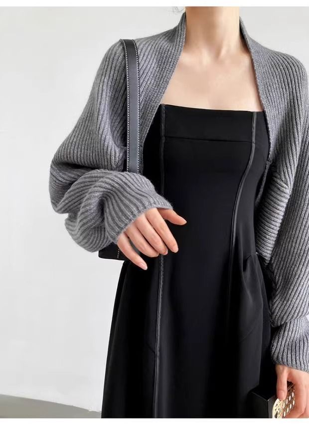 프렌치 스타일 조끼 서스펜더 스커트, 니트 가디건 재킷, 여성용 배트 슬리브 스웨터, 우아한 짧은 숄스토어 가기