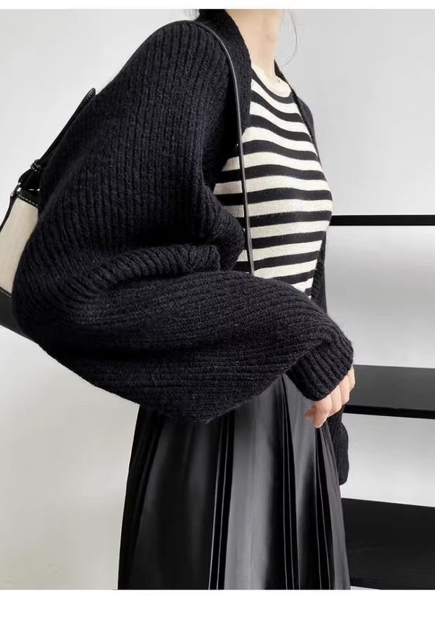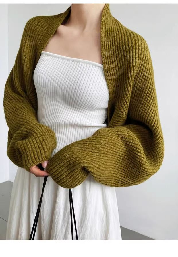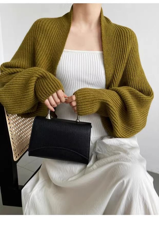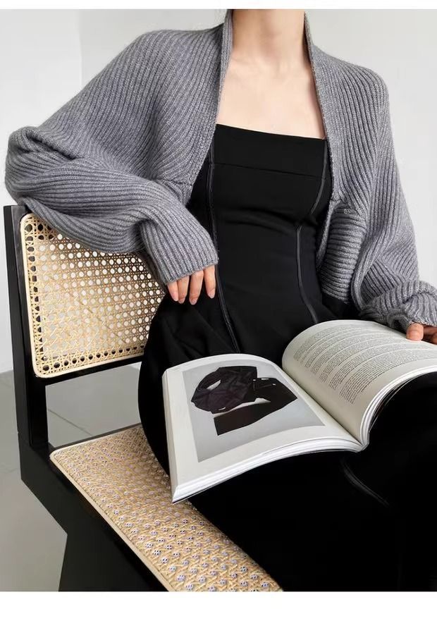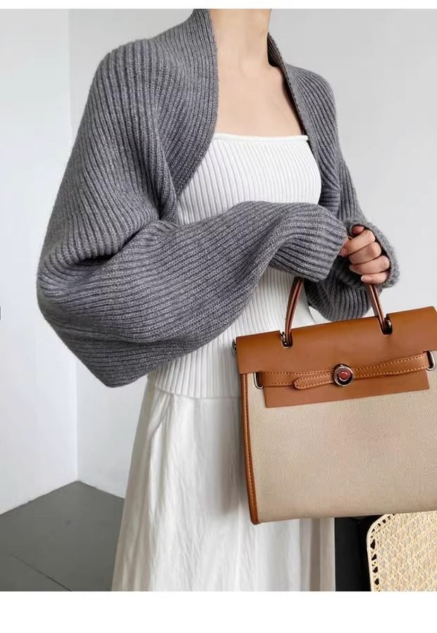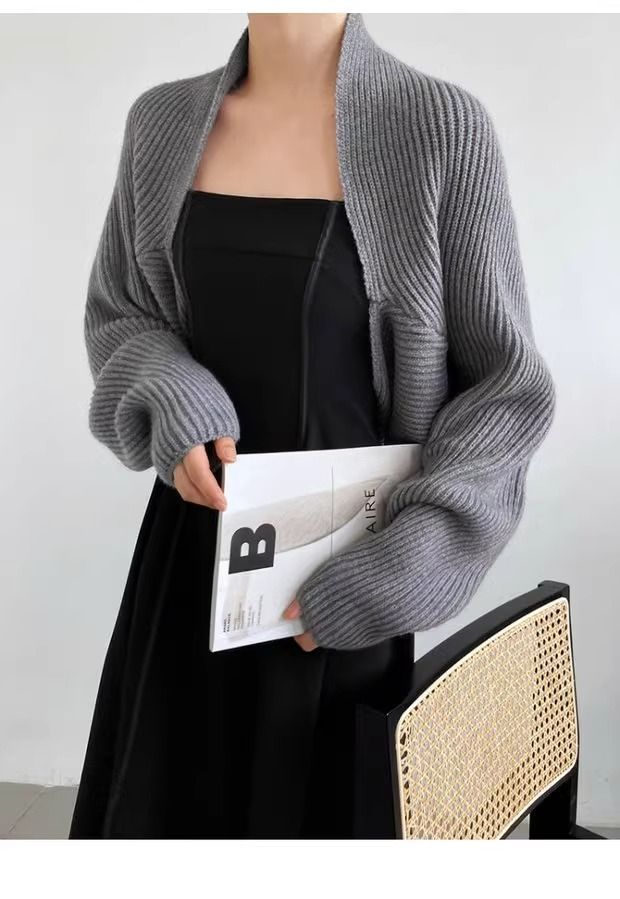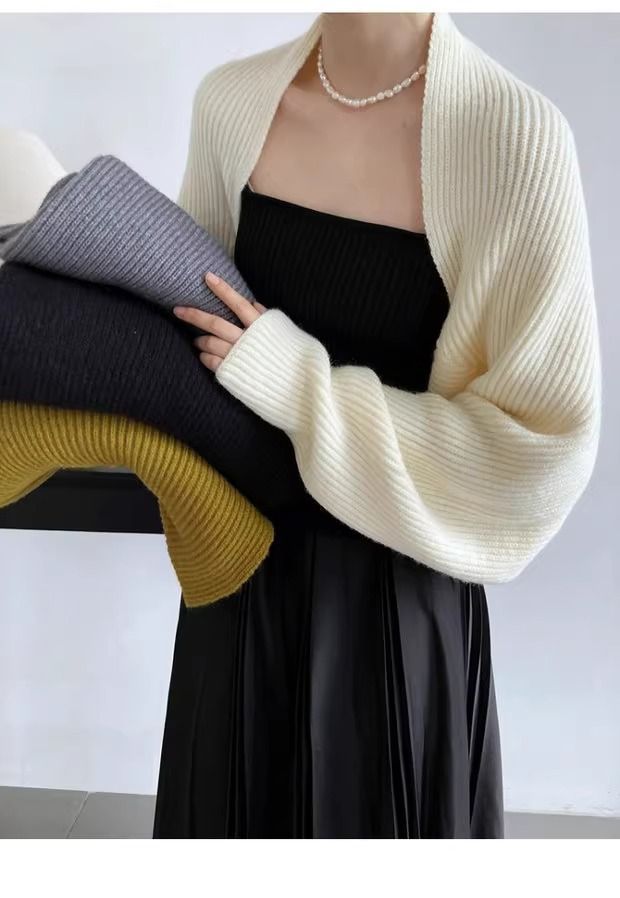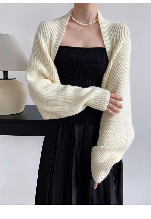 프렌치 스타일 조끼 서스펜더 스커트, 니트 가디건 재킷, 여성용 배트 슬리브 스웨터, 우아한 짧은 숄스토어 가기