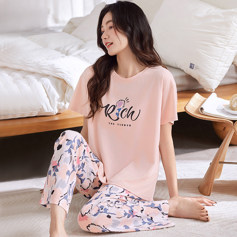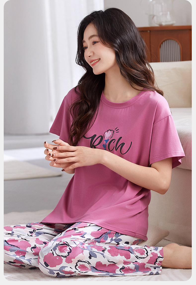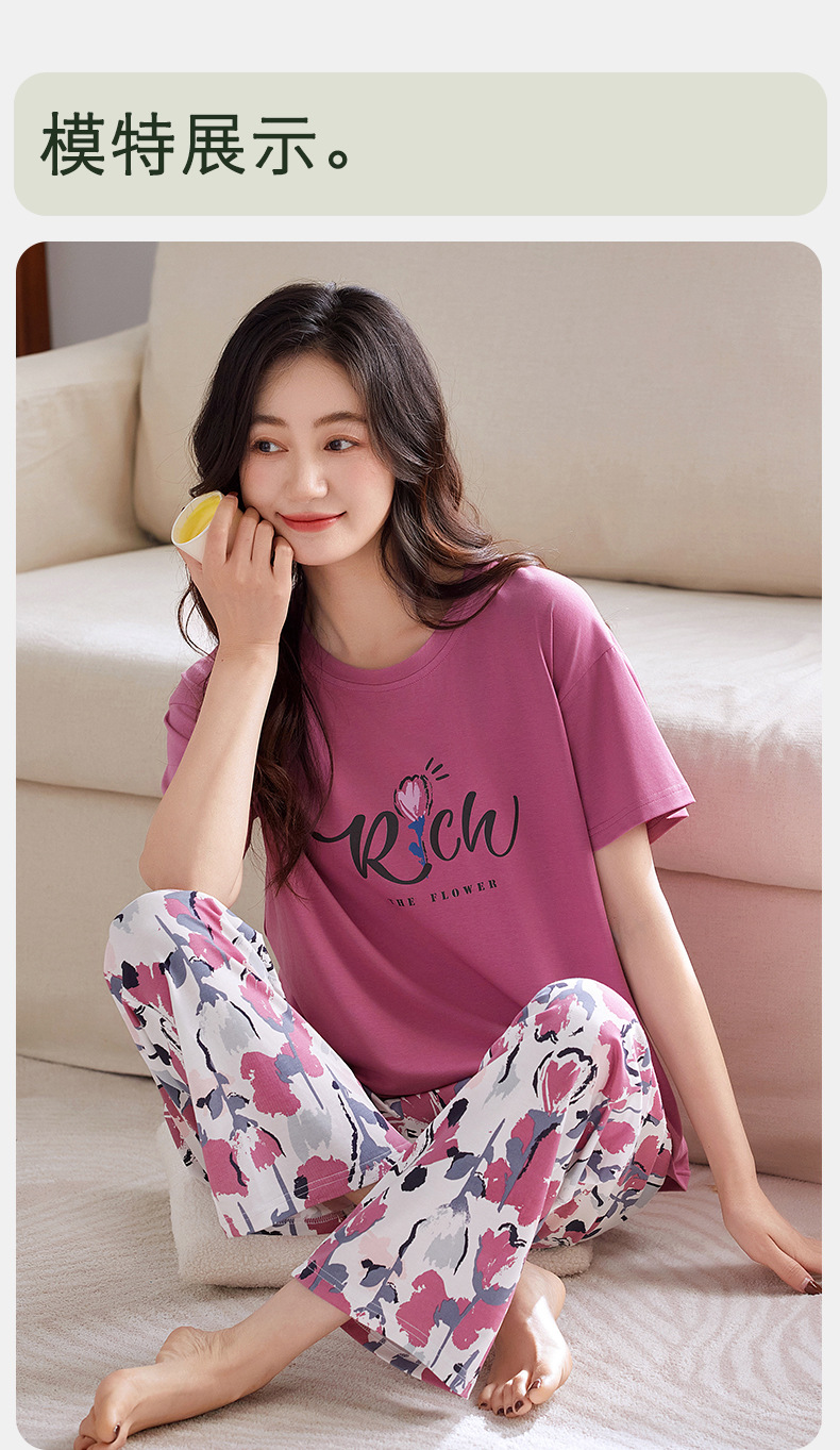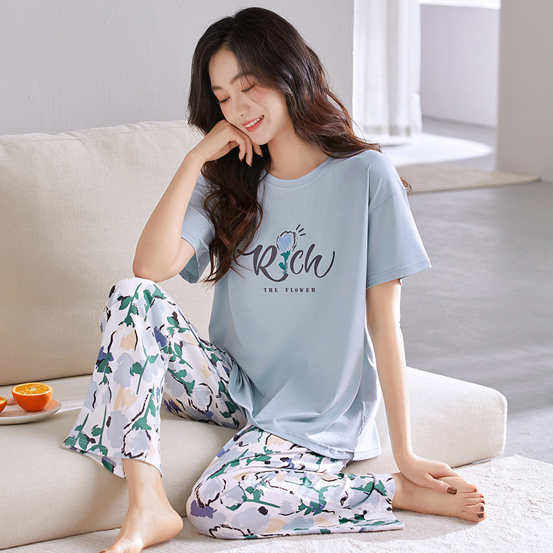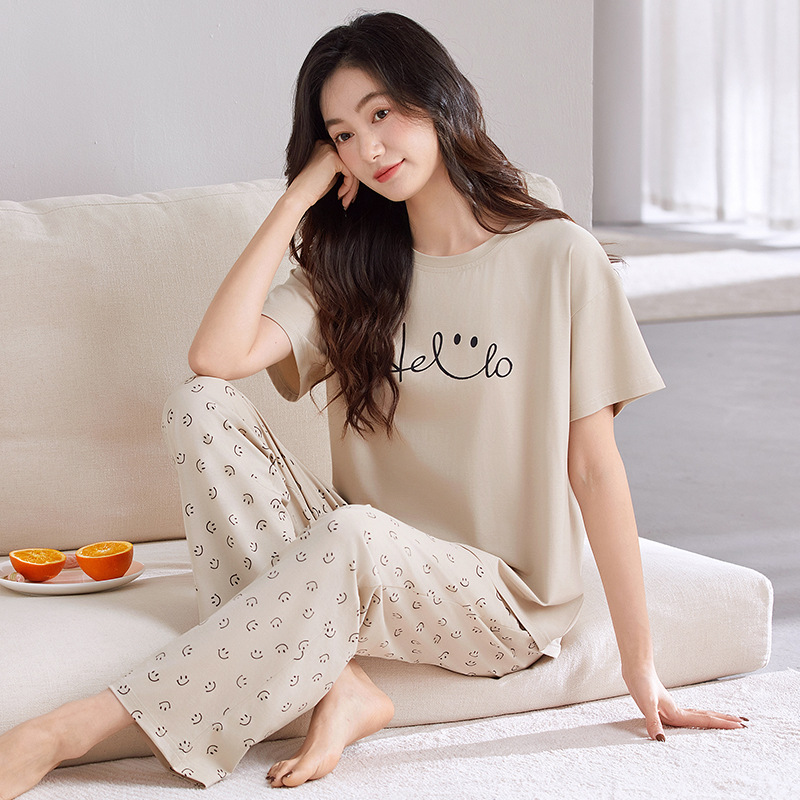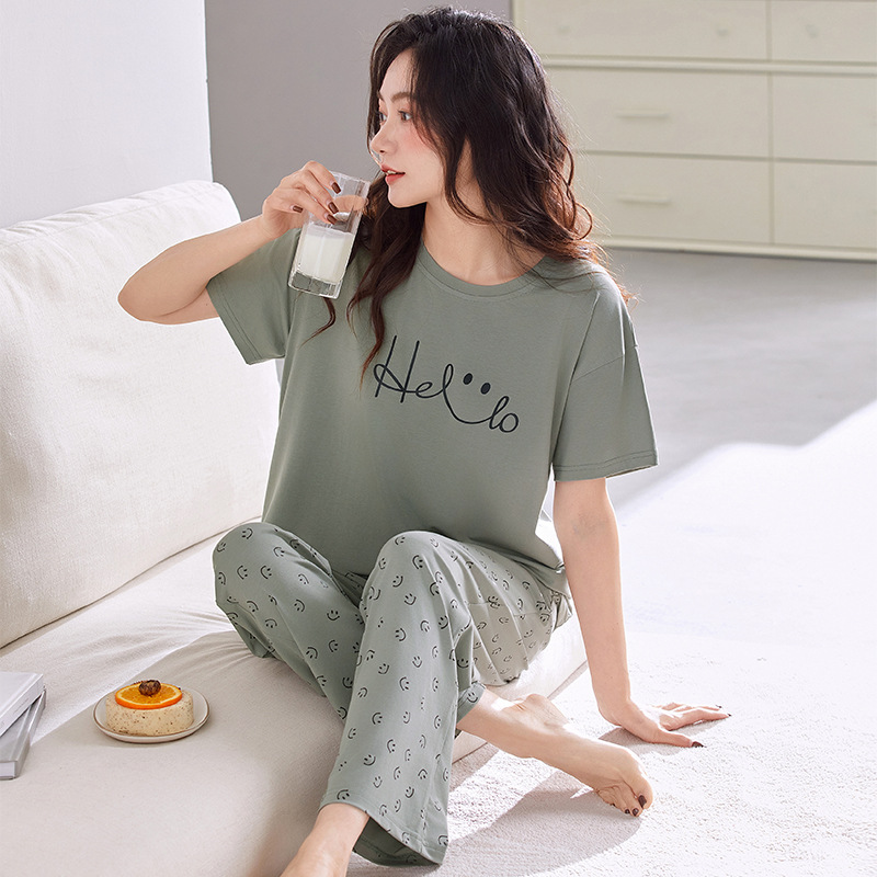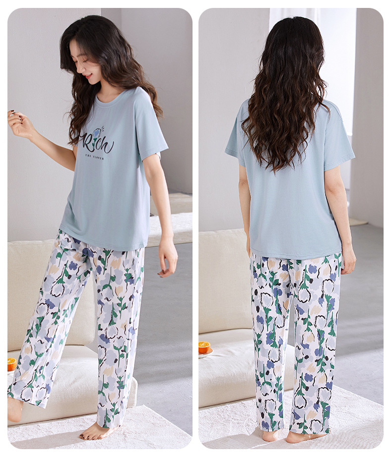 잠옷 여성의 여름 란징 모달 코튼 반팔 바지 얇은 여름 시원한 캐주얼 플러스 사이즈 홈 의류 세트스토어 가기