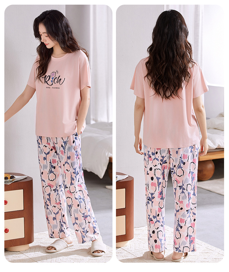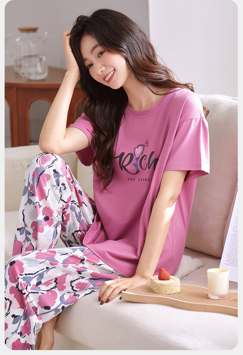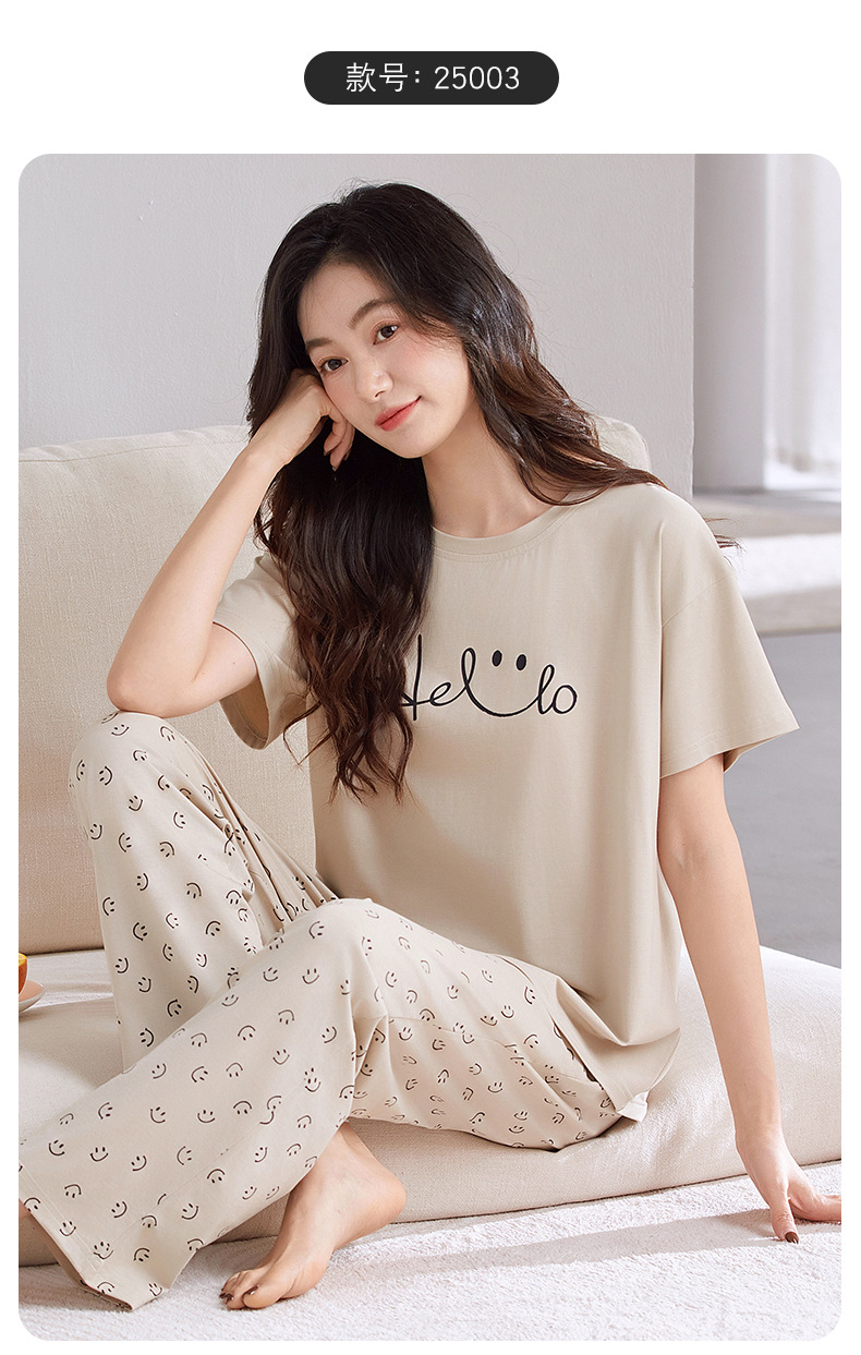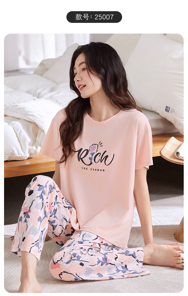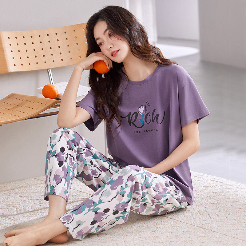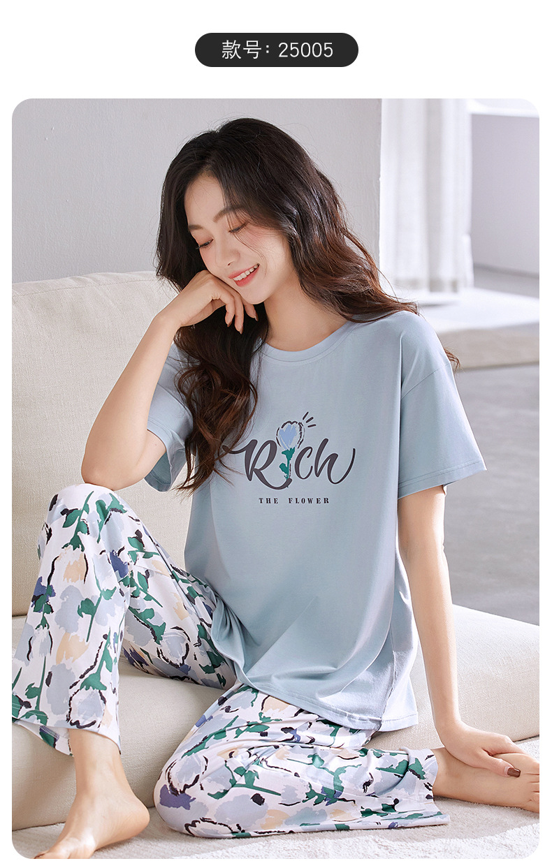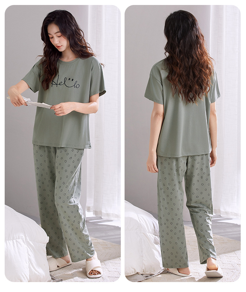 잠옷 여성의 여름 란징 모달 코튼 반팔 바지 얇은 여름 시원한 캐주얼 플러스 사이즈 홈 의류 세트스토어 가기
