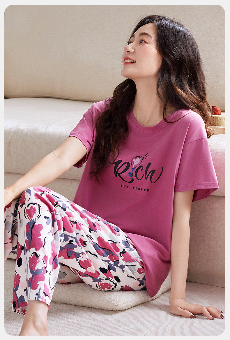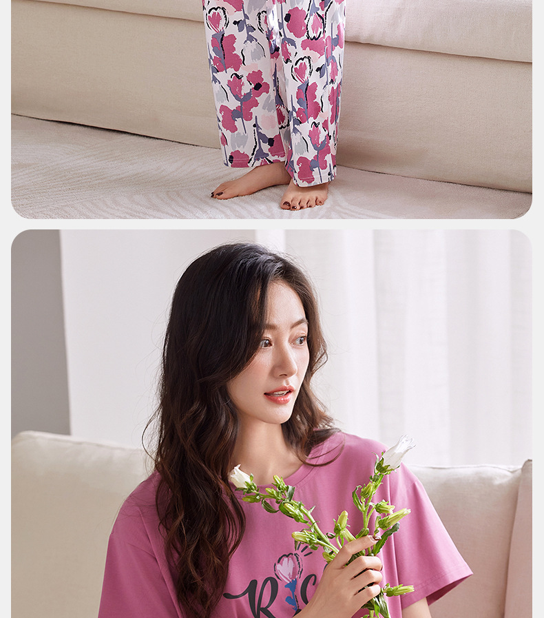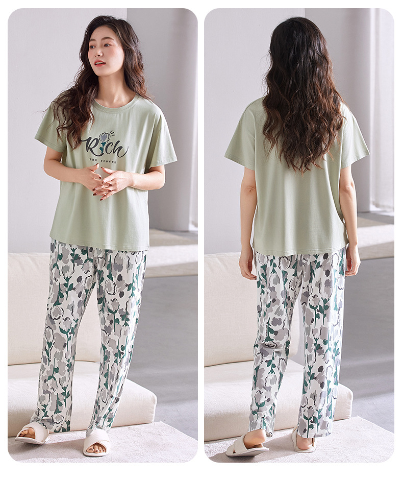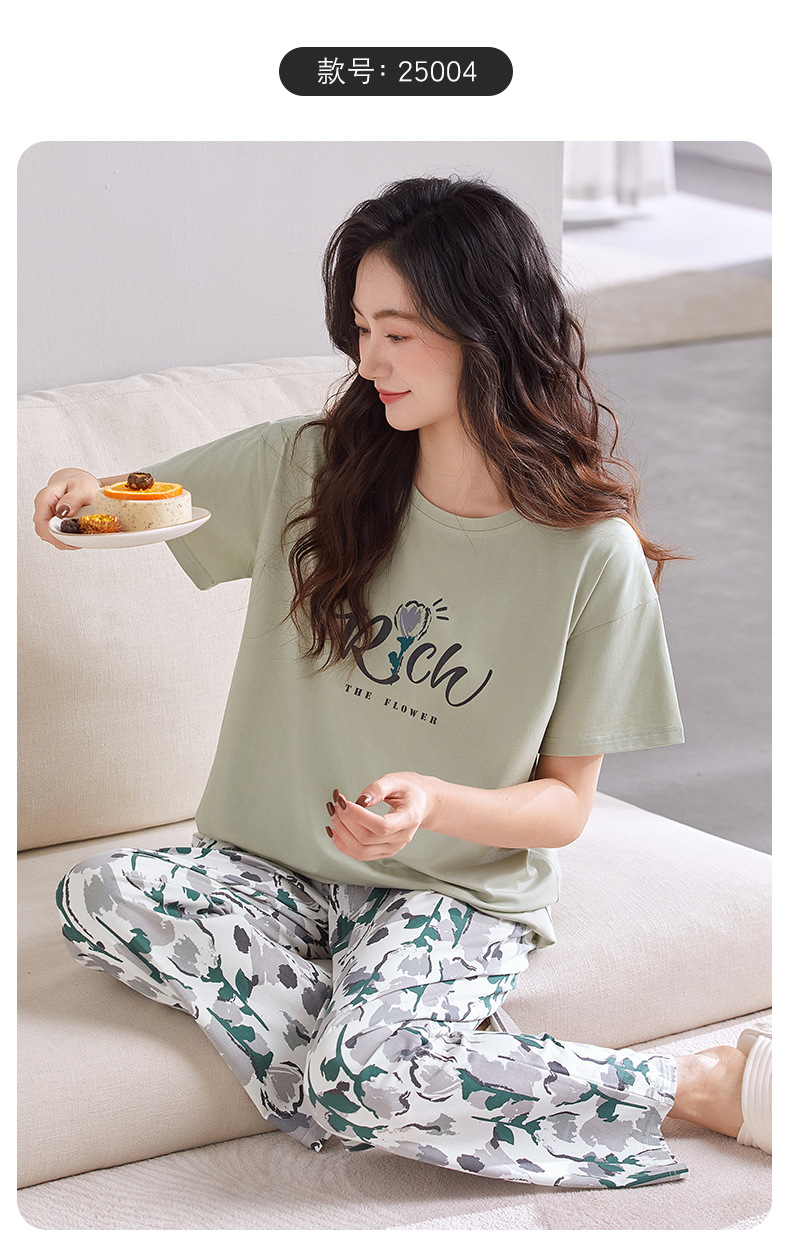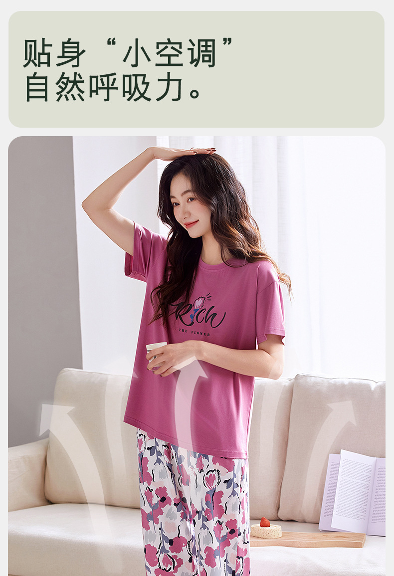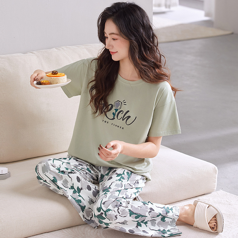 잠옷 여성의 여름 란징 모달 코튼 반팔 바지 얇은 여름 시원한 캐주얼 플러스 사이즈 홈 의류 세트스토어 가기
