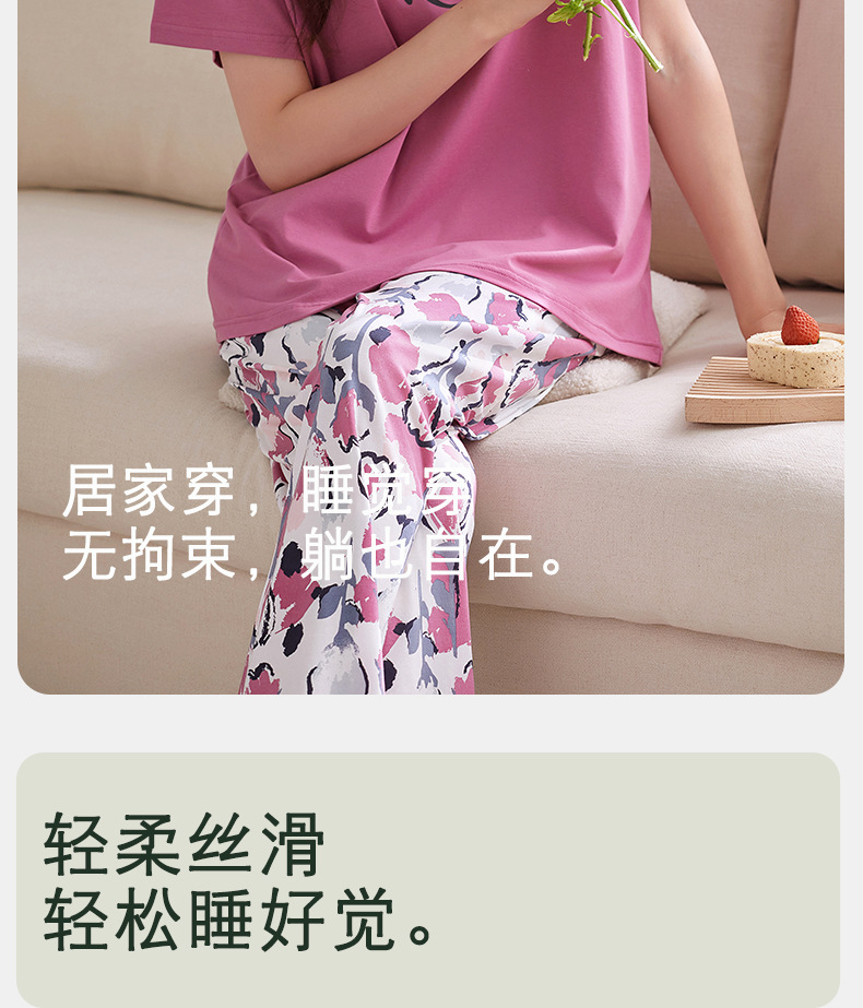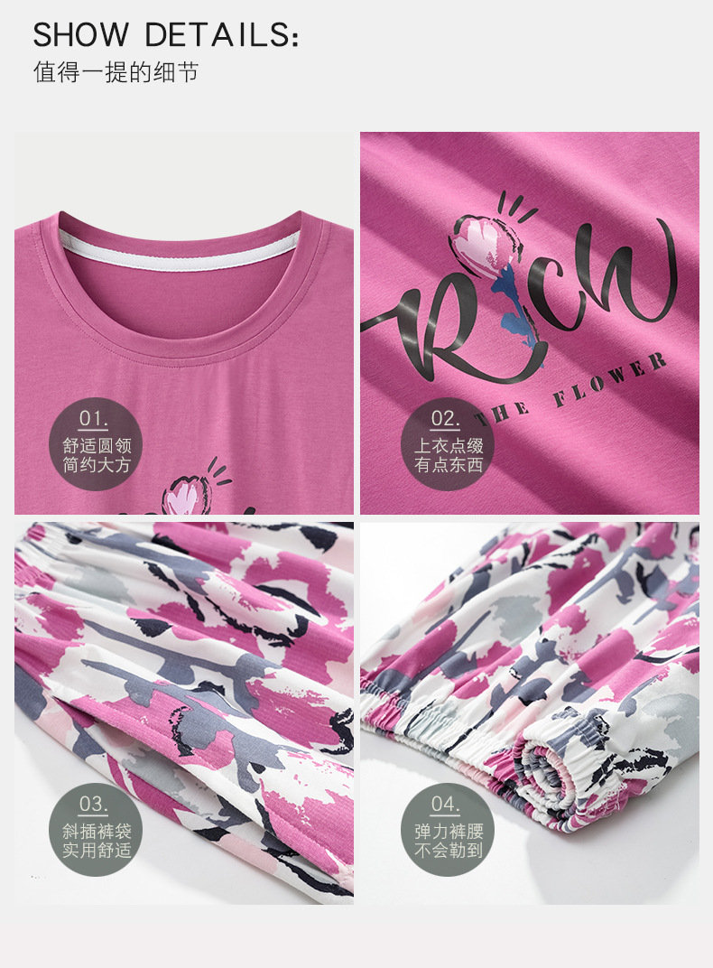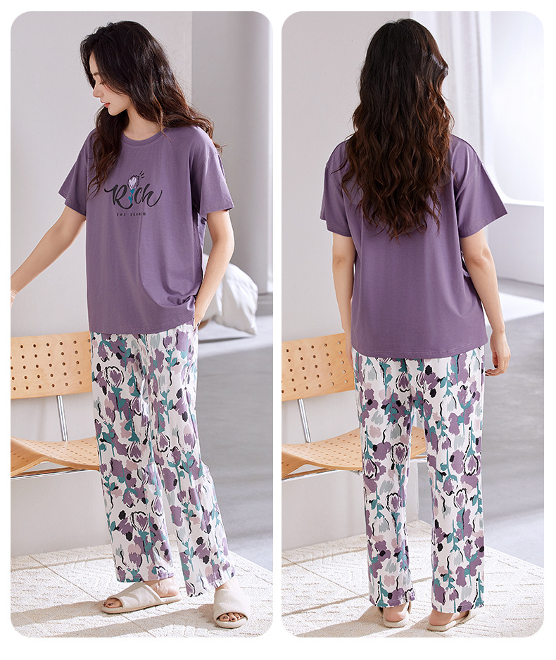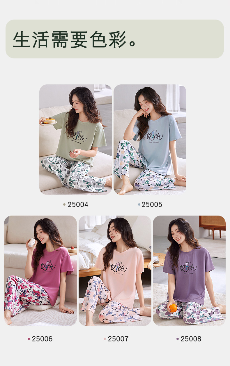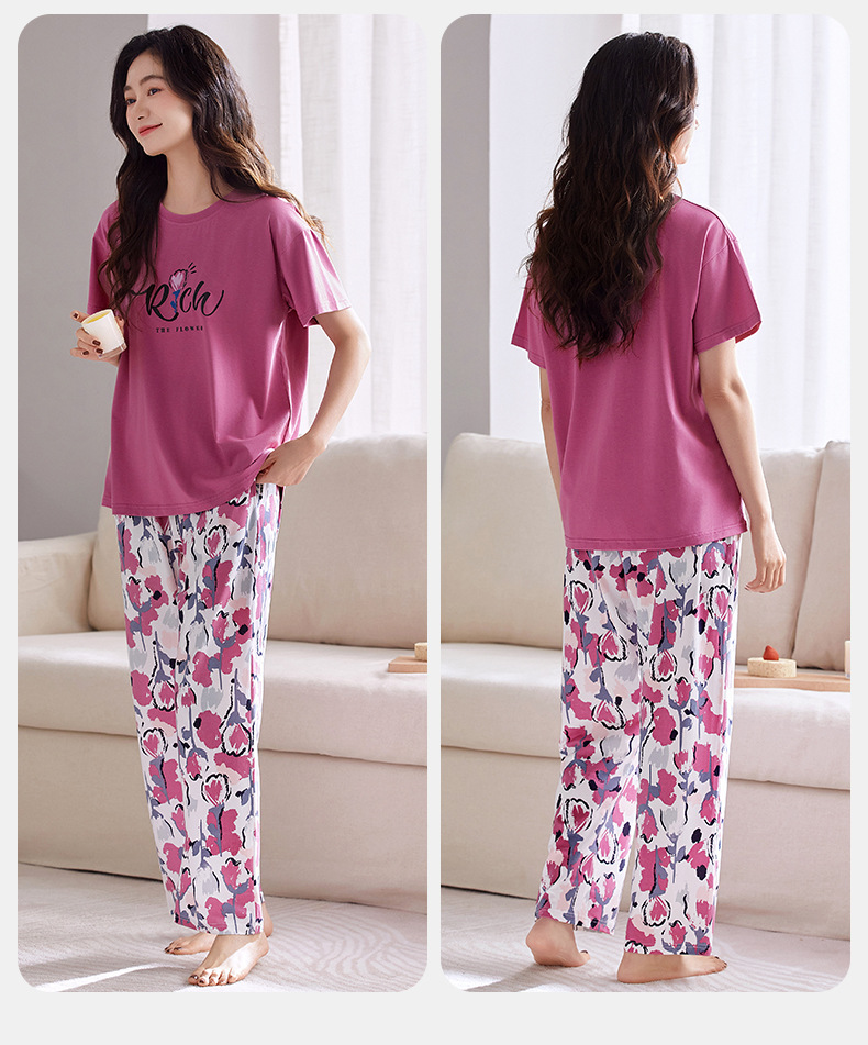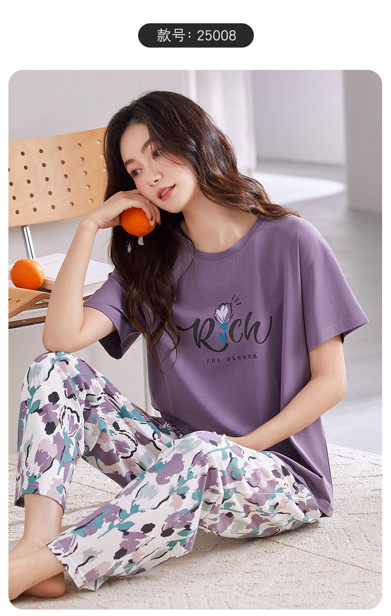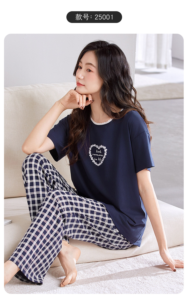 잠옷 여성의 여름 란징 모달 코튼 반팔 바지 얇은 여름 시원한 캐주얼 플러스 사이즈 홈 의류 세트스토어 가기