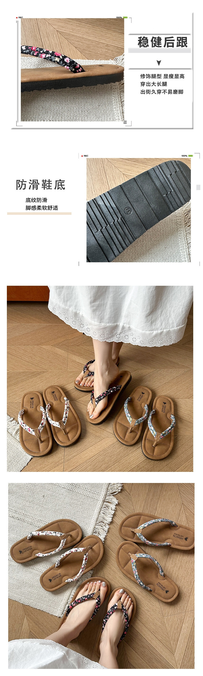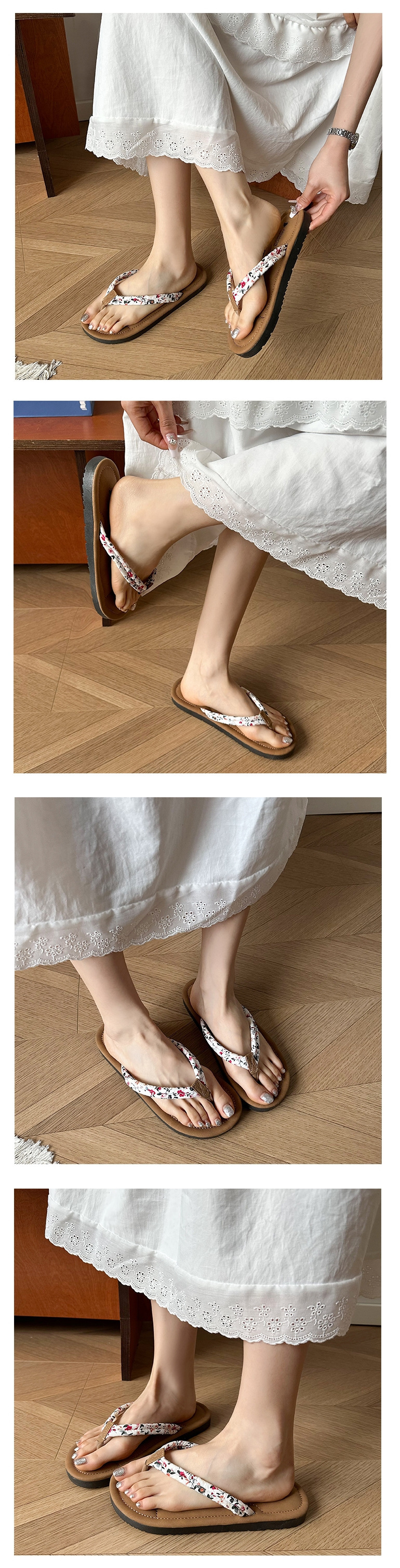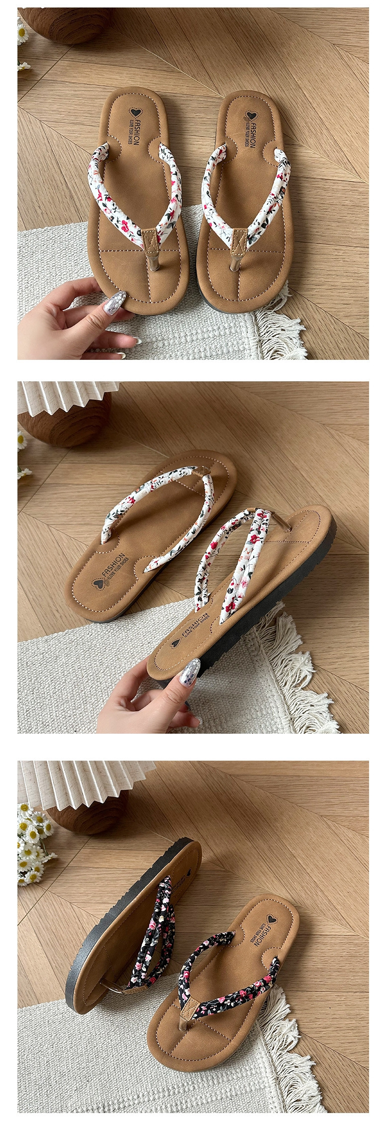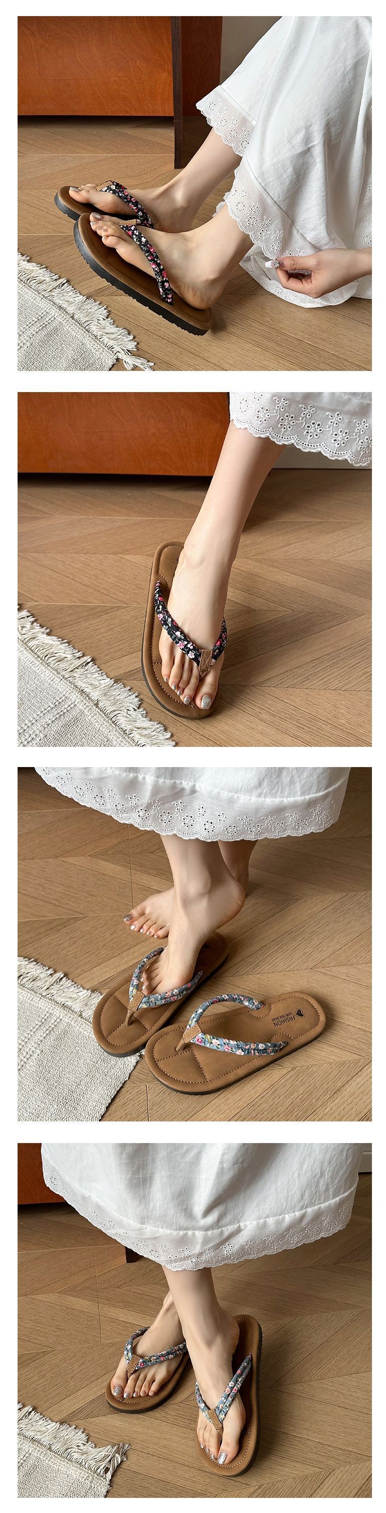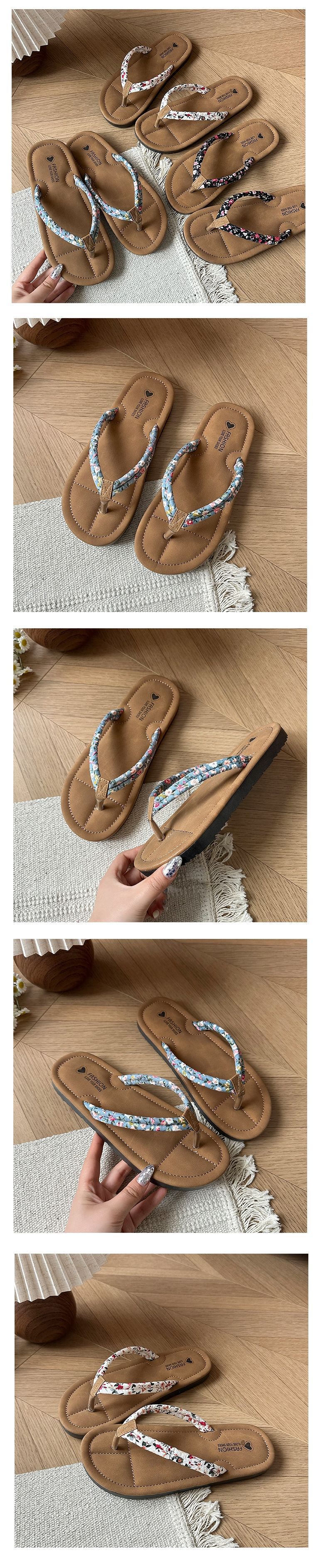 여성용 한국식 작은 느낌의 휴가 해변 슬리퍼, 아일랜드 소프트 여름 꽃무늬 인스토어 가기