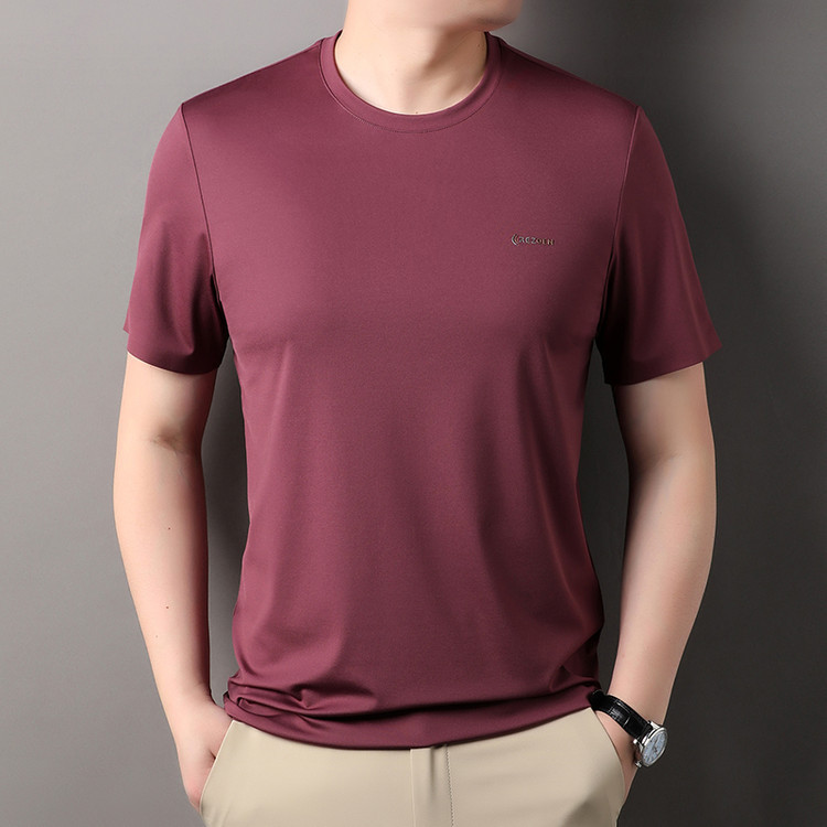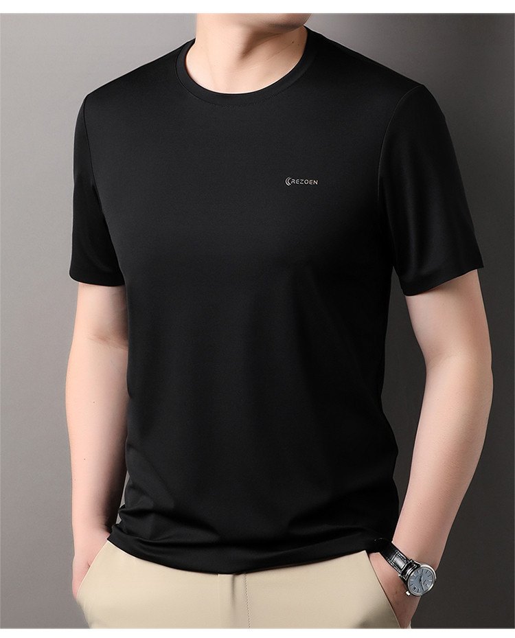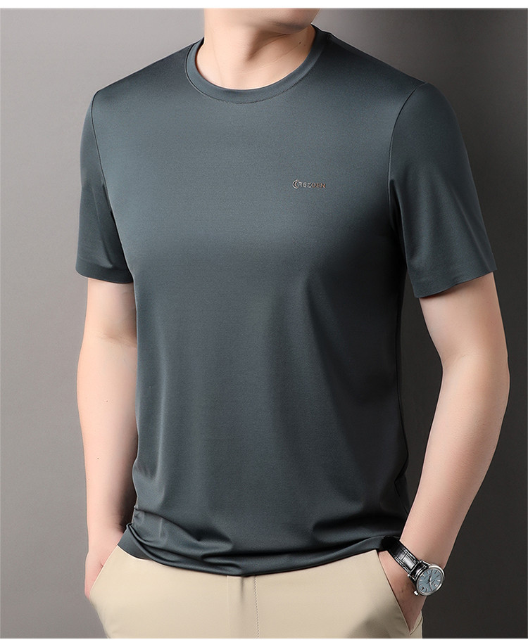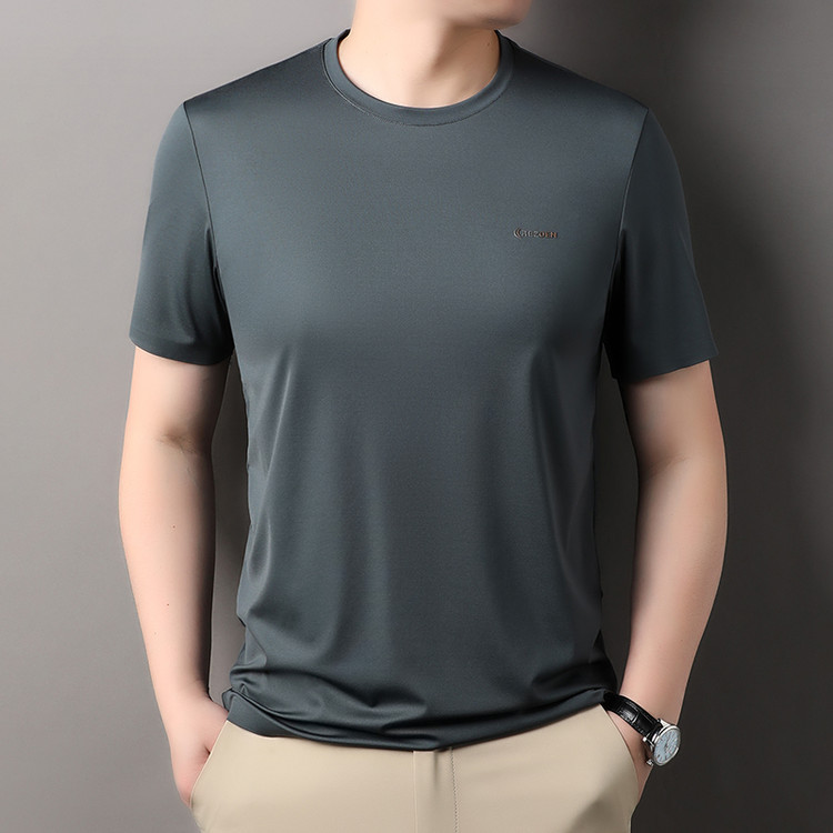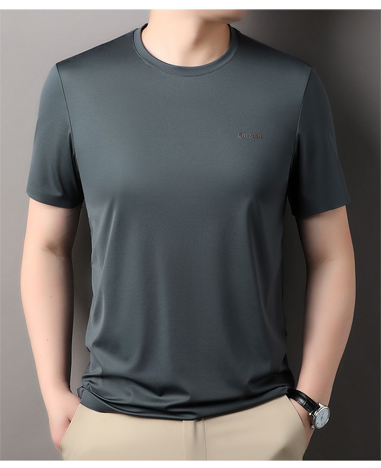 [멀베리 실크 + 큐프로 실크] 남성용 반팔 티셔츠 여름 루즈 라운드 넥 심리스 아이스 실크 시원한 통기성 셔츠