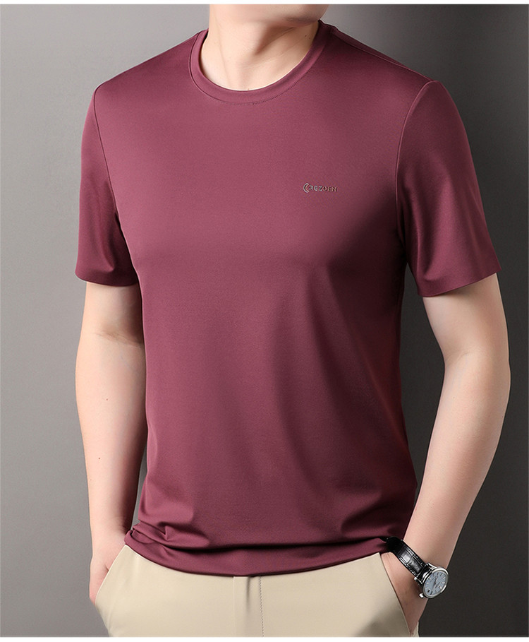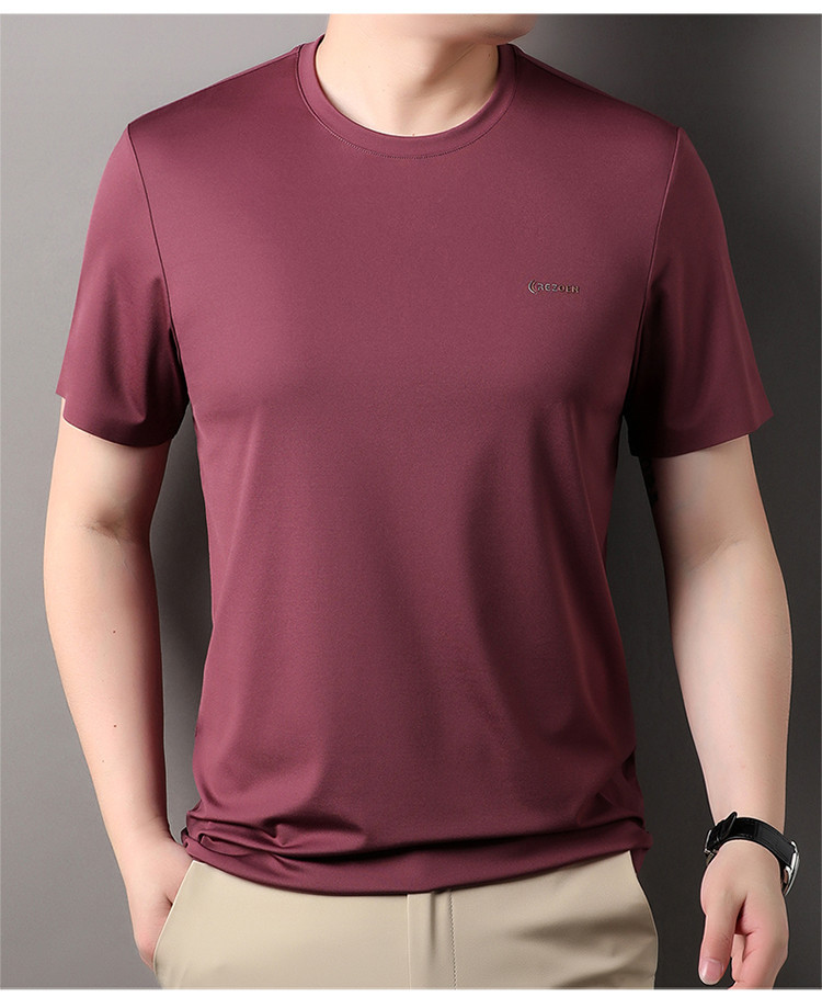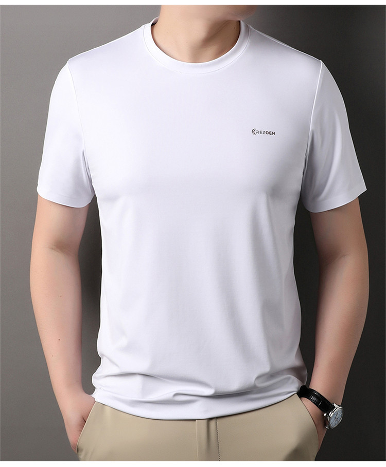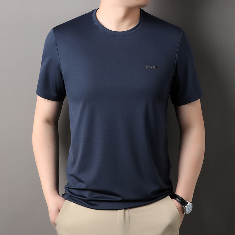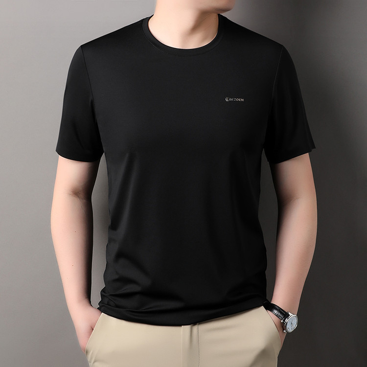 [멀베리 실크 + 큐프로 실크] 남성용 반팔 티셔츠 여름 루즈 라운드 넥 심리스 아이스 실크 시원한 통기성 셔츠