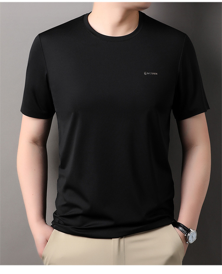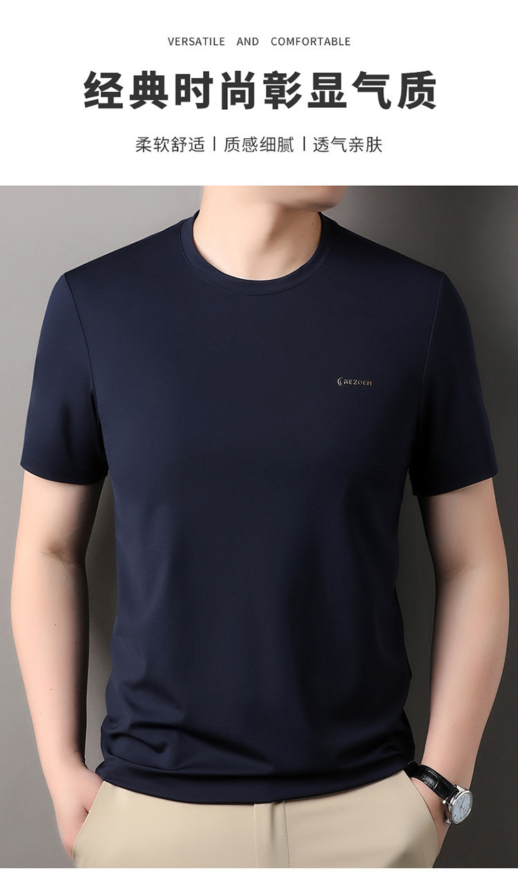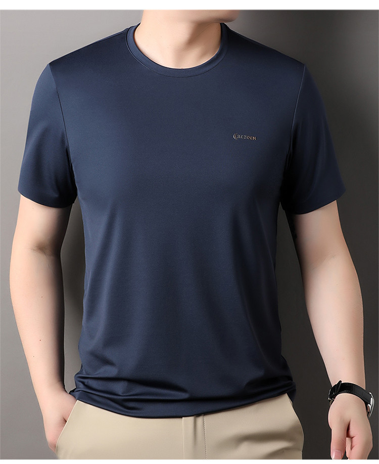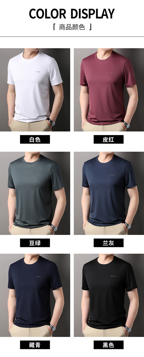 [멀베리 실크 + 큐프로 실크] 남성용 반팔 티셔츠 여름 루즈 라운드 넥 심리스 아이스 실크 시원한 통기성 셔츠스토어 가기